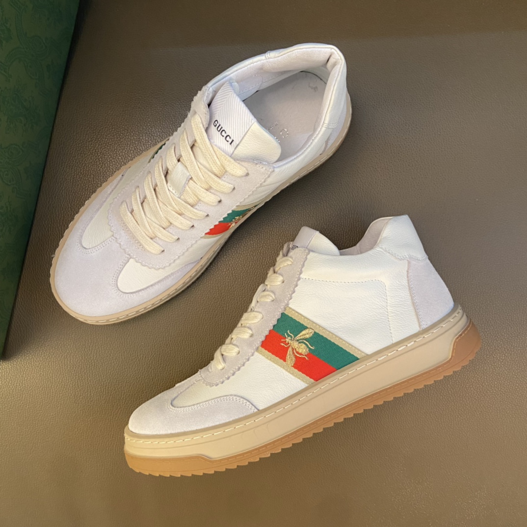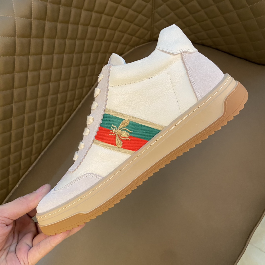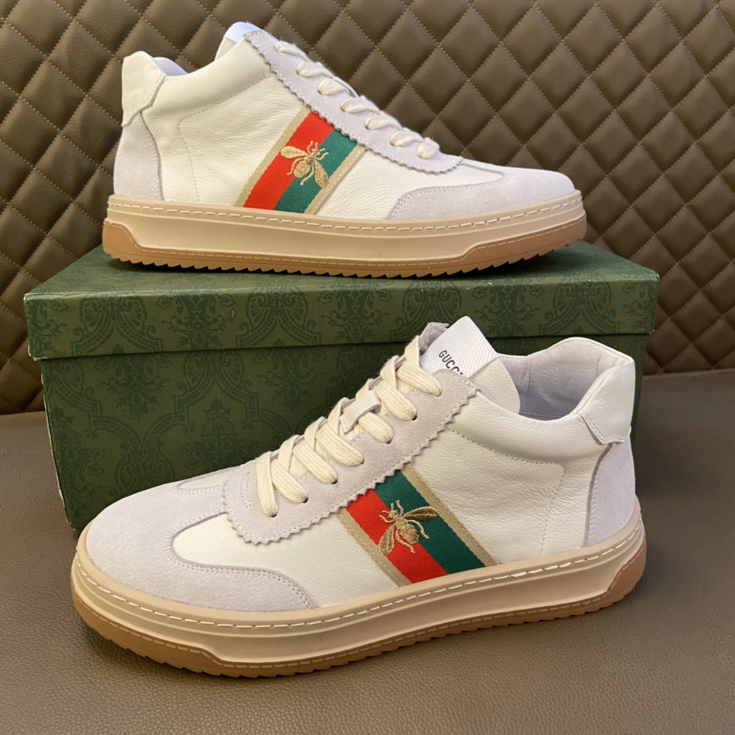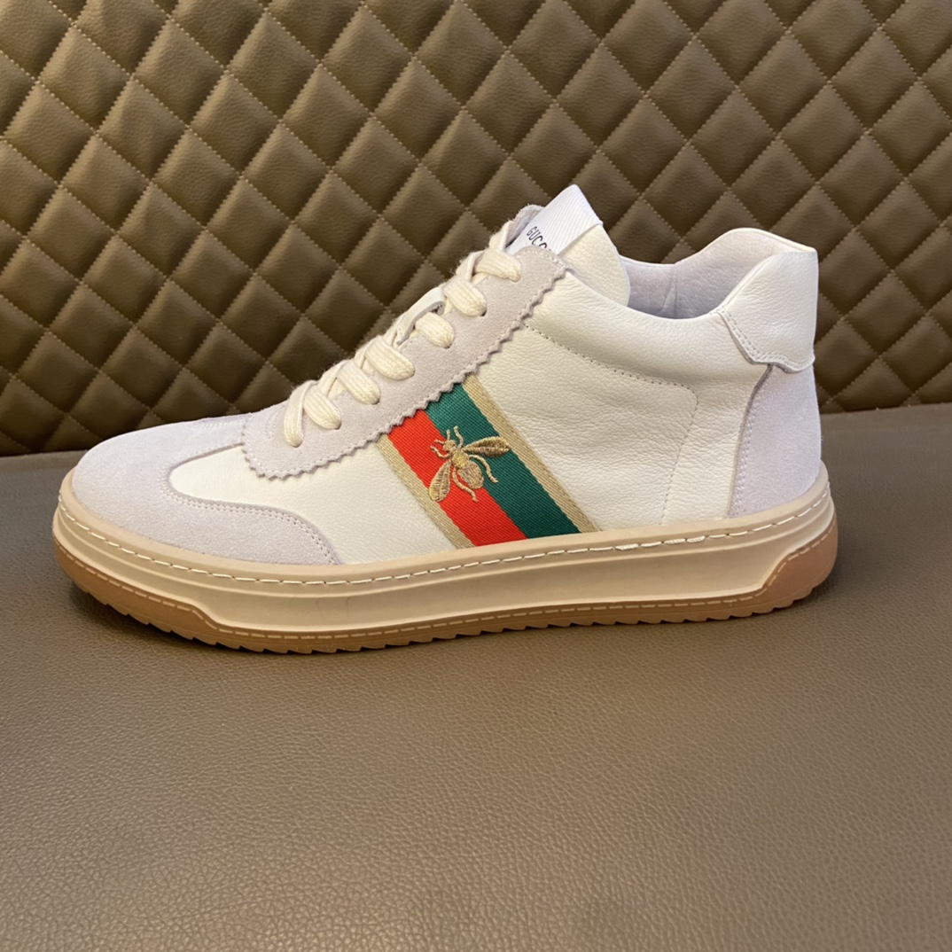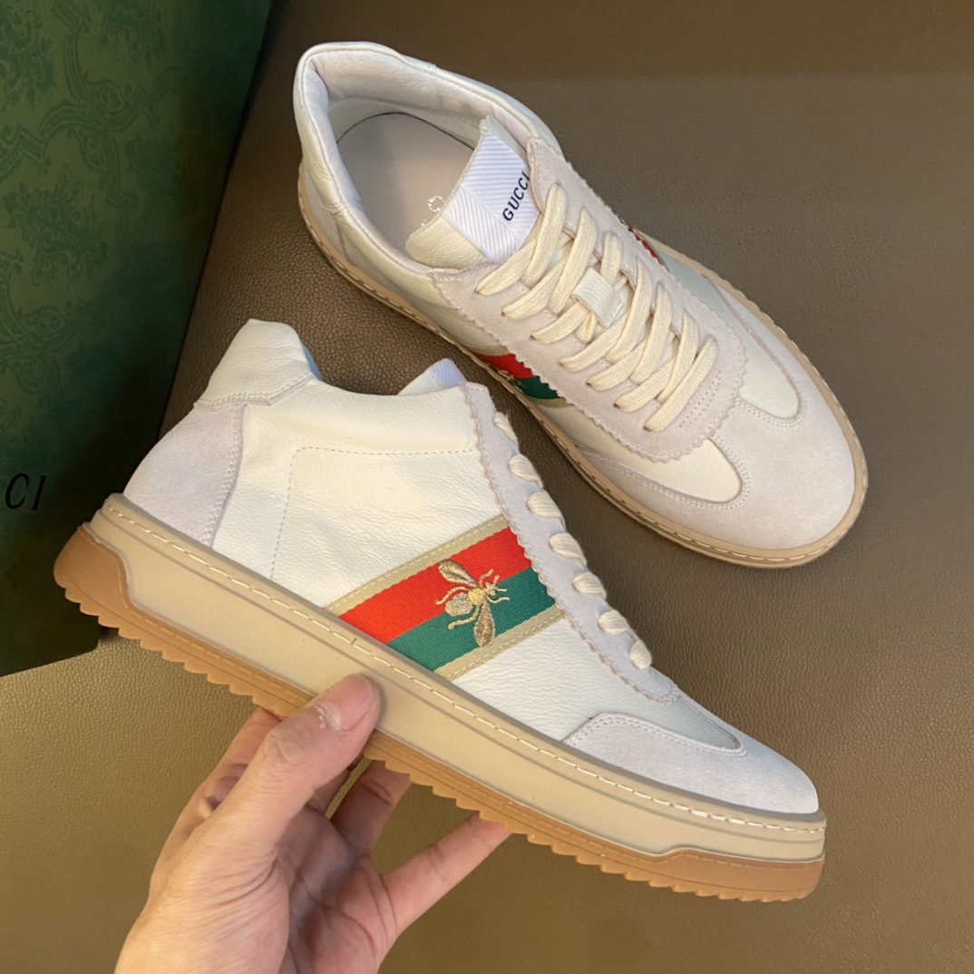 J0 Gucci 古奇 高版本潮鞋独家首发 男士2022专柜同步发售,意大利进口原版品牌精选头层柔软牛皮。羊皮内里 拒绝脱色磨脚鞋面原版蜜蜂鞋面 原厂特供原版底, ,适合户外司机驾车出行高品质板鞋,男鞋码数 38-44 45可定做 黑白两色 选