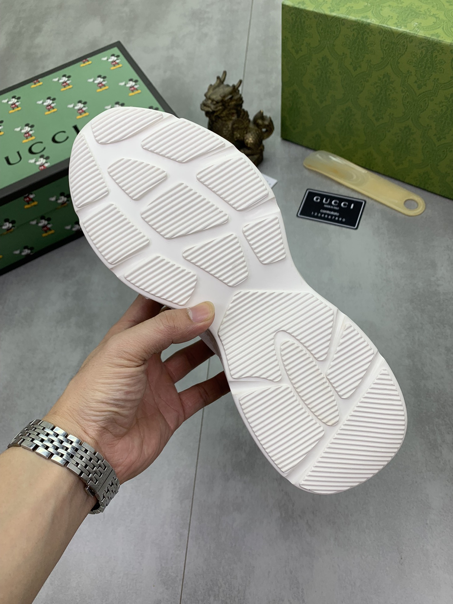 J5 顶级品质 老爹鞋 Gucci 古奇 男鞋抢先上市,材料做工完胜市场所有版本 最高品质进口原版顶级牛皮鞋面拼接,内里材料采用全头层猪皮内里,私模软质TPU橡胶舒适大底,上脚舒适度高。实物拍摄,进口专用材料凸显品牌独特魅力 2色可选 码数;38-45