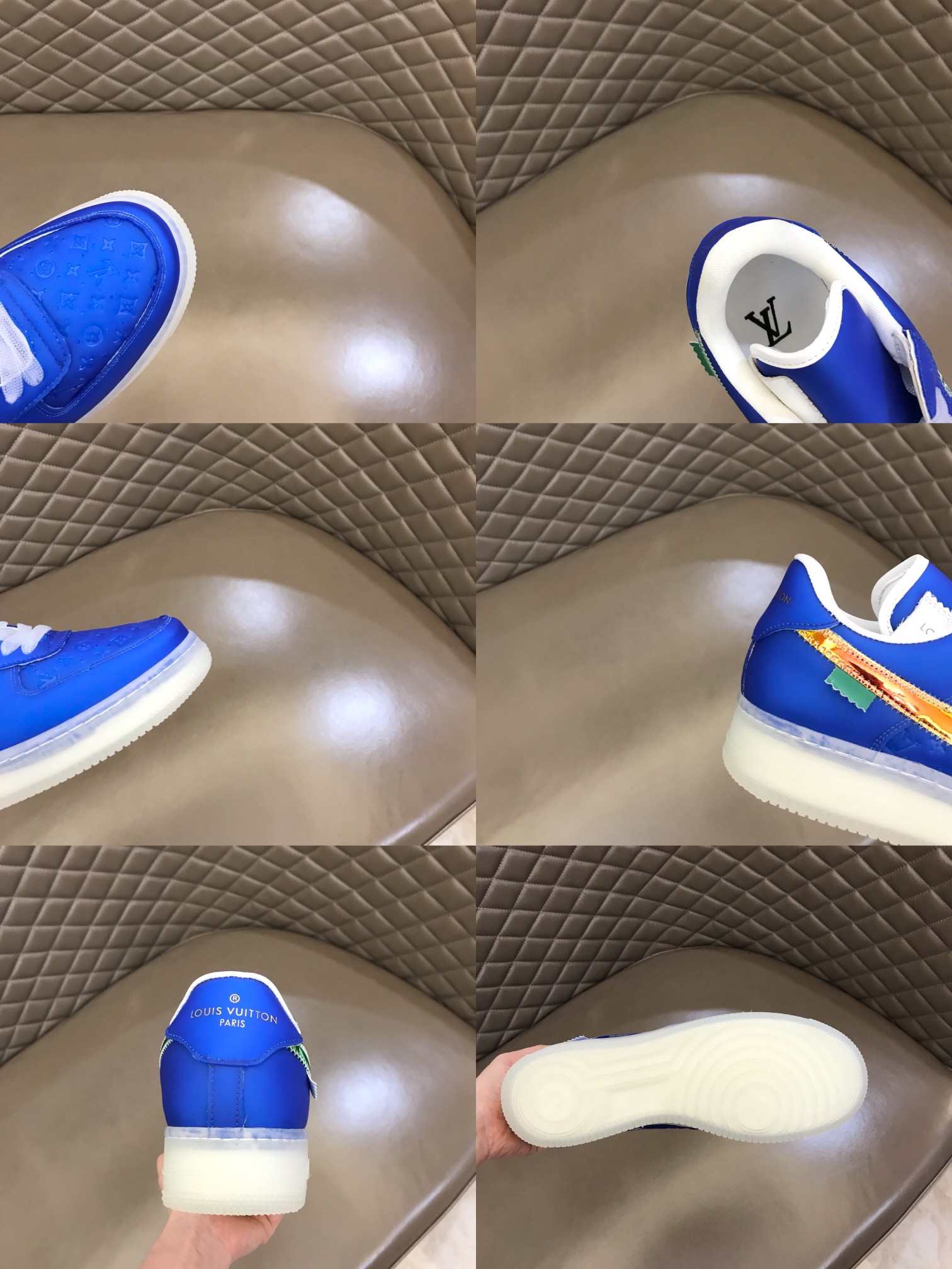 原单抽屉盒子Louis Vuitton X Nike三方联名运动鞋 尽展未来主义格调.金属质感皮革搭配正绒面革饰边.L V 字母标注科技网格面料鞋舌,透明橡胶外底 鞋舌、后部和套索扣饰有 LV 字母 SIZE 39-45 户外司机驾车鞋 纯原正品