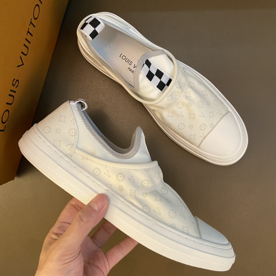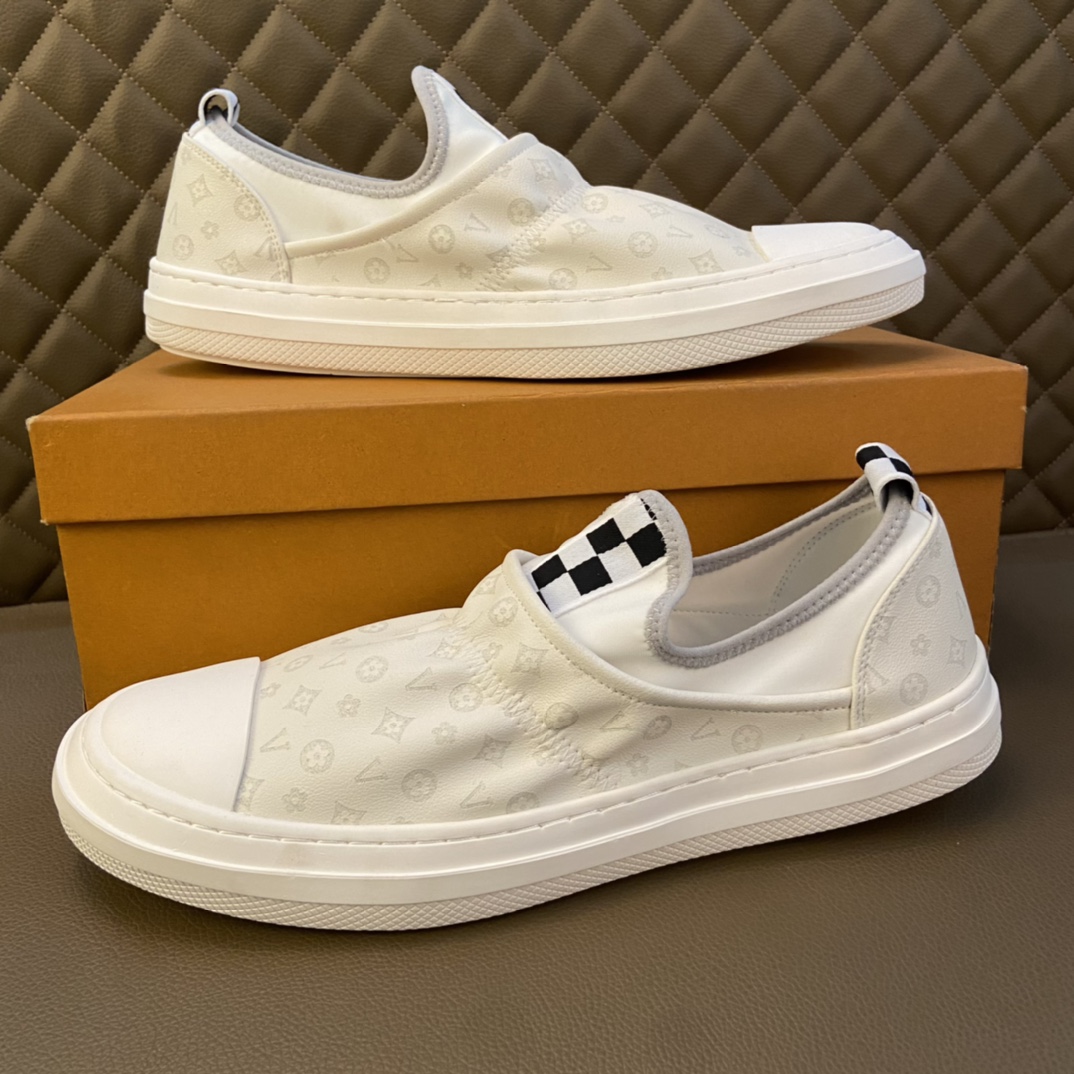 I5 LOUlS VUlTTON 路易威登~独特现休闲风.LV专柜代购休闲鞋 男士2022专柜同步发售,意大利进口品牌精选头层意大利牛皮.牛皮内里 拒绝脱色磨脚鞋底:原厂特供原版底实物更赞 适合户外司机驾车完美 男装男鞋码数:38-44 45可定做 黑白 杏色 两色 选一系列图案 潮牌