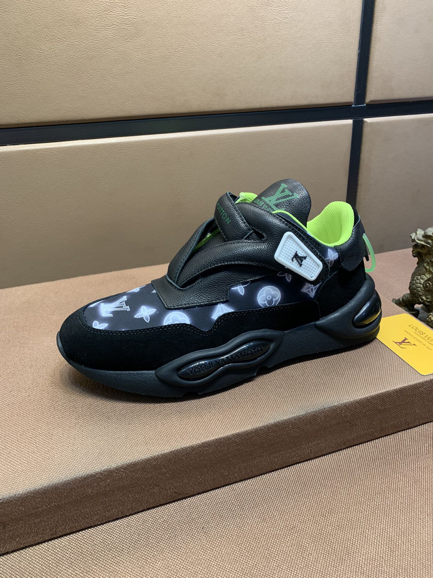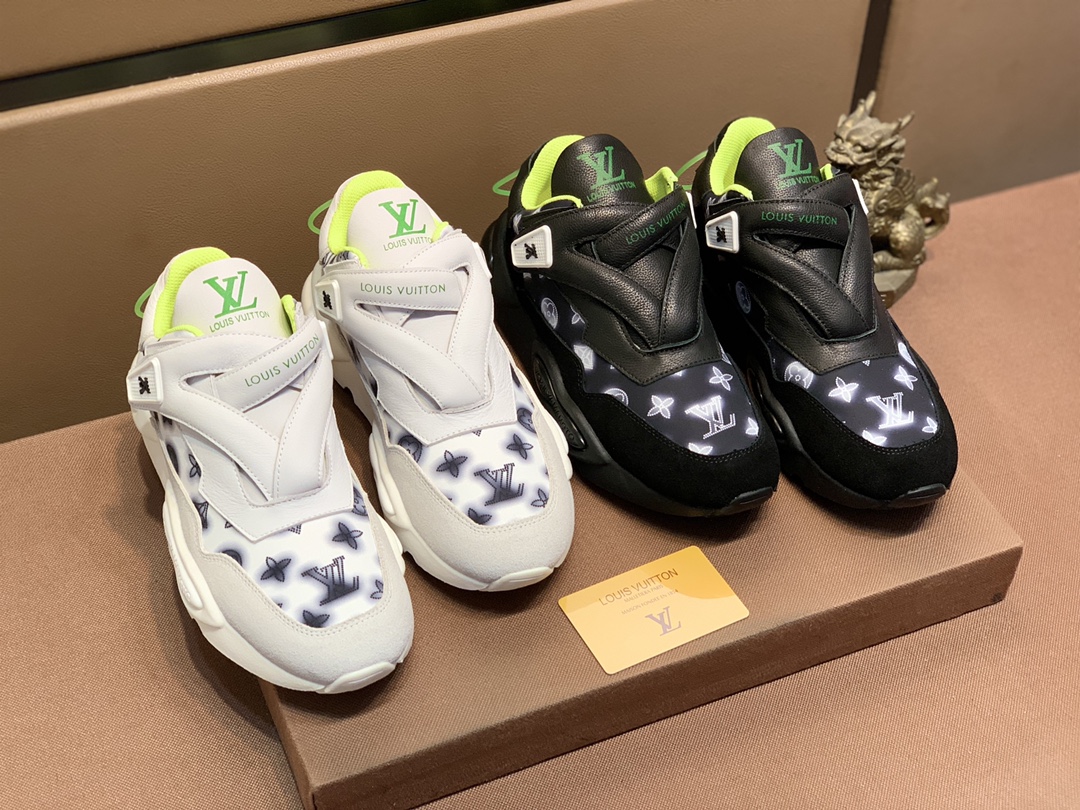 J0 高品质情侣款 LV 路易威登 官网最情侣款休闲时尚鞋爆款版型简洁大气,潮男潮女专属.品牌元素原版装,时尚又大方,面料原版进口头层牛皮配原版面料柔软透气网布内里羊皮垫脚,原版组合耐磨橡胶大底,专柜经典款实物拍摄,男款码数:37-45 女款码数:35-40 黑色 白色可选