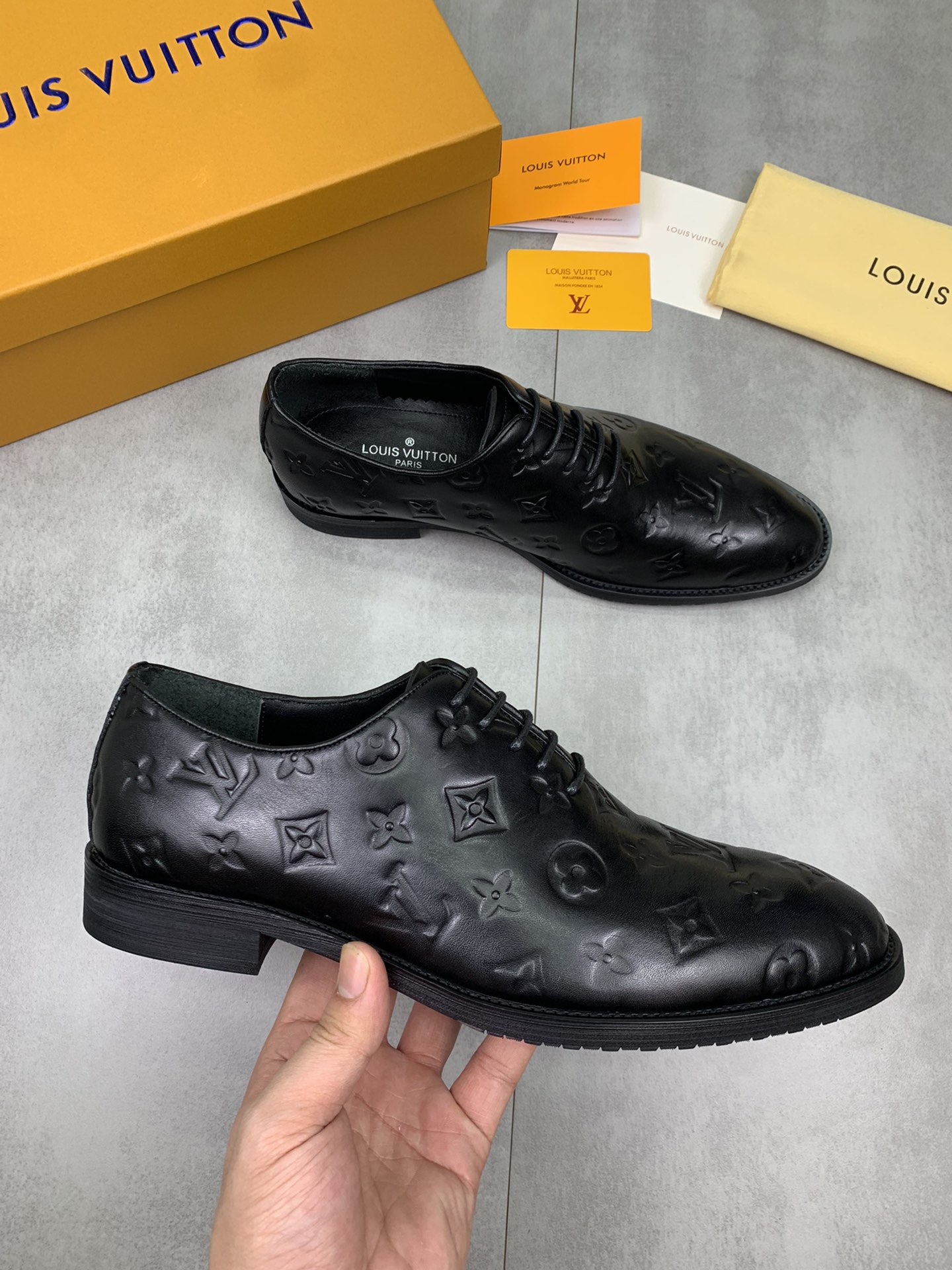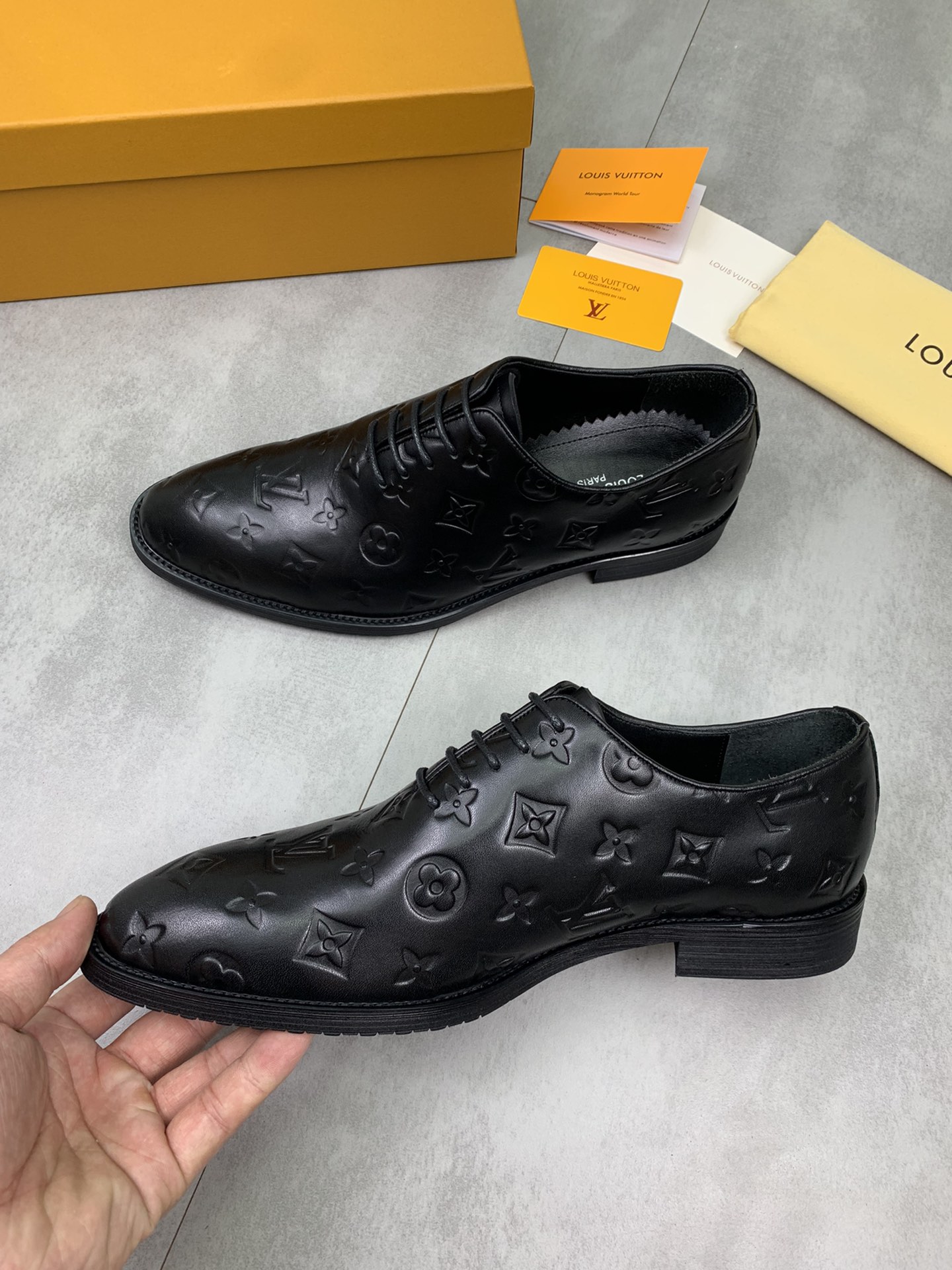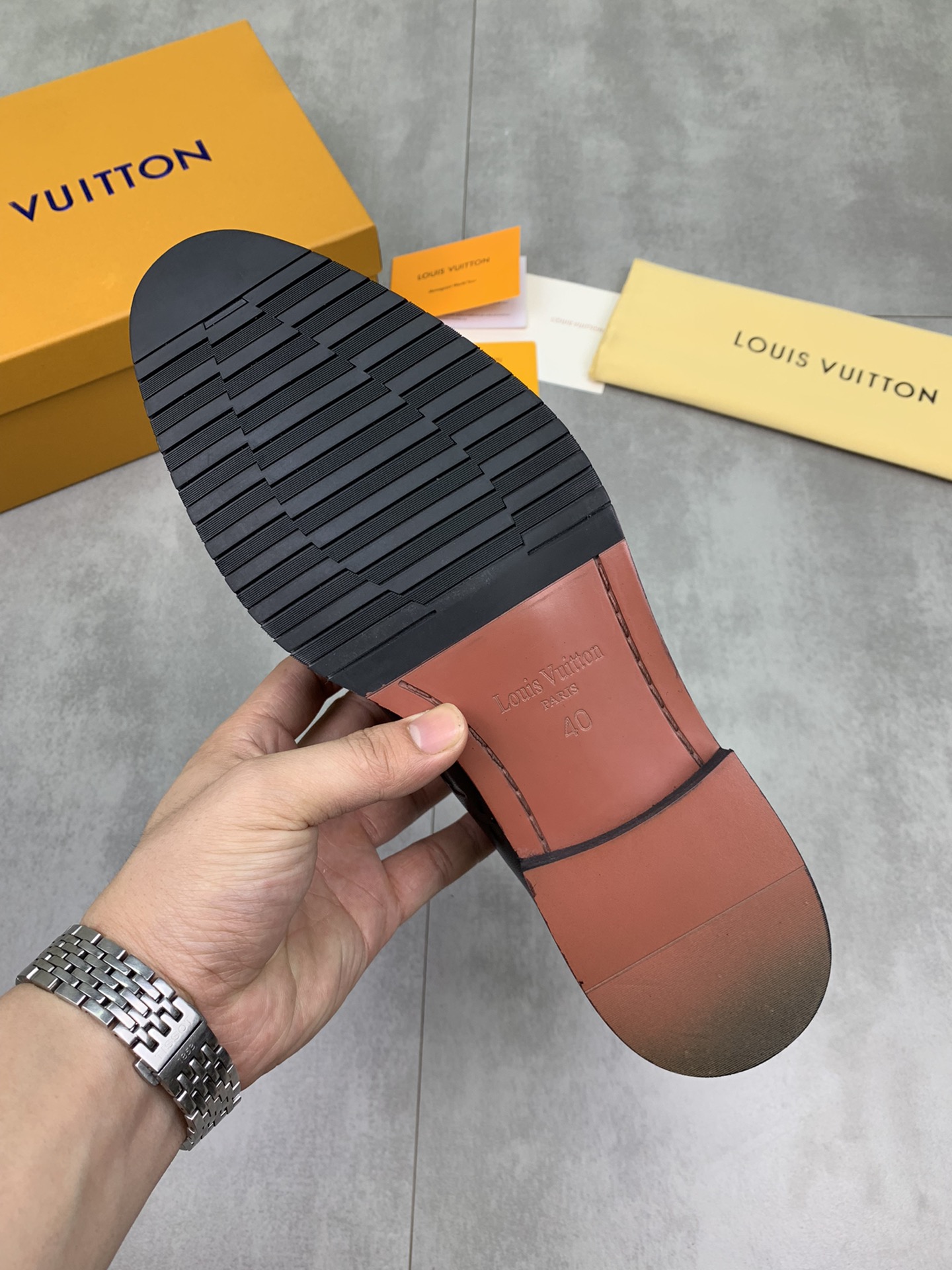 J5 水染牛里 Louis Vuitton 路易威登 LV 商务皮鞋,釆用原版进口意大利小牛皮,全牛皮内里、专业鞋匠精心手工制,原版专供耐磨大底.标准码38-44 黑色 棕色选