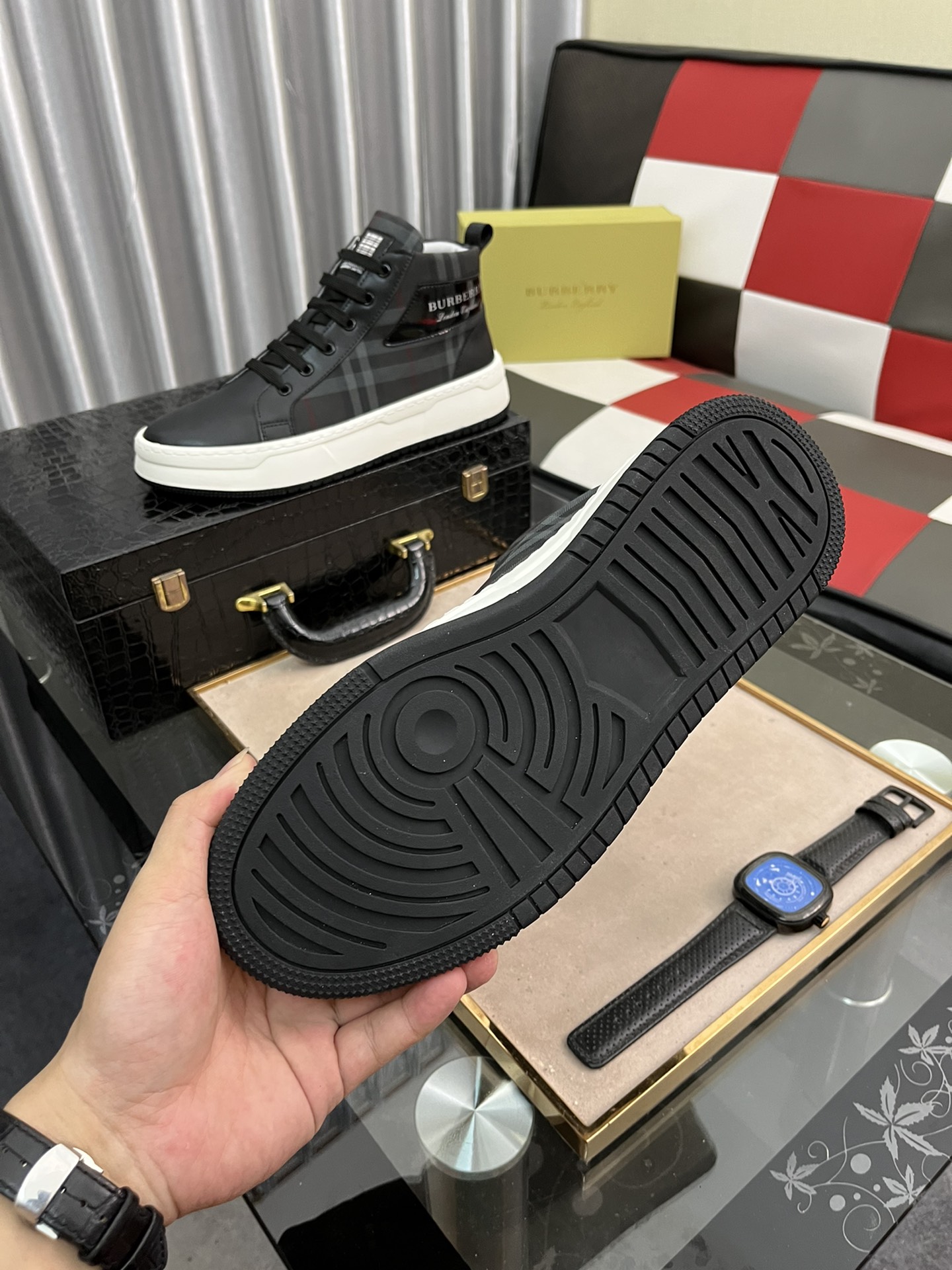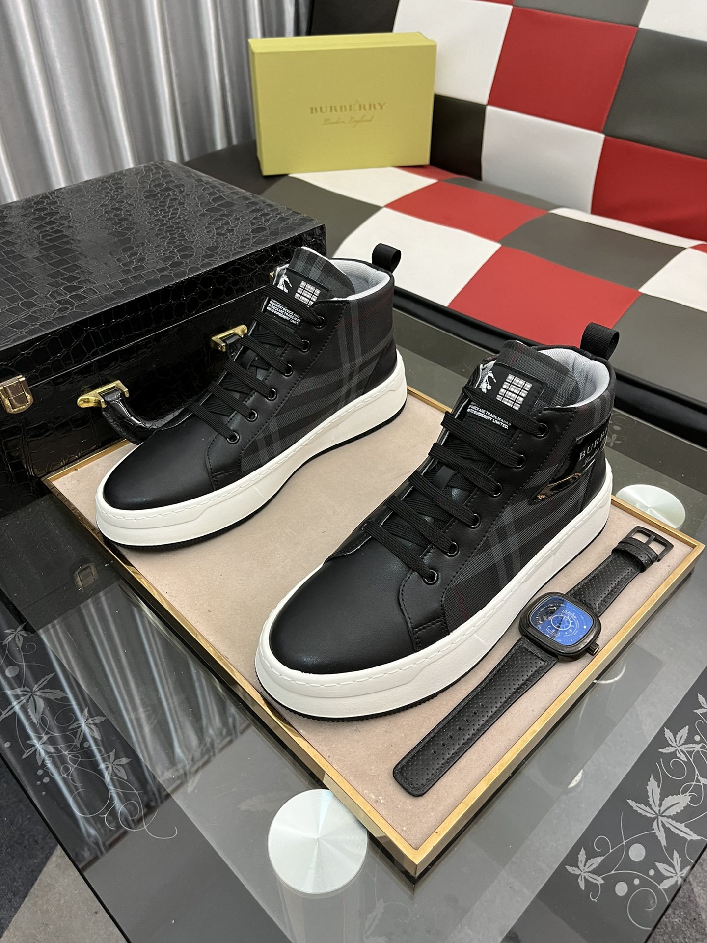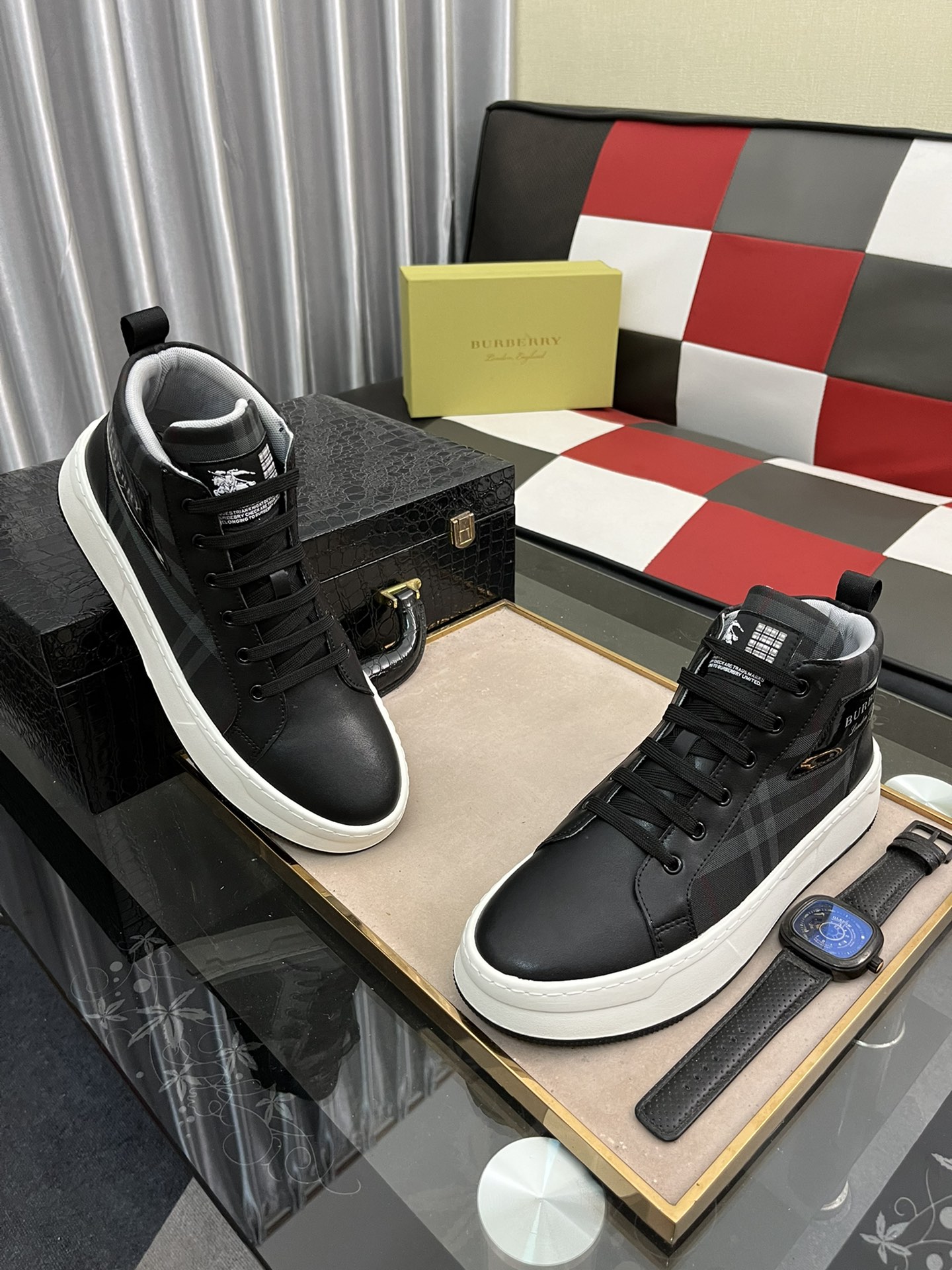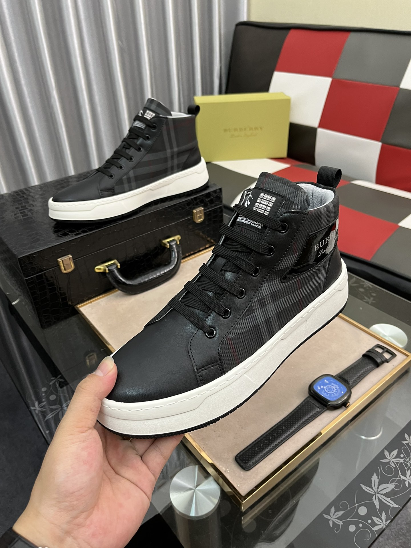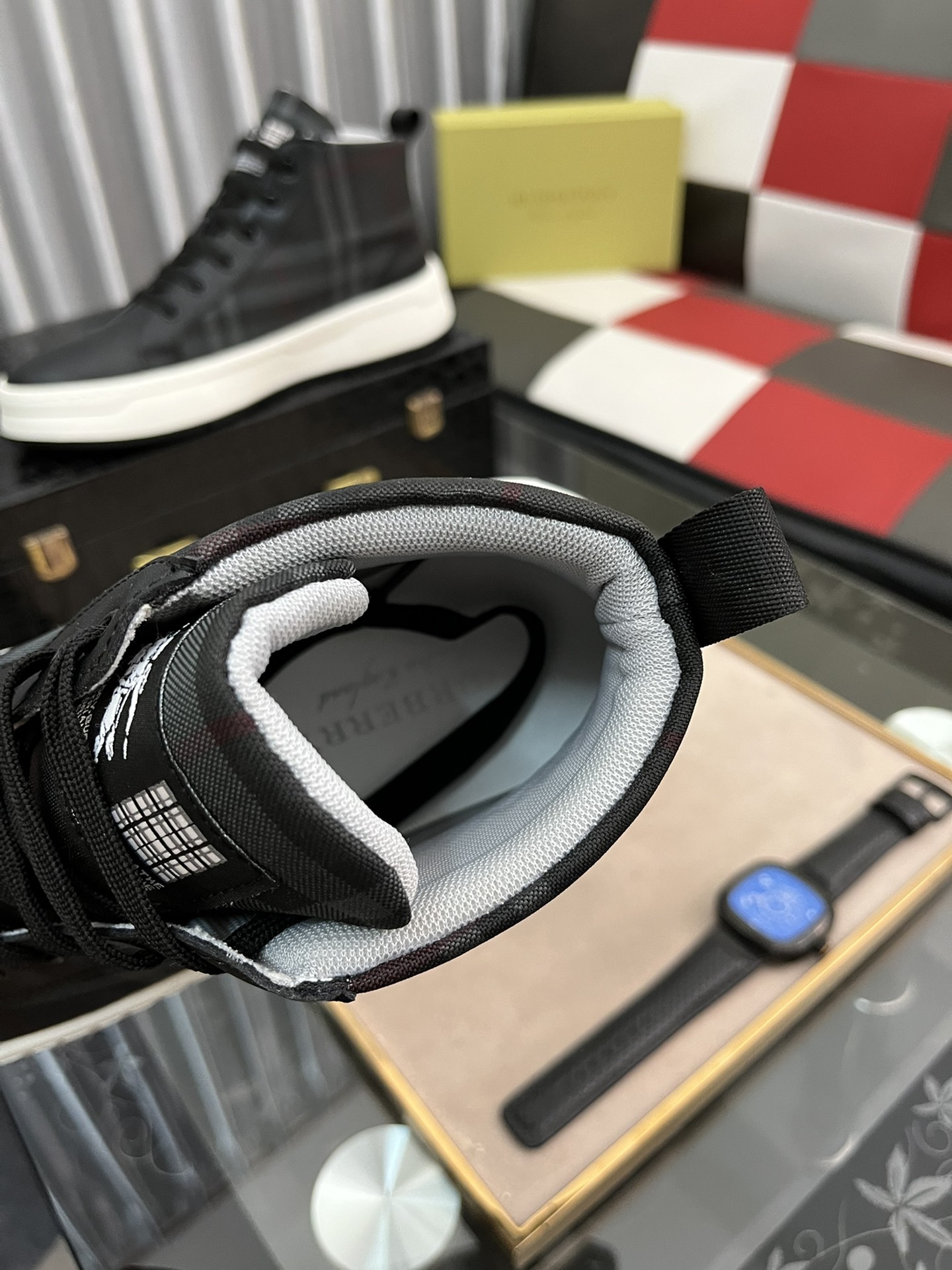 巴宝莉 高帮系列最 2022精心打造,引爆全场不断创新的国际品牌 此款男士四季运动休闲鞋,原版版本,鞋面采用加厚格纹布配牛皮面料 ,皮垫脚真爆超轻防滑大底, 码数:38-44