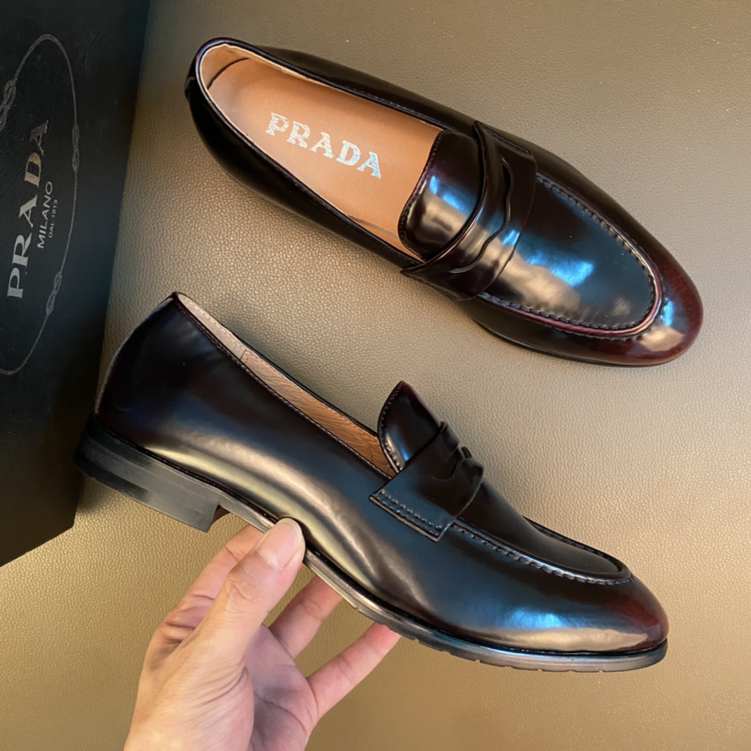 :配全套包装 Prada 普拉达 ~独特现代风皮鞋.专柜代购休闲鞋 男士2022专柜同步发售,意大利进口原版品牌精选头层柔软牛皮.拒绝脱色磨脚鞋底:原厂特供原版底, 超酷 法国懒人风格设计 懒人套脚套脚 原单品质 超舒服原版底 . 适合户外司机驾车完美 ,男鞋码数:38-44 45码可定做黑色 棕色 选 长期供实体店补货
