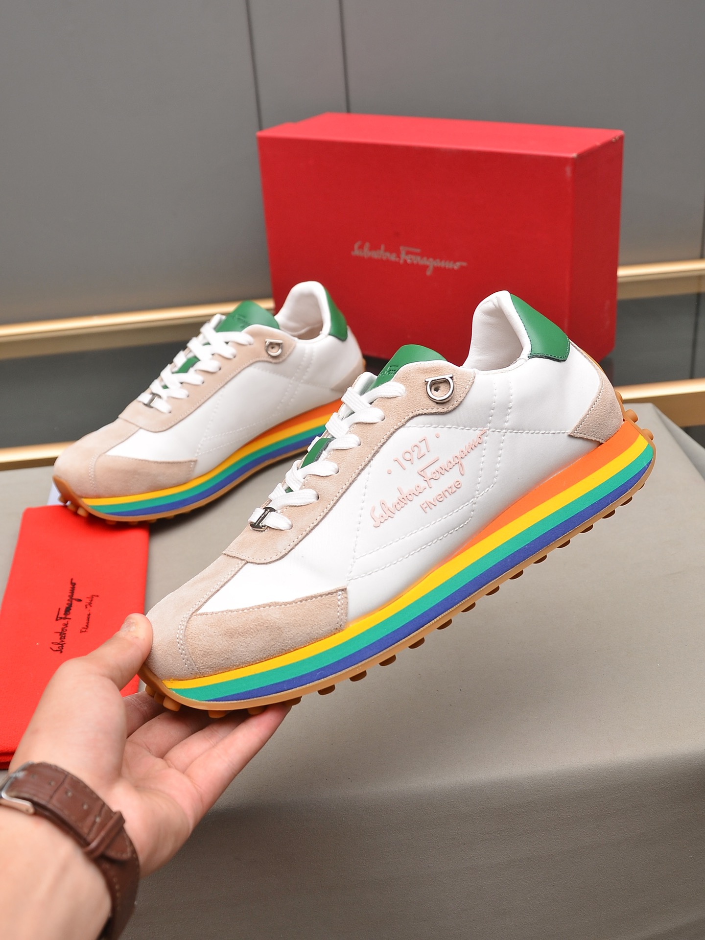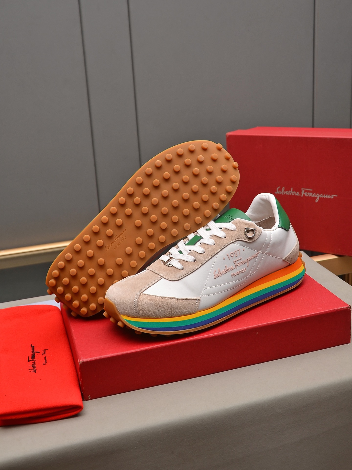 Ferragamo 菲拉格慕 正码码数: 38-44 45定做 商品等级:官网1:1,欢迎对比验货 商品材料:进口原版料,进口原版牛皮,头层牛皮里,侧面滴胶字母LOGO,原版内里,EVA橡胶组合大底 款式类别:2022时装秀系列,运动系带休闲鞋,百搭舒适 颜色:多色可选