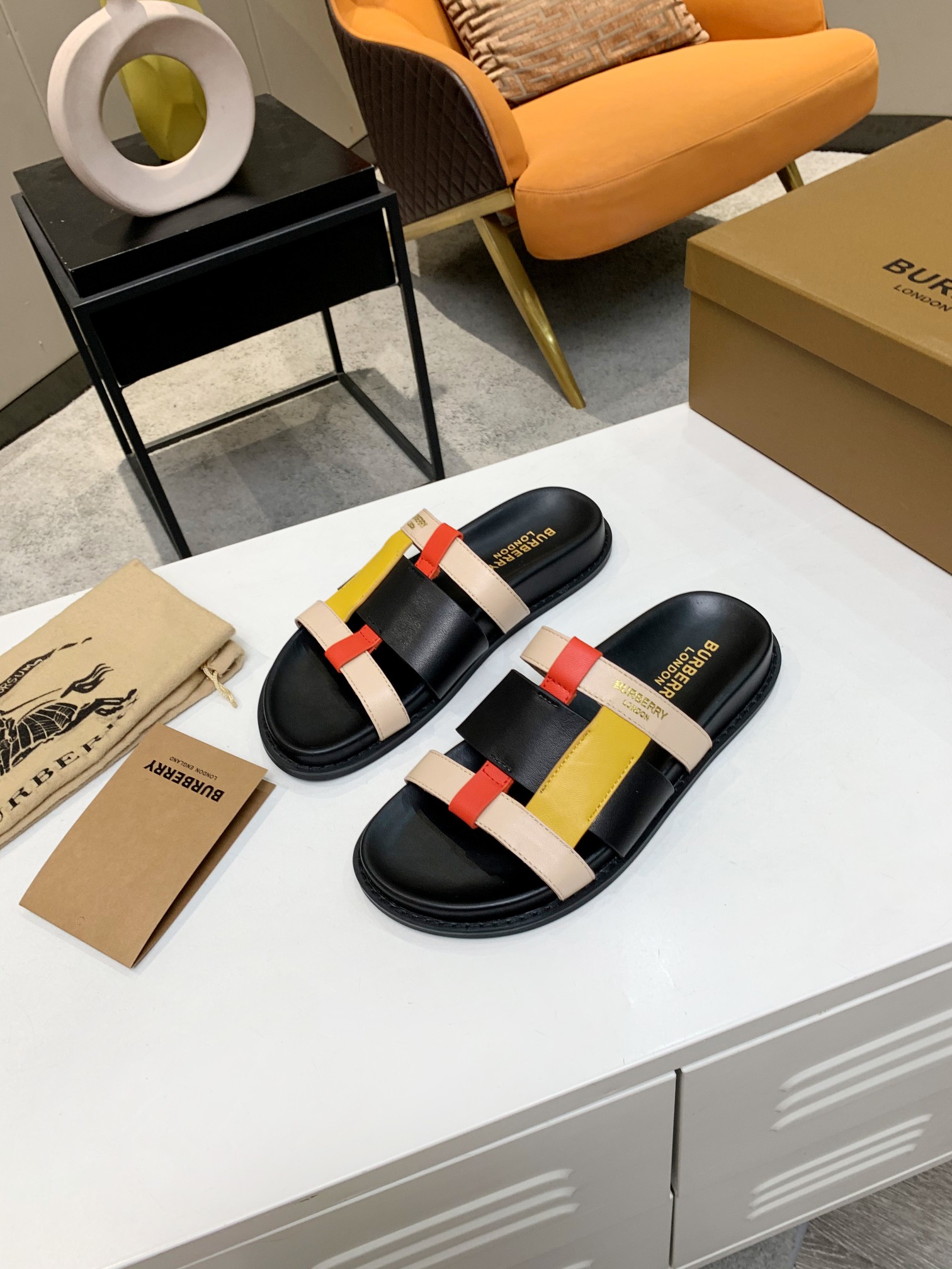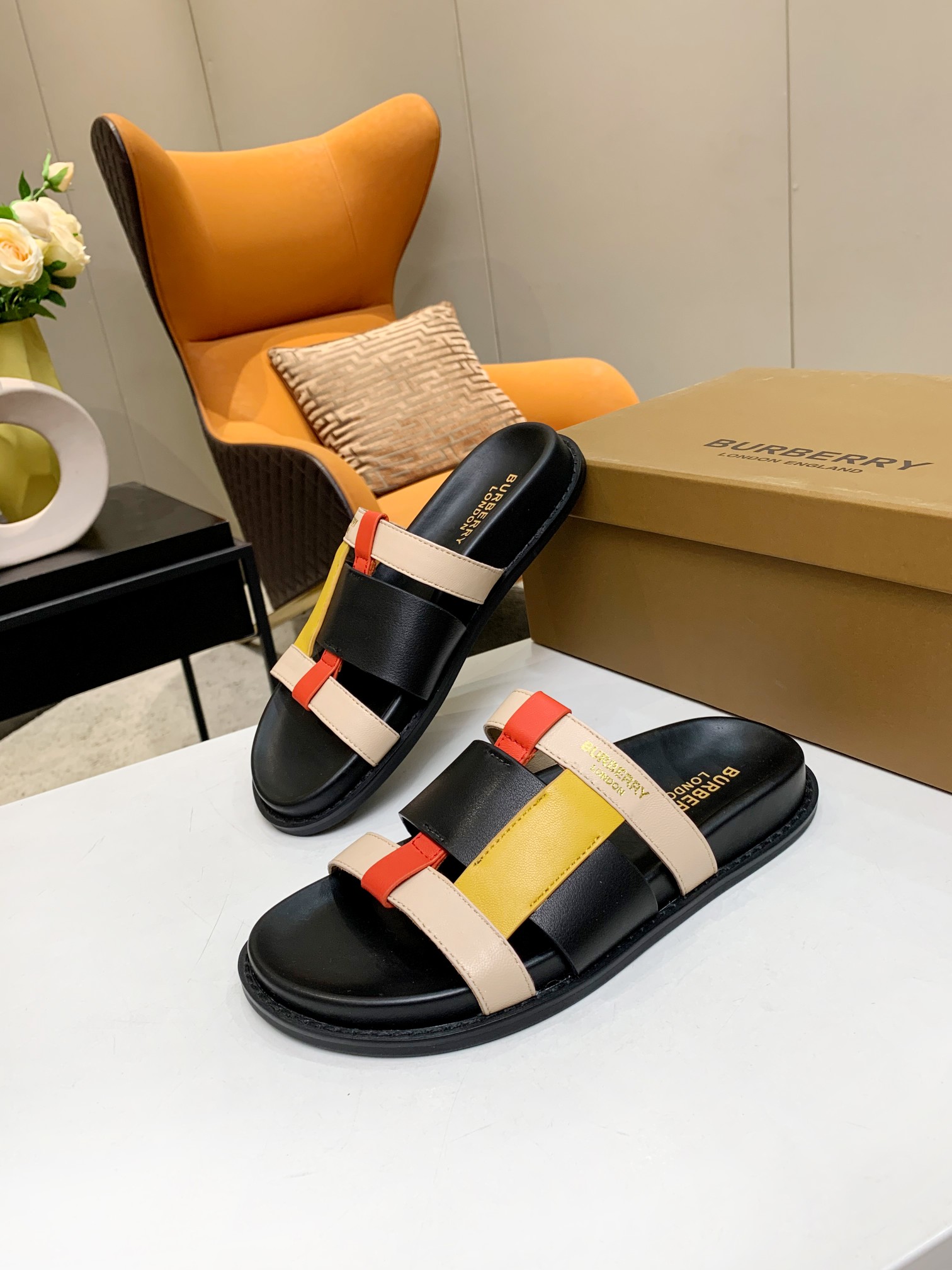 I0 Burberry 巴宝莉 2021年爆款拼色拖鞋出货,购原板复刻,独家开模大底, 面料:混种羊皮 里布:羊皮里 大底:橡胶 颜色:如图4色, 码数:35-40, 包装:原板包装