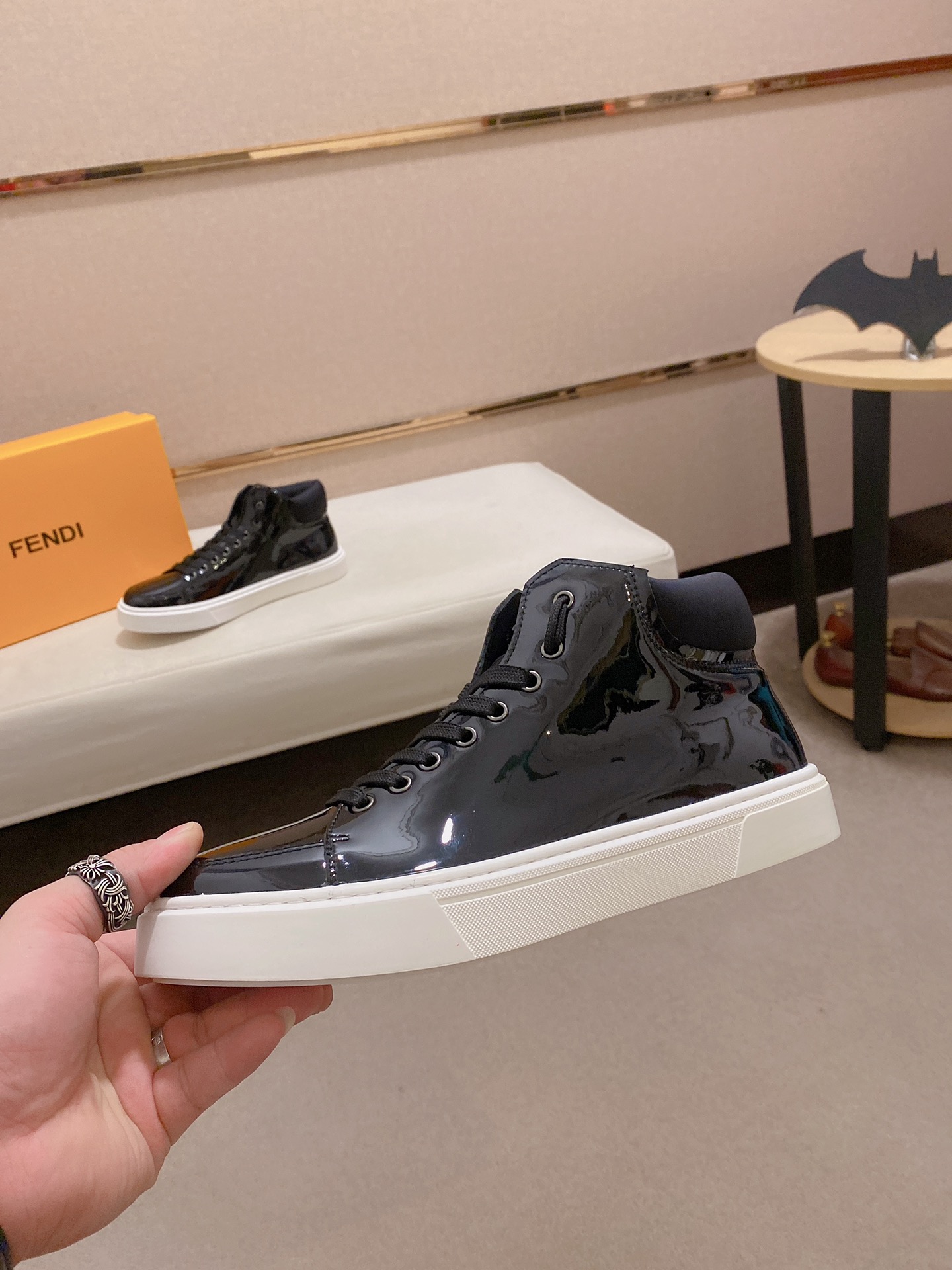 I5 爆款 Fendi 芬迪 高帮款FENDI官网1:1运动火爆上市,采用原版进口小牛皮 打印工艺 用不脱落 羊皮内里 有醒目的标志,再加官网原版耐磨橡胶大底.款式新颖、时尚百搭,着脚超舒适、透气鞋码38/44