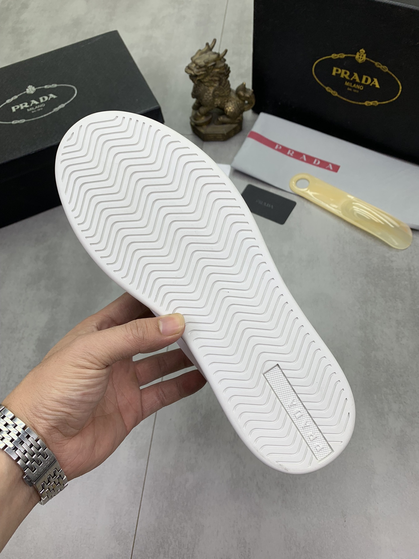 I5 高品质羊里Prada 普拉达 男鞋官网经典最上市了1:1复制,香港专柜同步,走秀同台;全部采用小牛皮进口柔软舒适羊皮内里、橡胶大底原版1:1防滑耐磨;着脚舒适、款式耐看,做工精细,配以简洁利落的鞋楦,彰显男人的果敢和硬朗,码数38一44;黑色 蓝色 白色颜色选