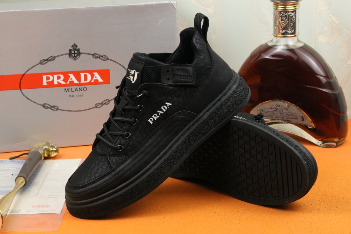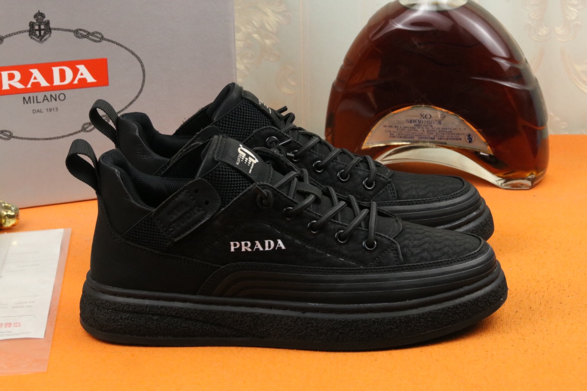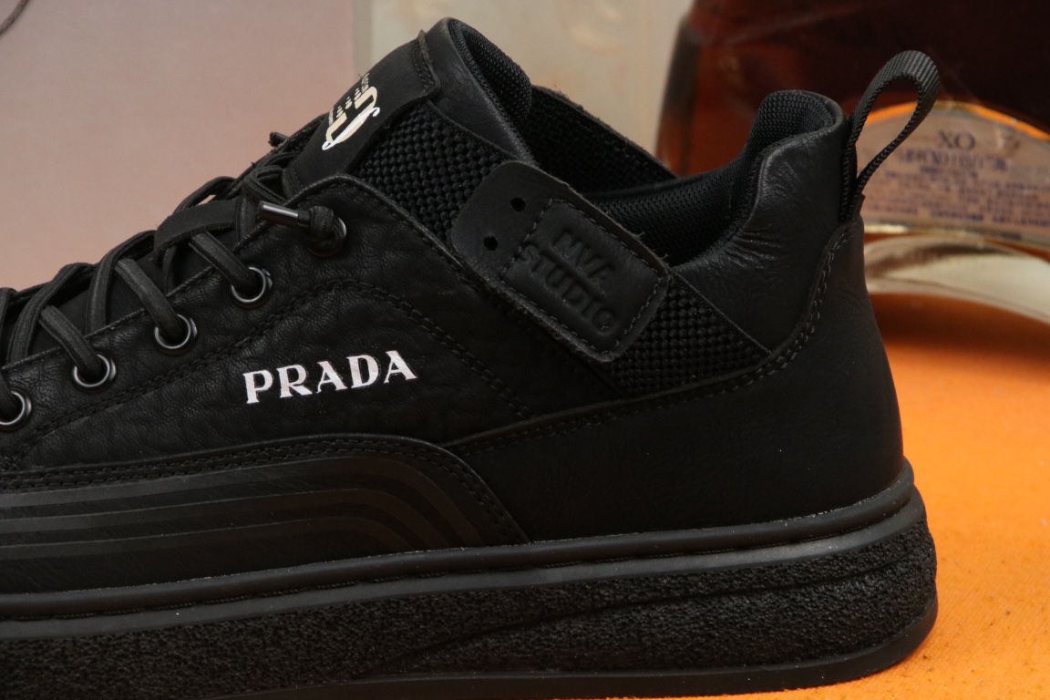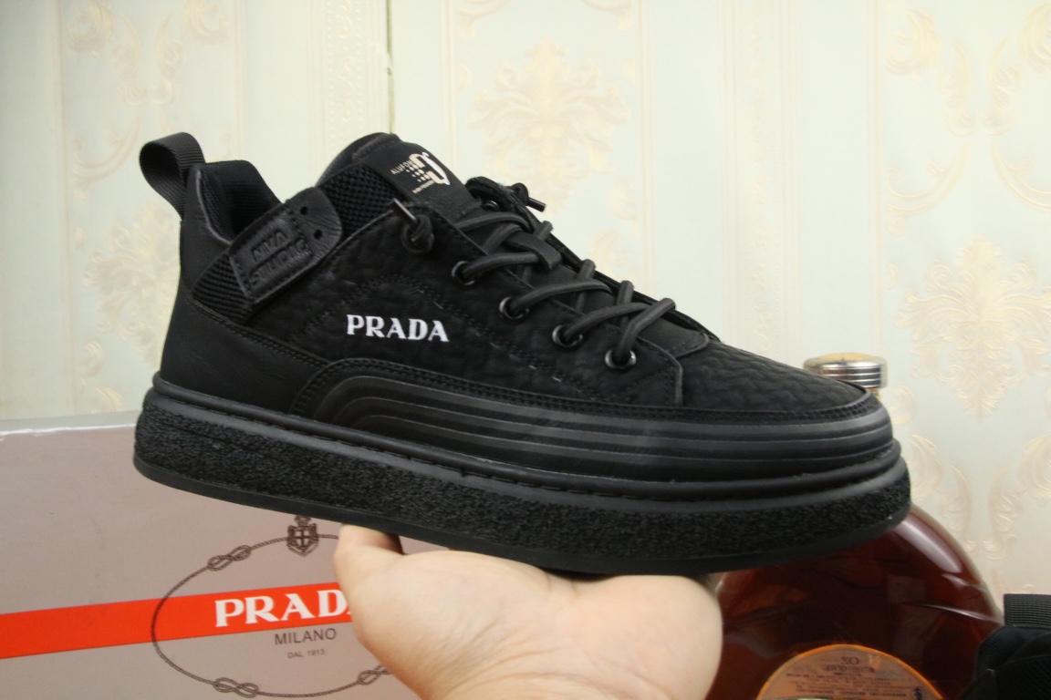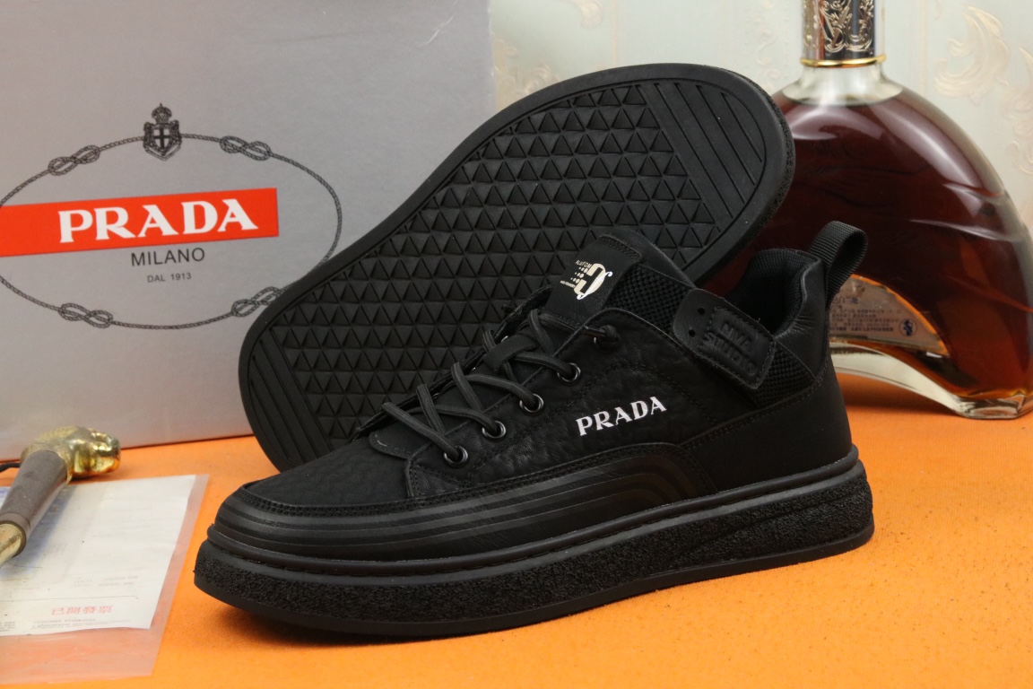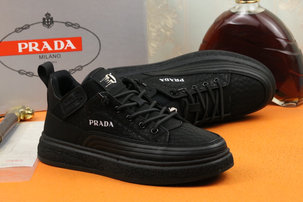 I5 高品质Prada 普拉达 上市著名奢侈品牌,专柜同步更新,意大利男鞋时尚杂志季刊封面主推款鞋面采用意大利进口头层磨砂牛皮,舒适透气内里.原版防滑橡胶大底,上脚舒适有型. 细节无可挑剔.码数38-43