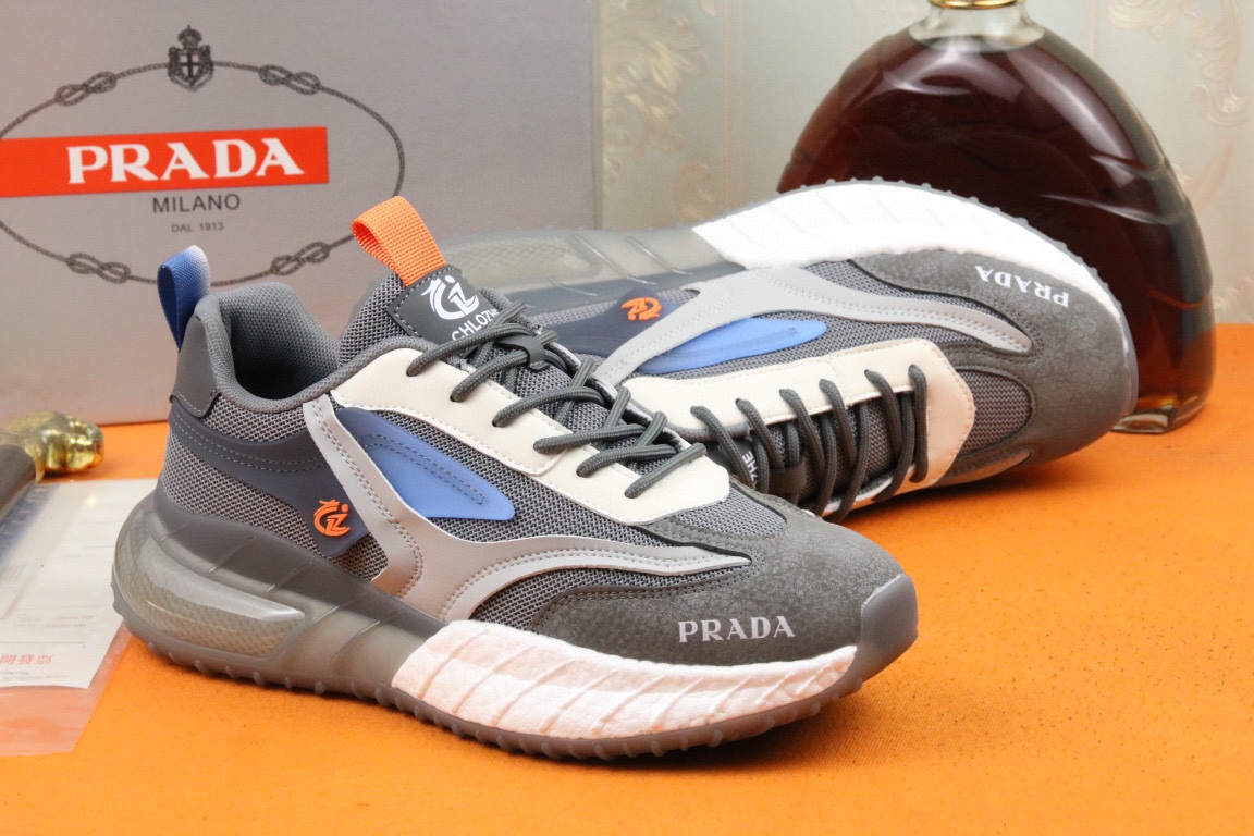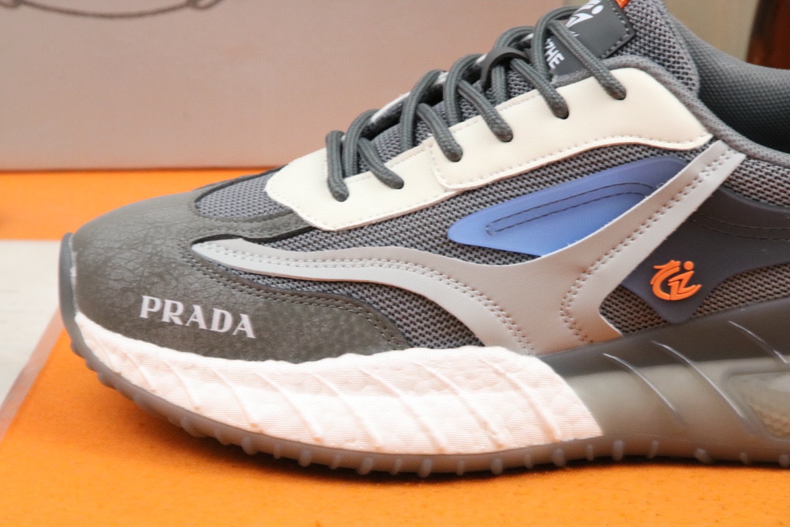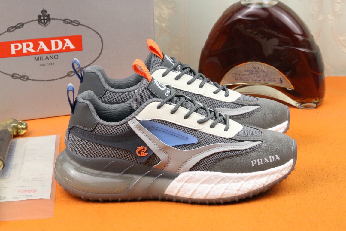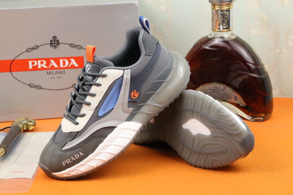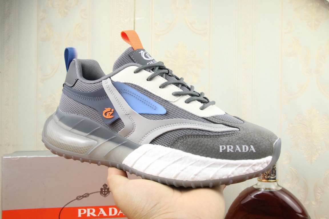 I5 高品质Prada 普拉达 上市著名奢侈品牌,专柜同步更新,意大利男鞋时尚杂志季刊封面主推款鞋面采用意大利进口头层牛皮拼接网布制作,舒适透气内里.原版轻质发泡气垫大底,上脚舒适有型. 细节无可挑剔.码数38-43
