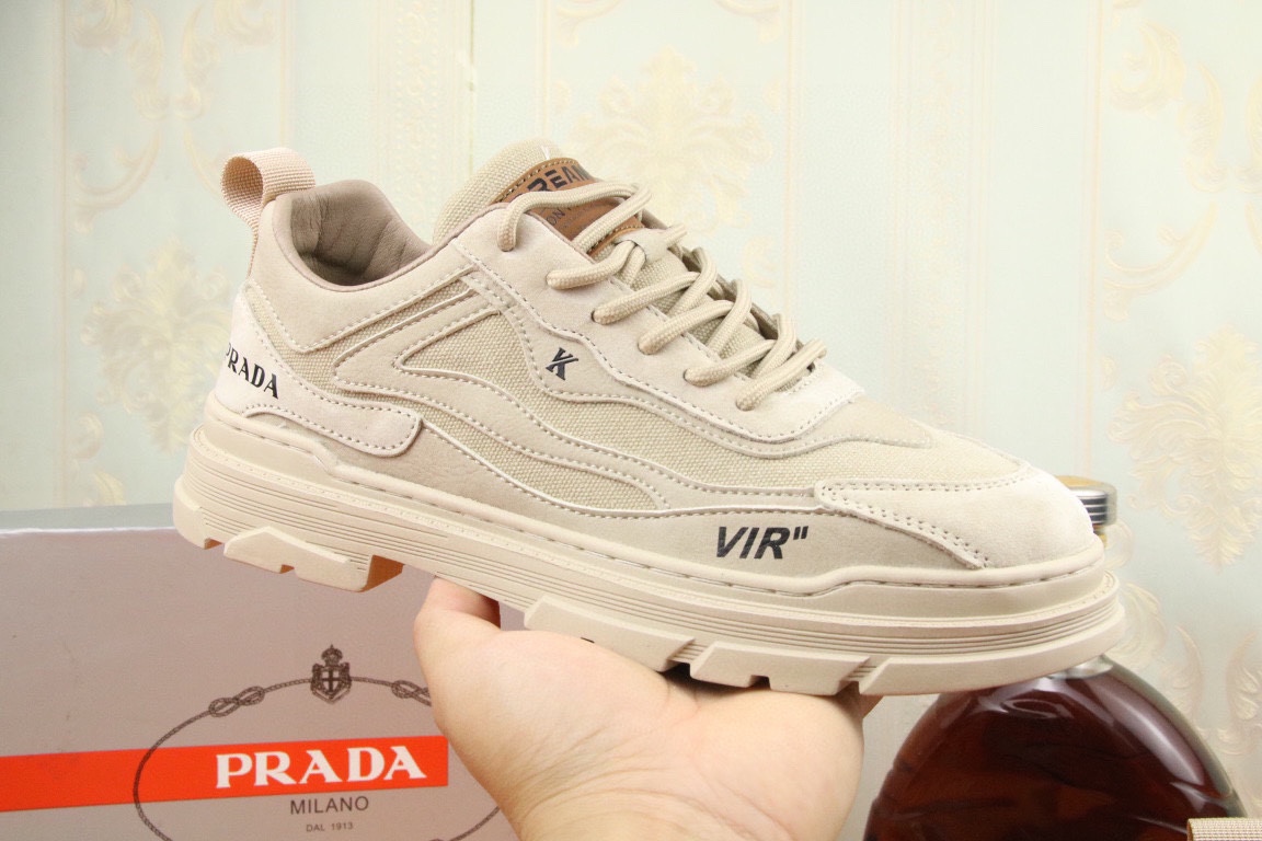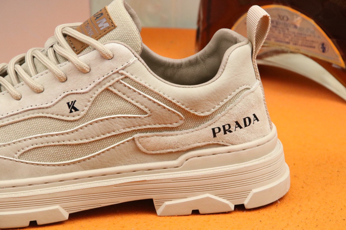 I5 高品质Prada 普拉达 上市著名奢侈品牌,专柜同步更新,意大利男鞋时尚杂志季刊封面主推款鞋面采用意大利进口头层牛皮拼接网布制作,舒适透气内里.原版防滑橡胶大底,上脚舒适有型. 细节无可挑剔.码数38-43