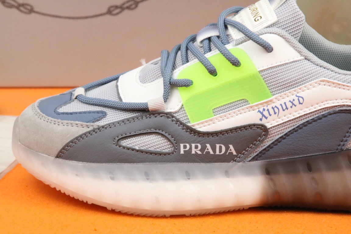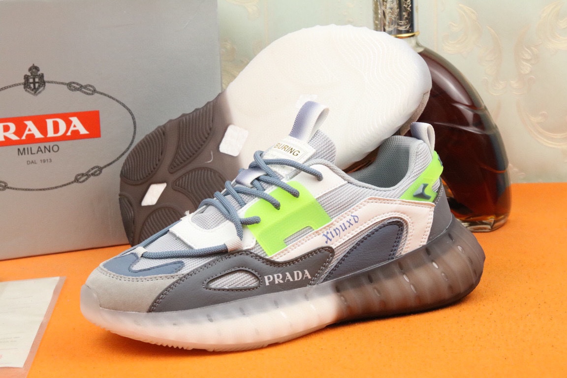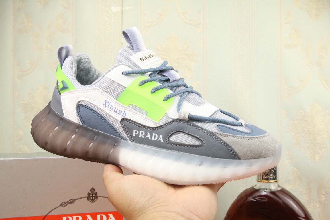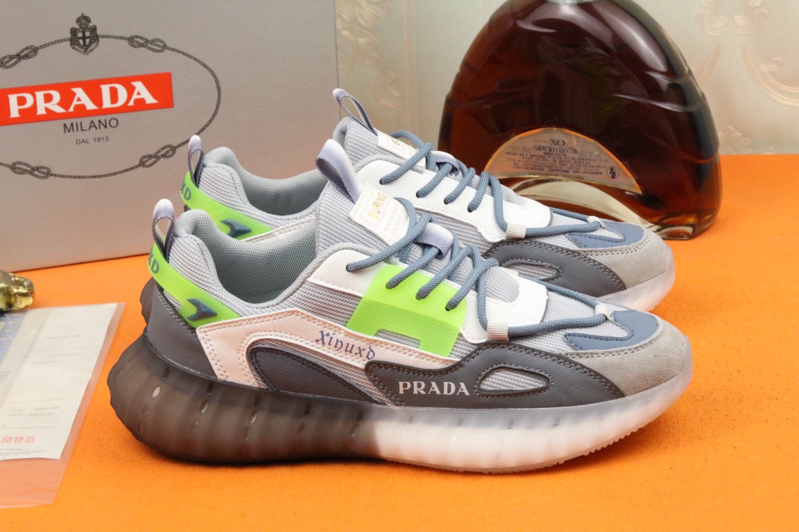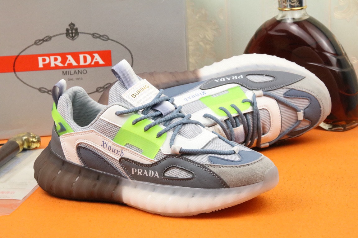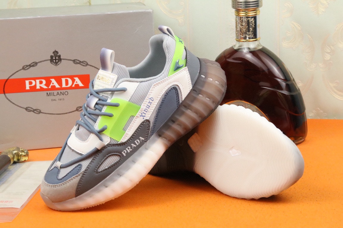 I5 高品质Prada 普拉达 上市著名奢侈品牌,专柜同步更新,意大利男鞋时尚杂志季刊封面主推款鞋面采用意大利进口头层牛皮拼接网布制作,舒适透气内里.原版防滑运动大底,上脚舒适有型. 细节无可挑剔.码数38-43