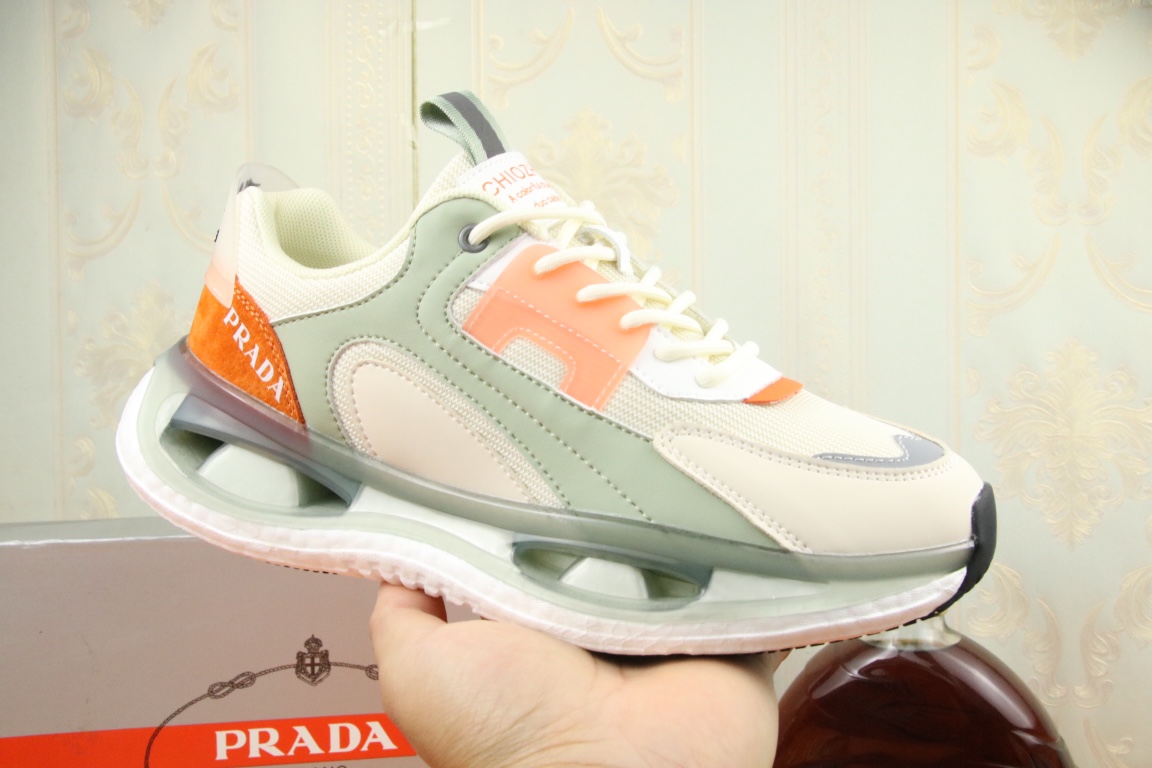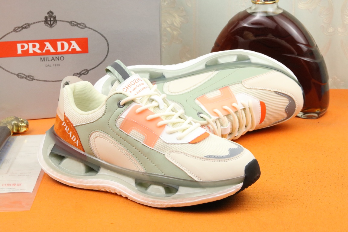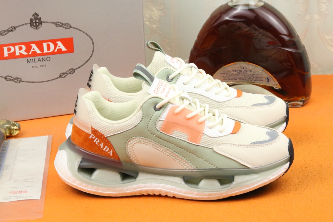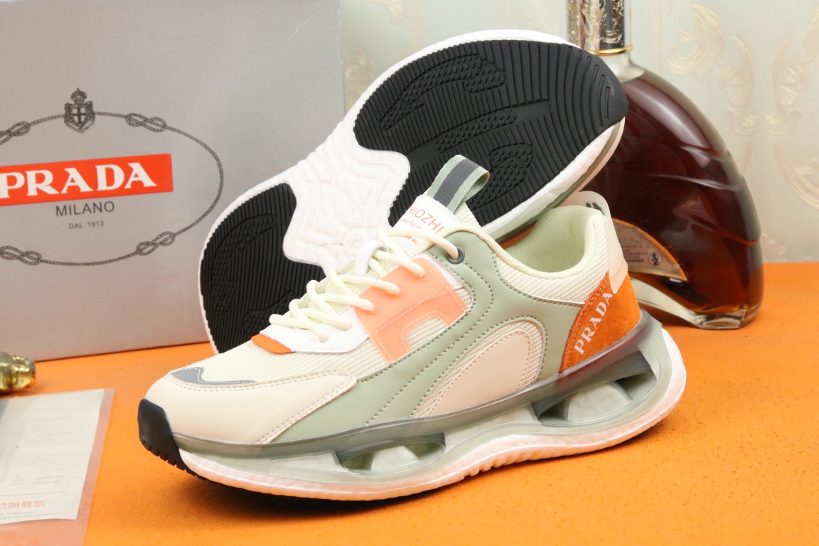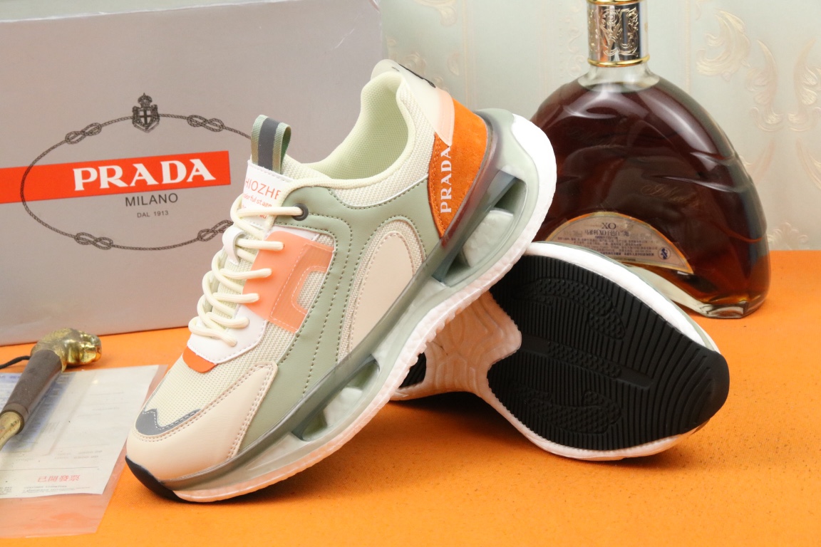 I5 高品质Prada 普拉达 上市著名奢侈品牌,专柜同步更新,意大利男鞋时尚杂志季刊封面主推款鞋面采用意大利进口头层牛皮拼接网布制作,舒适透气内里.原版二次发泡气垫大底,上脚舒适有型. 细节无可挑剔.码数38-43