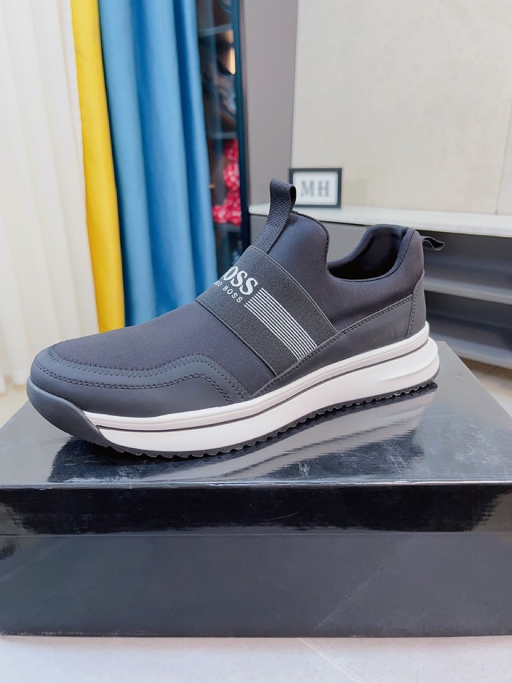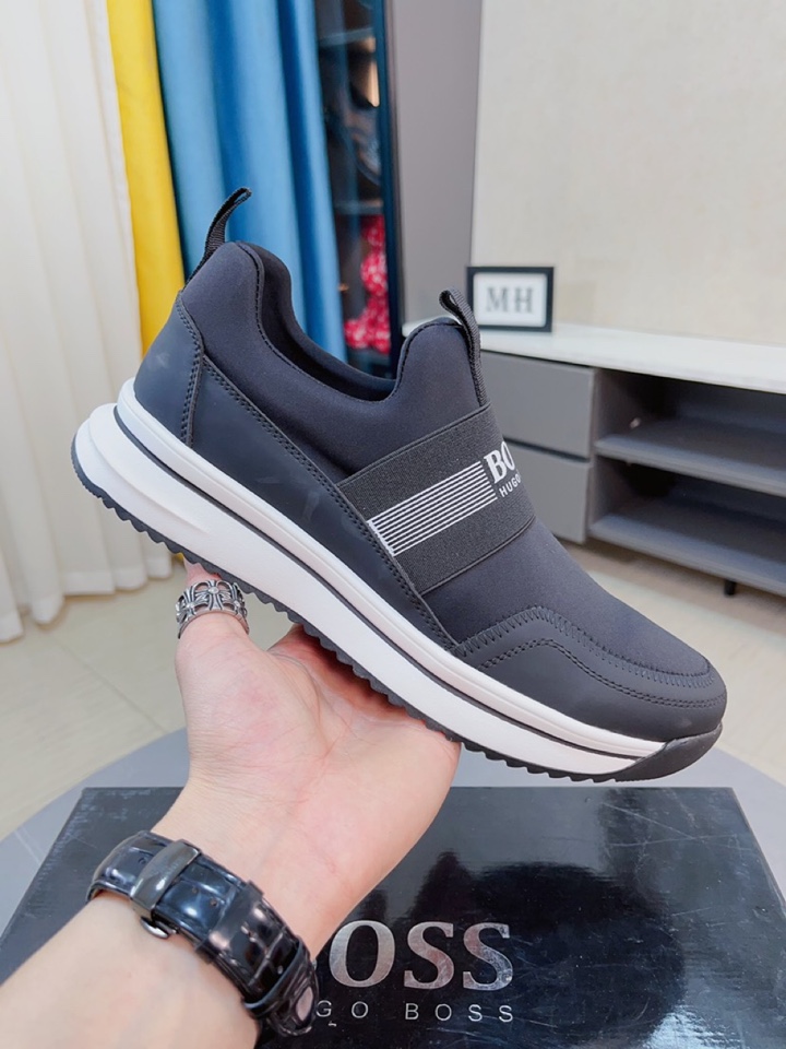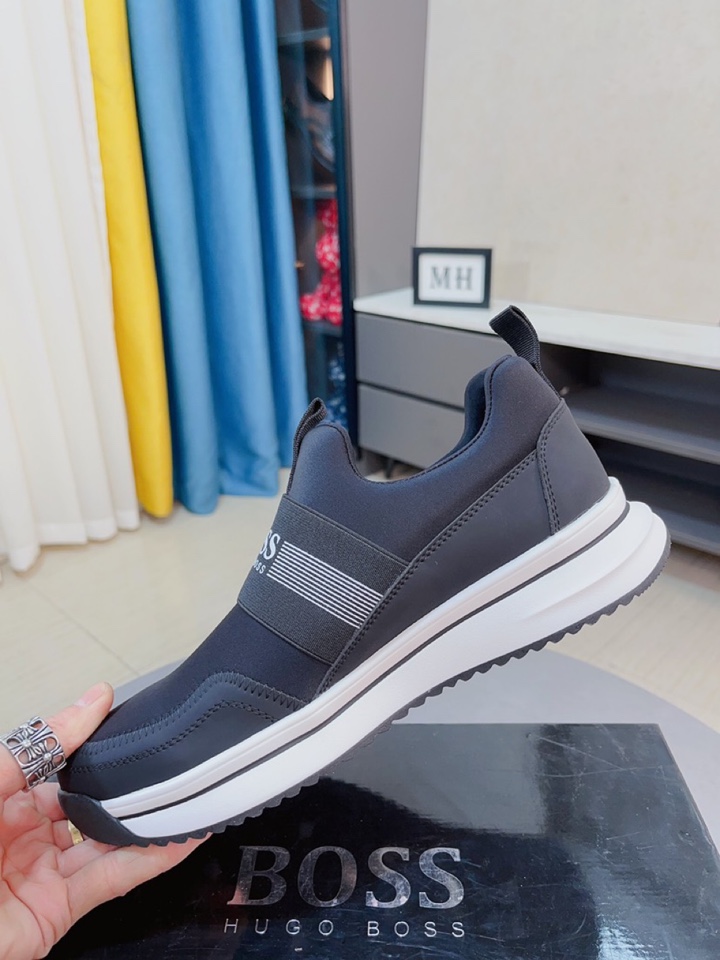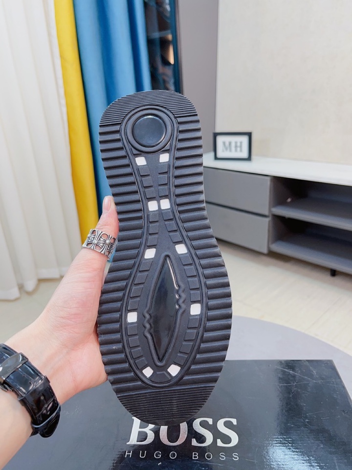 I5 boss 以经典的设计成为永不落幕的时尚宠儿,经典的休闲造型.鞋面采用顶级丝绸皮网布拼接 品牌logo点缀 彰显品牌魅力;头层真皮里品牌专用大底,耐磨,轻便,码数:38-44