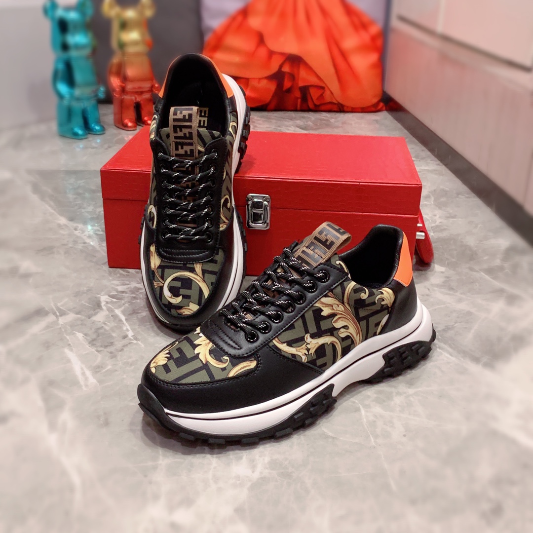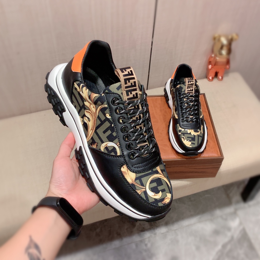 I5 Fendi 芬迪 最新爆款休闲鞋,顶端品牌奢侈~代购,顶级~质量.专柜同卖产品鞋面選用进口透气牛皮搭配布面料材质透气羊皮内里精细做工.原版个性时尚柔软橡膠耐磨防滑大底,上脚轻巧舒适,实物拍摄實物更好看,009广州码: 38-44. 2色可选