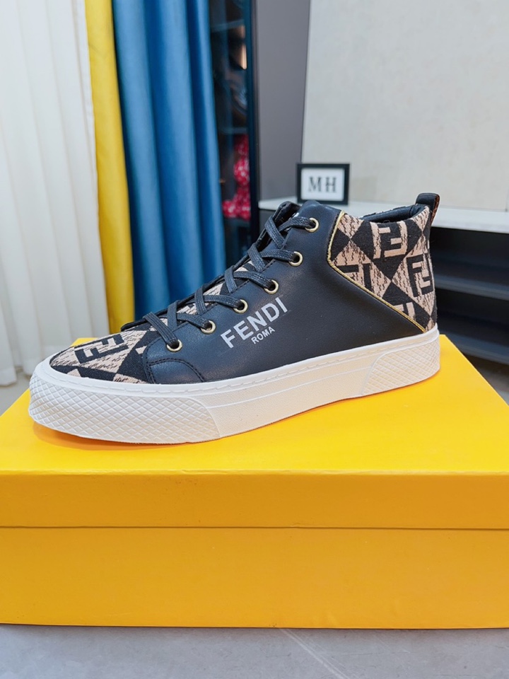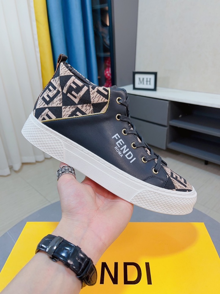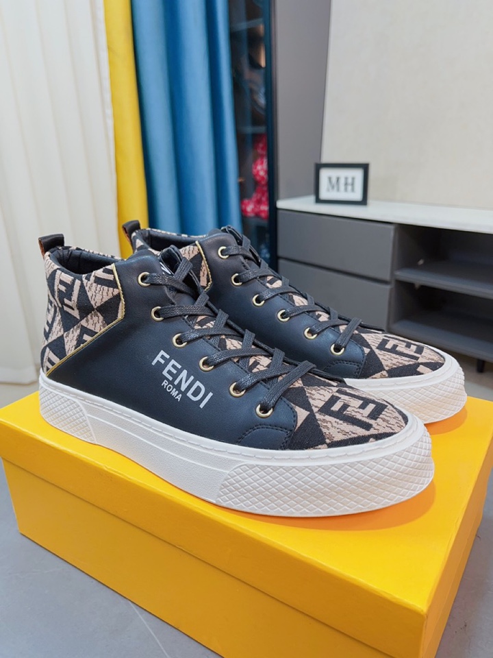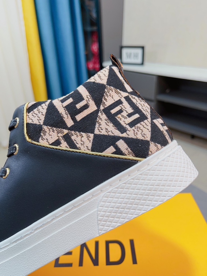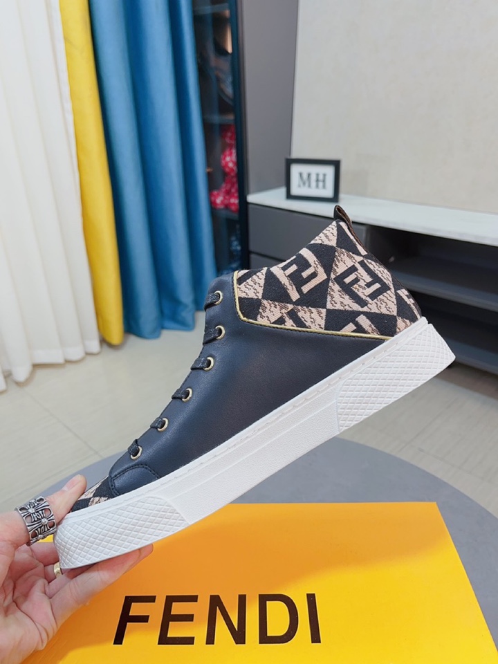 I5 Fendi 芬迪 :男鞋高端品牌:高帮系系:官网1:1最新力作:鞋面采用品牌布料配进口牛皮工艺,羊皮里制作让行走更加便捷舒适,惊世之作,与官方的质量相比美的1:1复刻打造时尚个性衬托你的与众不同潮男必备! ,2色可选,码数:38-44.Whatsapp:+86 13024730673