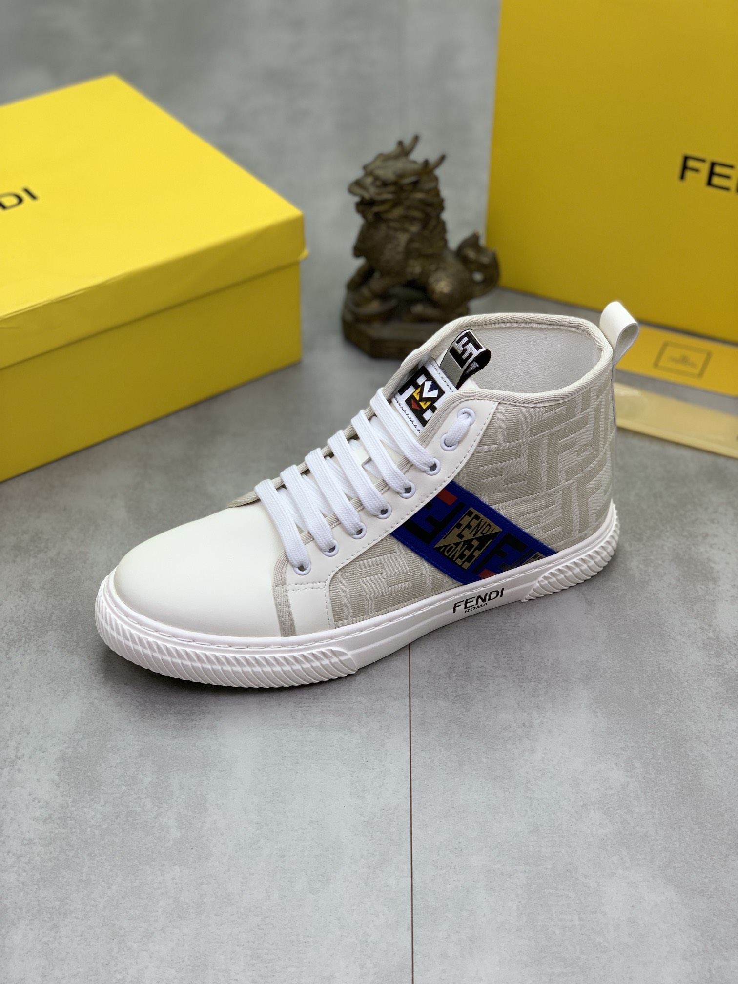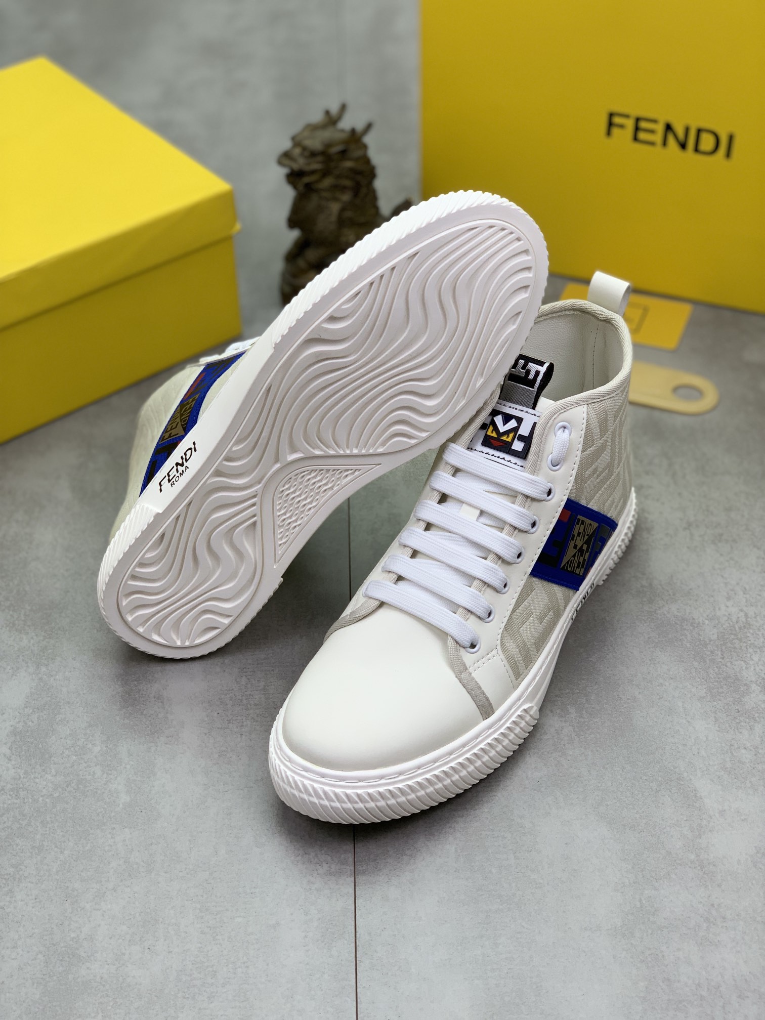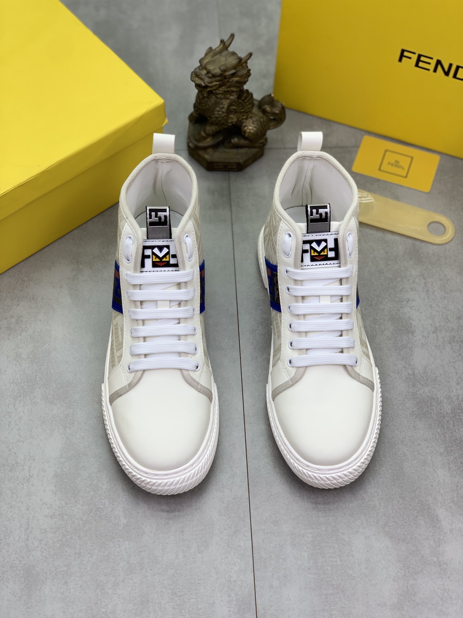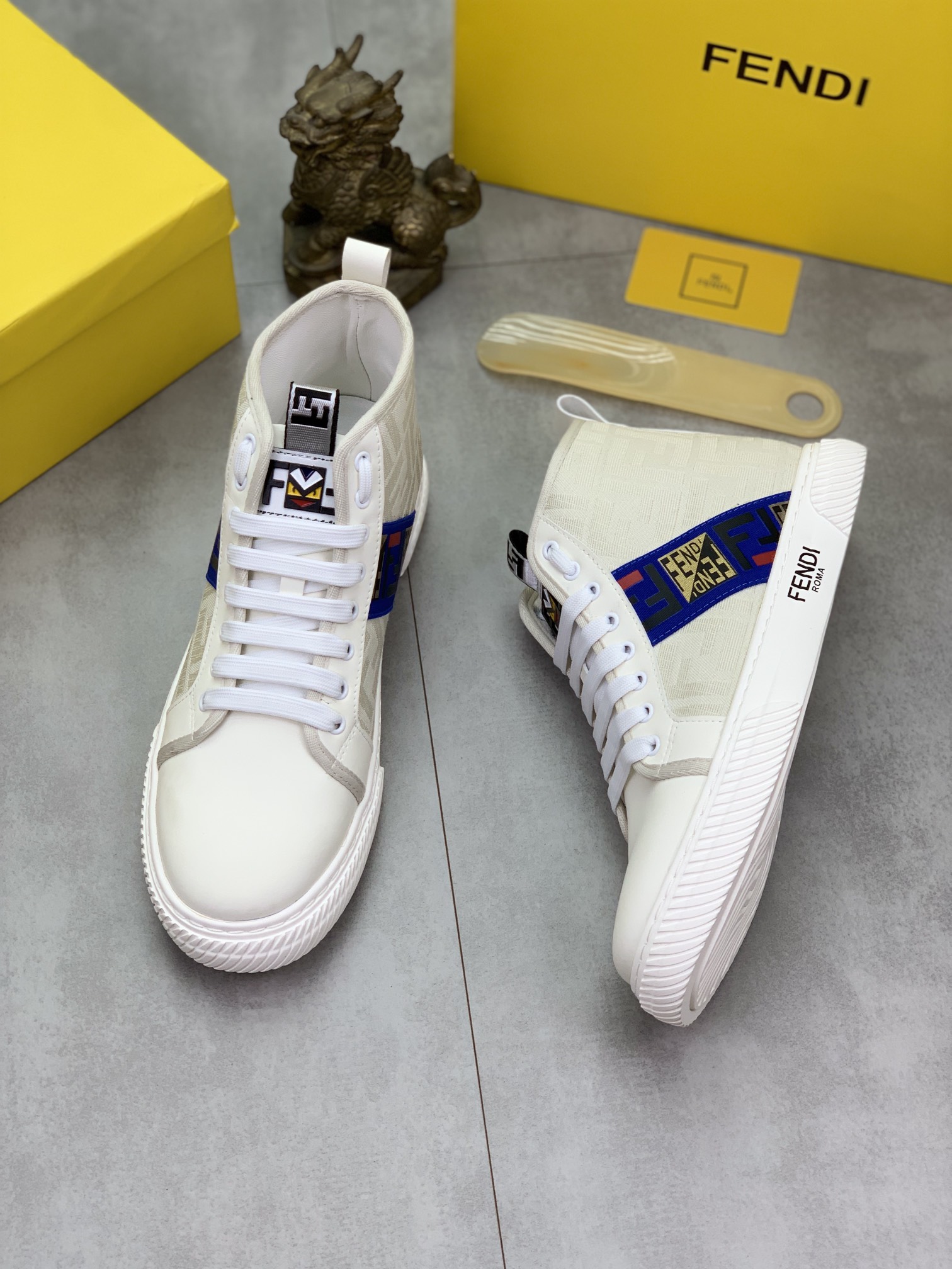 I5 Fendi 芬迪 .FENDI 顶级专柜高帮同步发售,鞋面意大利进口柔软小牛皮全进口柔软猪皮内里鞋垫,鞋底:原厂特供原版底,独家活动成型底超级舒适,原厂跟单货,高品质,欢迎对比.原版进口轻便橡胶耐磨大底; 黑 白色可选,码数:38-44