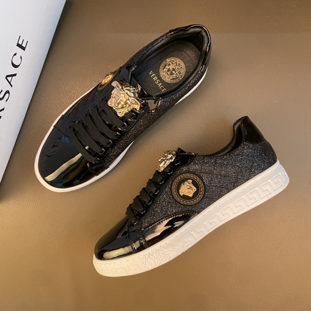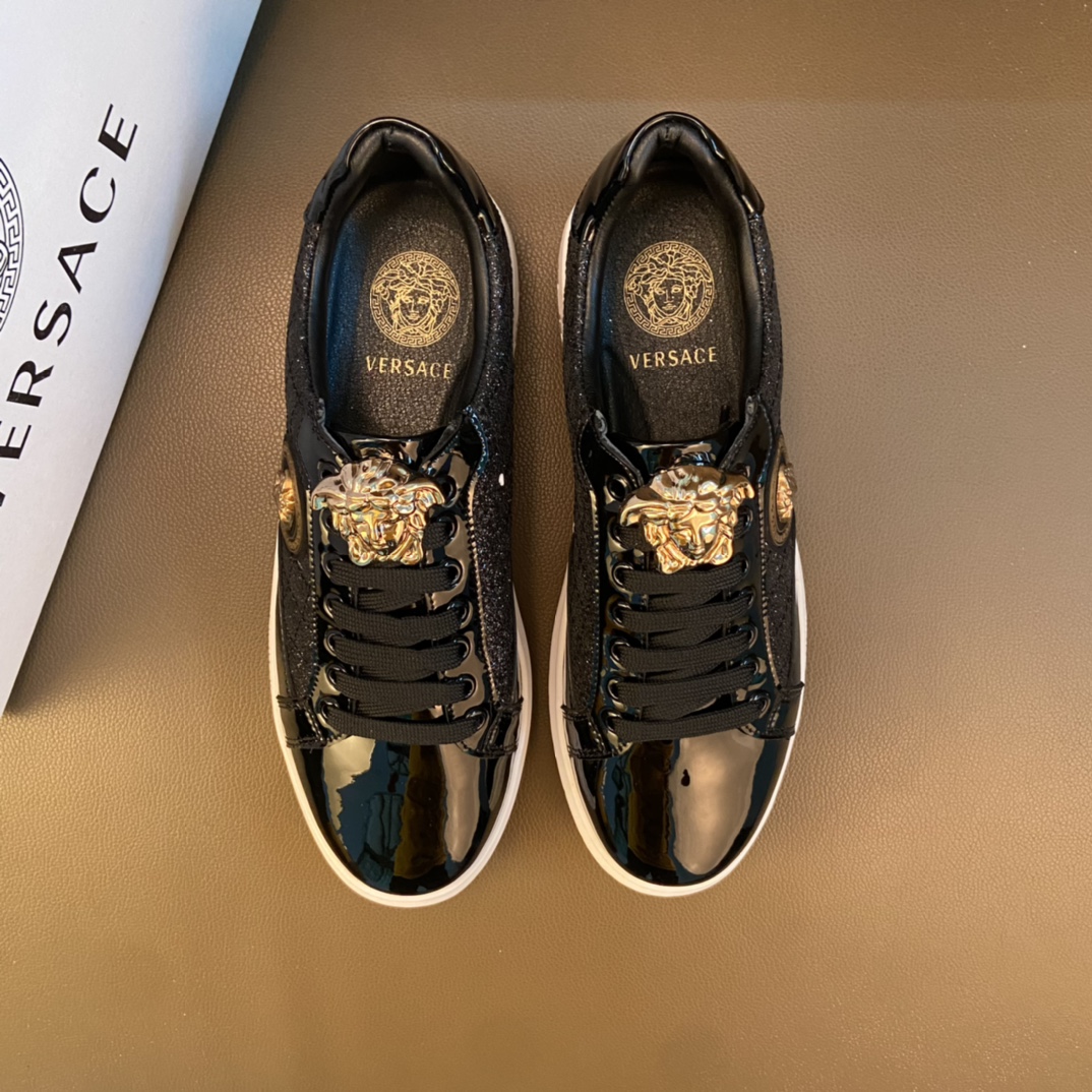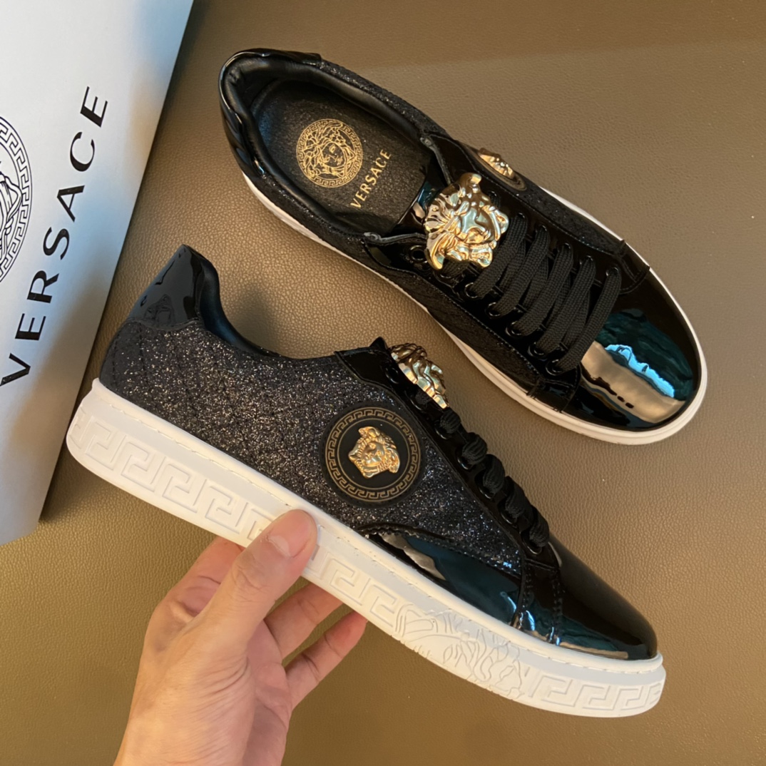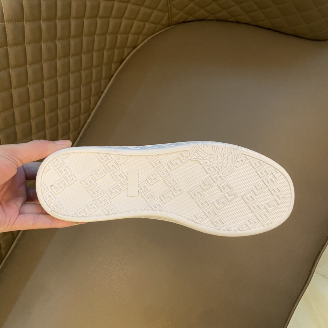 I5 Versace 范思哲 ~独领风骚2022经典低帮懒人款,瓦莎琪压花纹 材料:进口头层小牛皮,羊皮内里 欧美大师独特版面设计 完美打造专柜品质 耐磨仿滑原版大底 青年乐福款 休闲运动板鞋超级舒服.码数:38-44,45订做. 黑色 白色 选