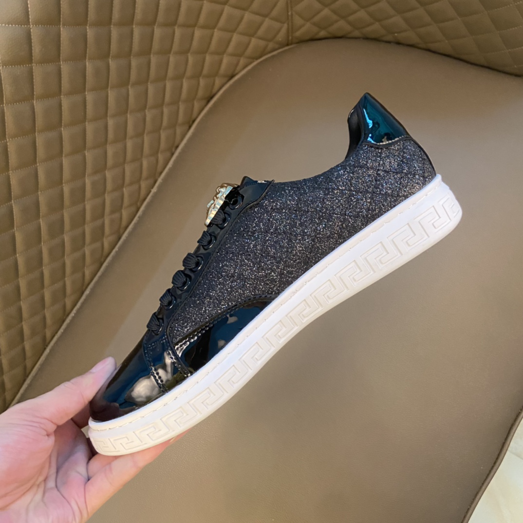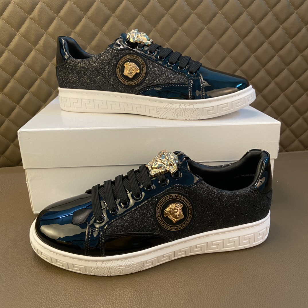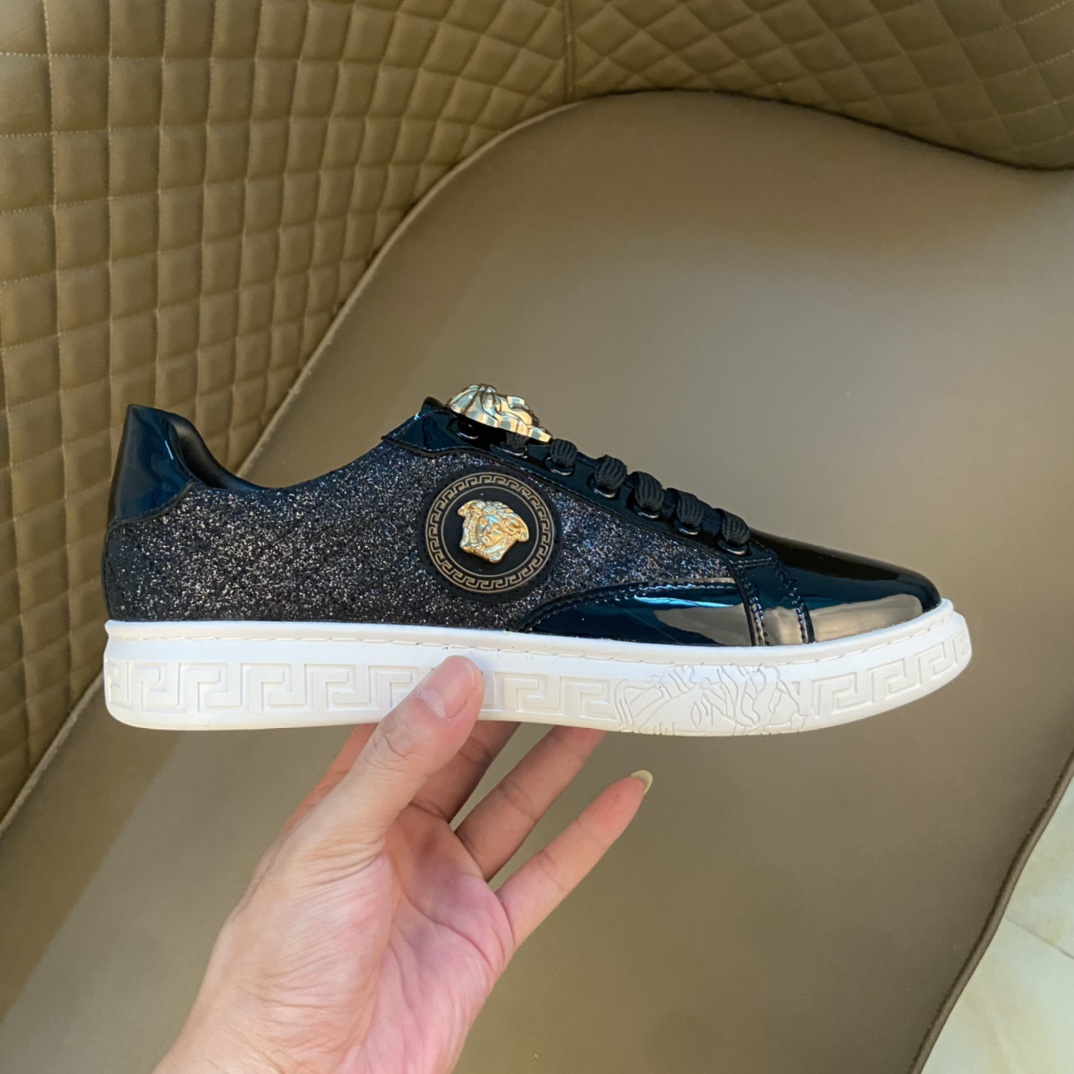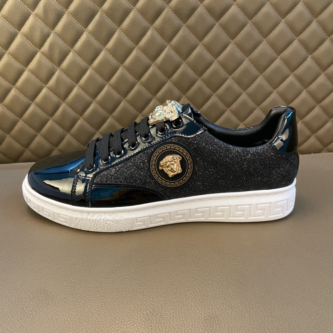 I5 Versace 范思哲 ~独领风骚2022经典低帮懒人款,瓦莎琪压花纹 材料:进口头层小牛皮,羊皮内里 欧美大师独特版面设计 完美打造专柜品质 耐磨仿滑原版大底 青年乐福款 休闲运动板鞋超级舒服.码数:38-44,45订做. 黑色 白色 选