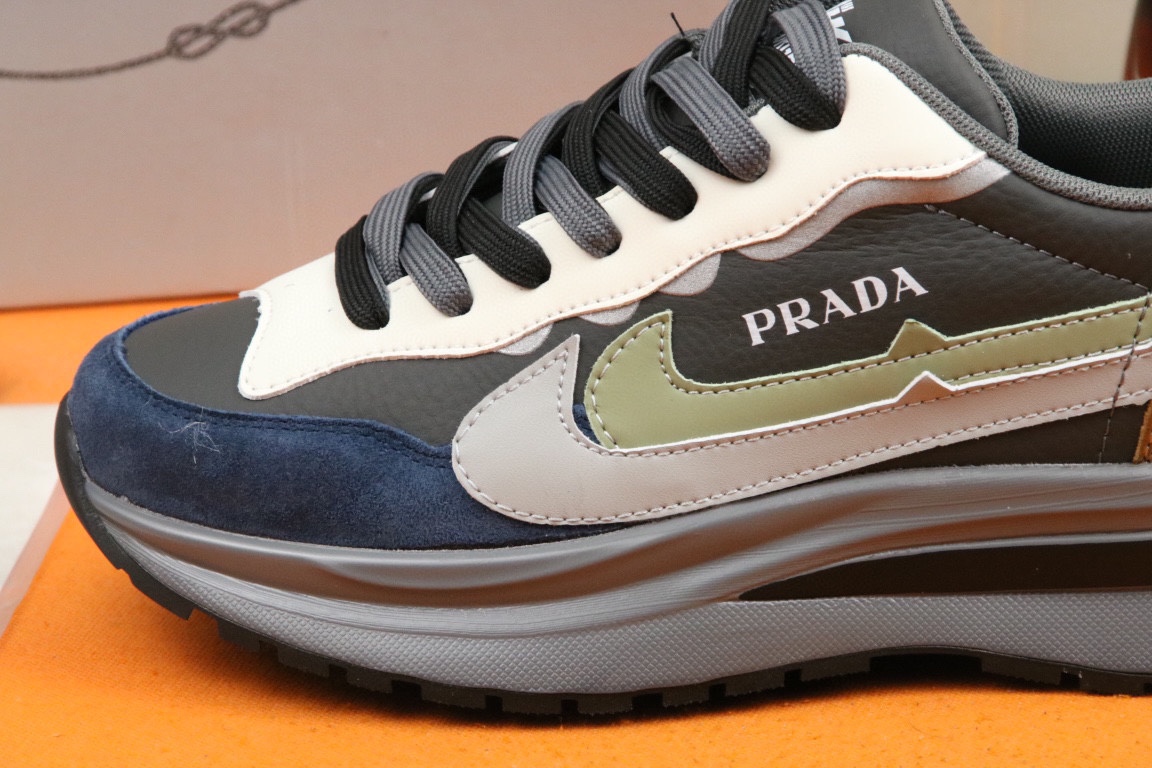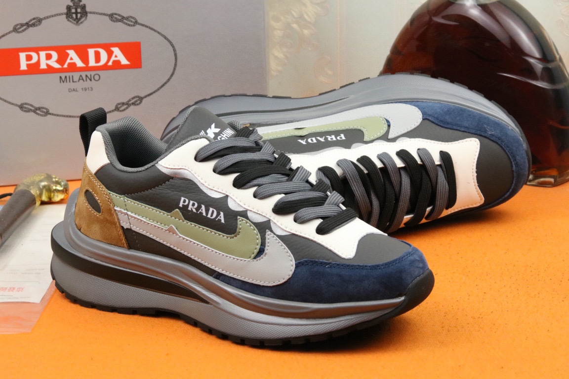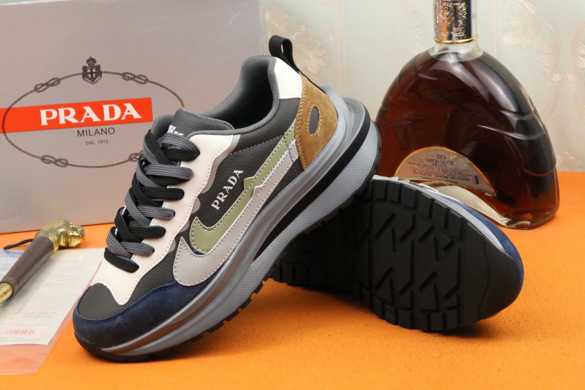 J0 高品质Prada 普拉达 上市著名奢侈品牌,专柜同步更新,意大利男鞋时尚杂志季刊封面主推款鞋面采用意大利进口头层牛皮,舒适透气网布内里.原版防滑橡胶大底,上脚舒适有型. 细节无可挑剔.码数38-43