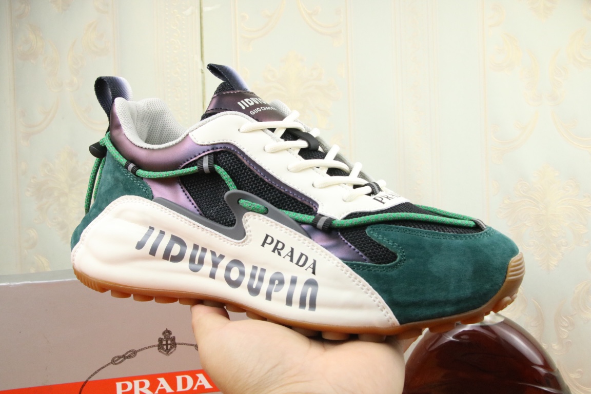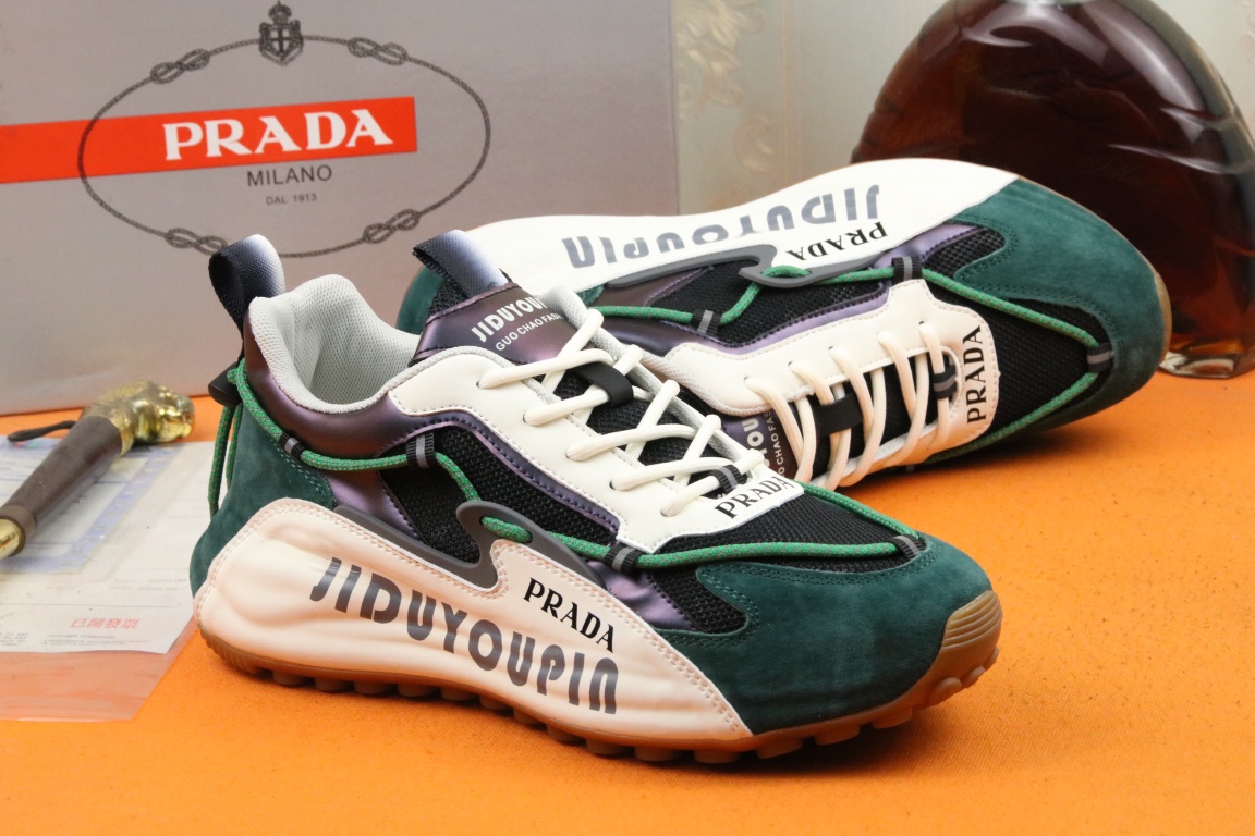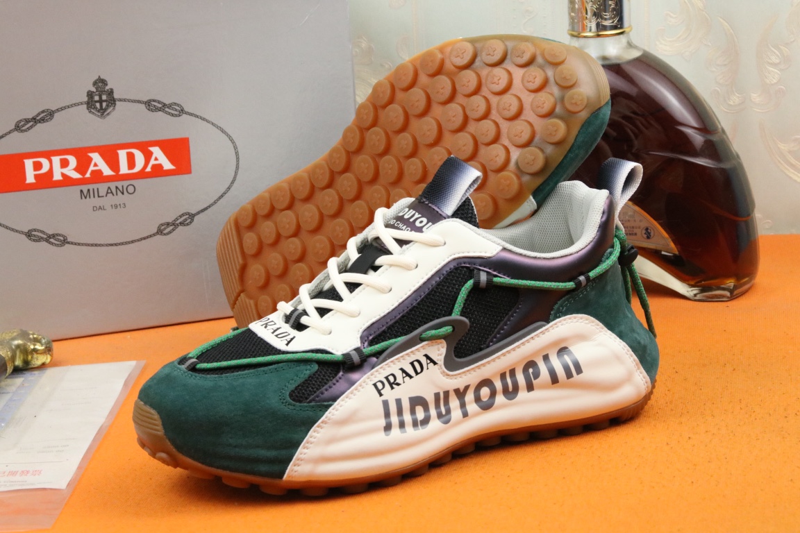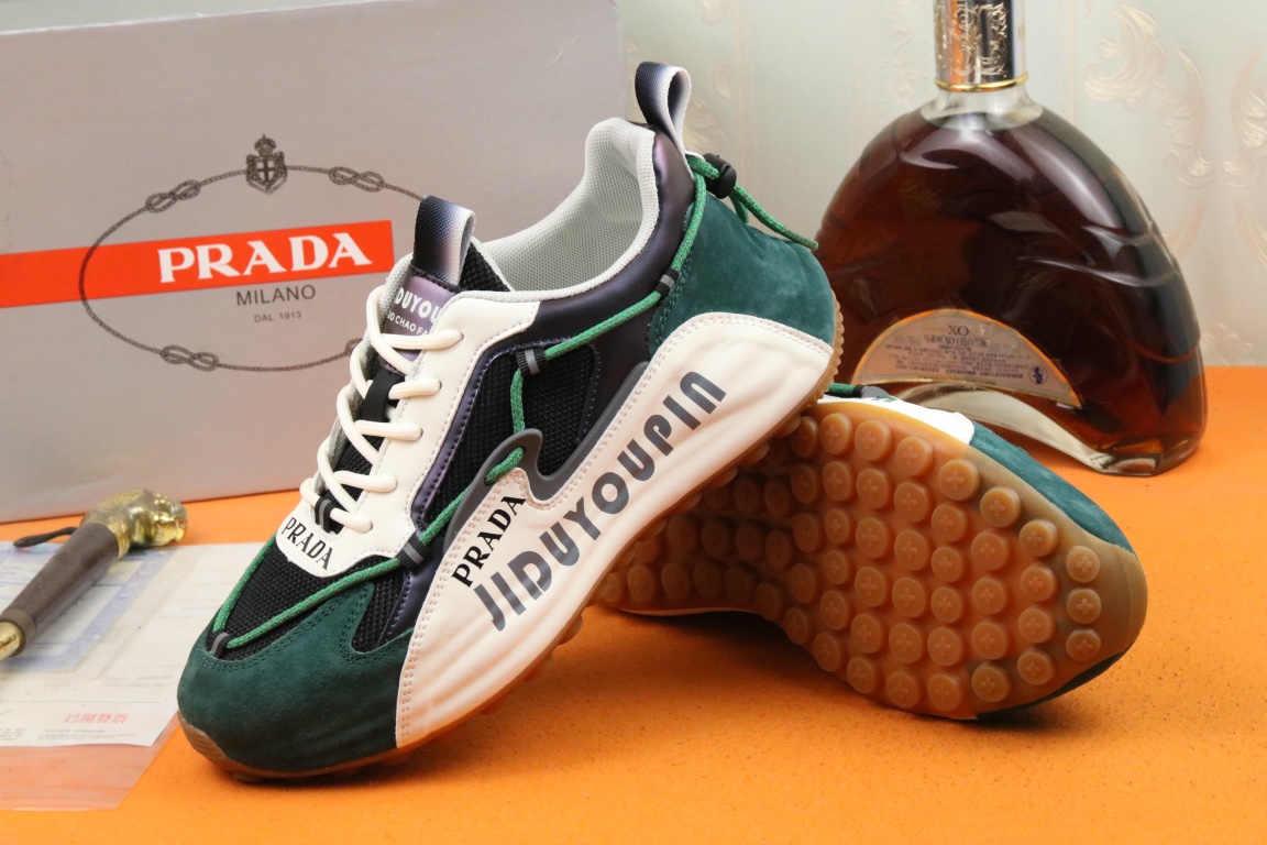J0 高品质Prada 普拉达 上市著名奢侈品牌,专柜同步更新,意大利男鞋时尚杂志季刊封面主推款鞋面采用意大利进口头层牛皮,舒适透气网布内里.原版防滑橡胶大底,上脚舒适有型. 细节无可挑剔.码数38-44