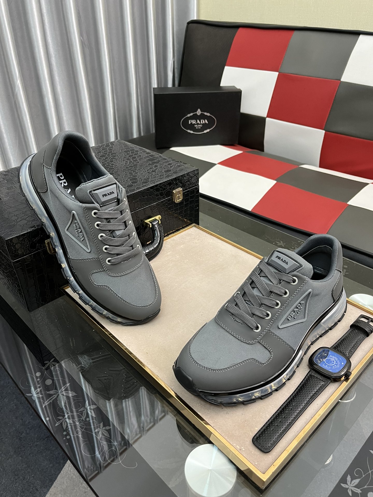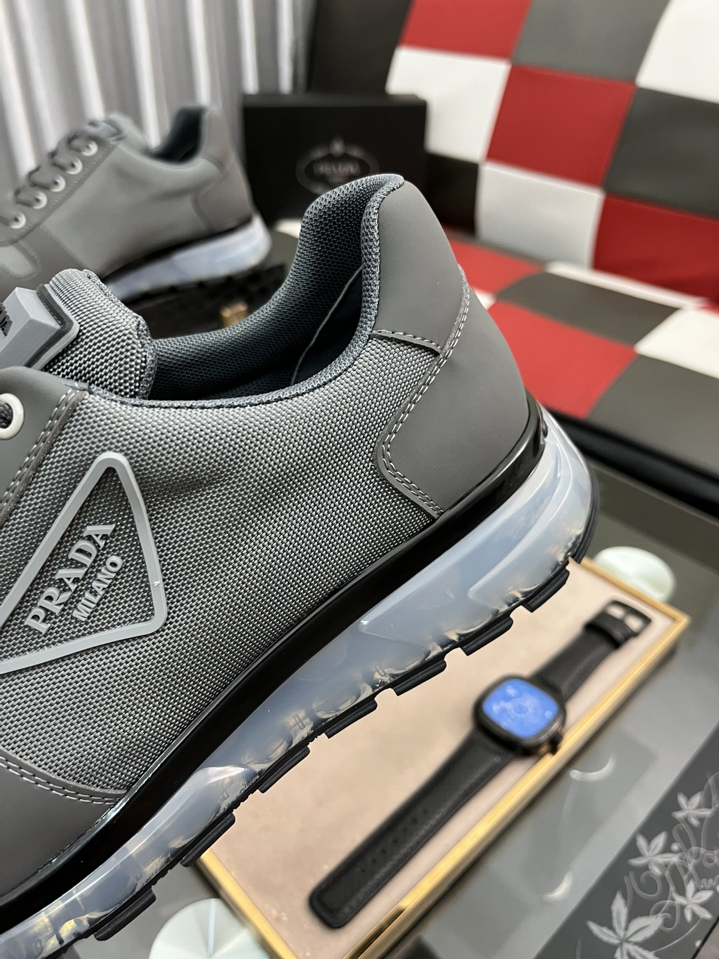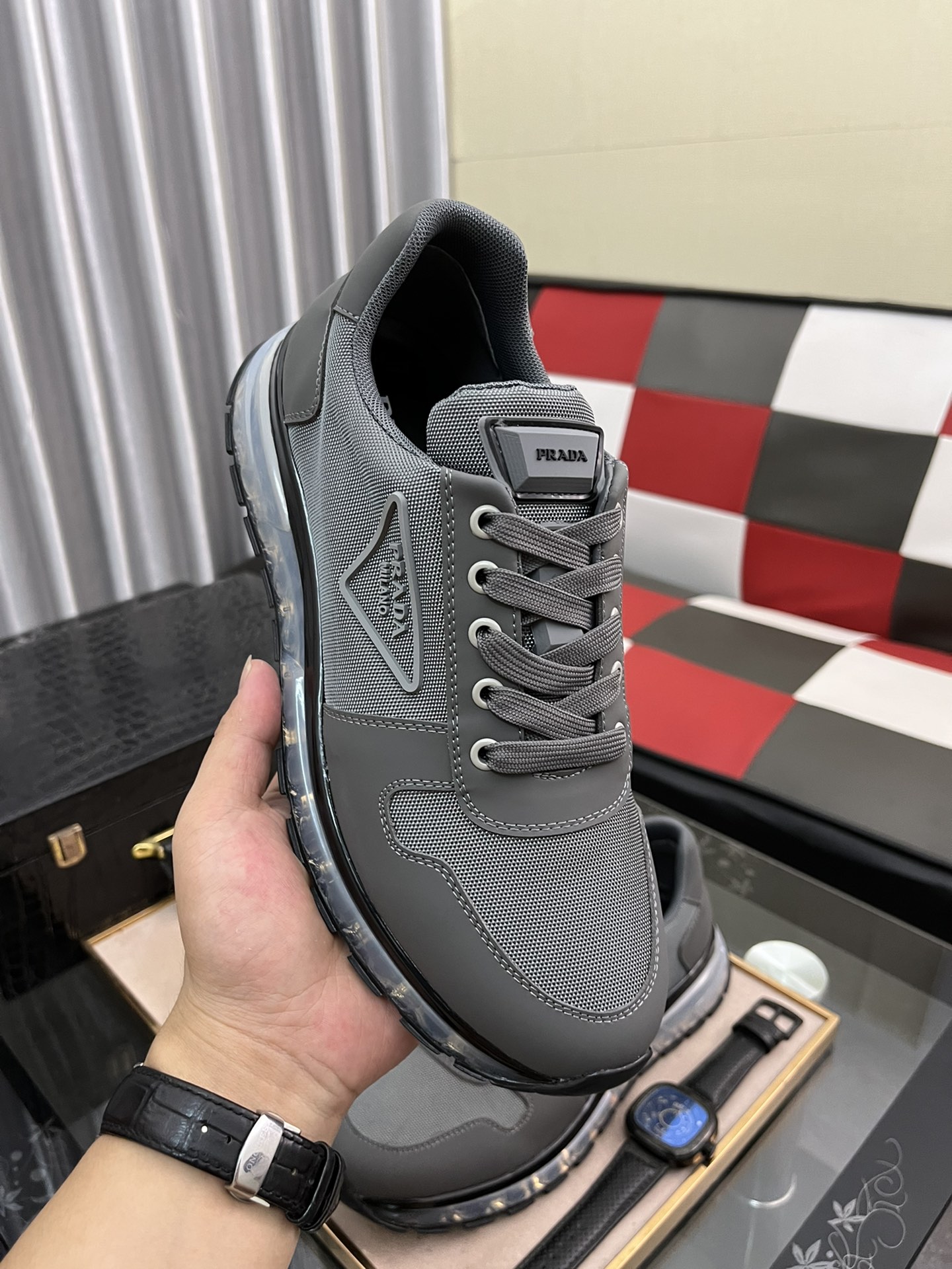 J0 Prada 普拉达 男士系带气垫运动鞋 莞产顶级猛货 进口纳帕牛皮鞋面 侧面带品牌字母标识 轻盈透气 柔软舒适 小牛皮真皮包边装饰 颇具与众不同的运动风范 真皮鞋舌配经典PRADA字母徽章 尽显品牌格调 透明气垫中底配轻质胎纹橡胶大底 轻盈且增高约4CM 真皮垫脚 客供网布内里脚感极佳 配原包装尺码:38-39-40-41-42-43-444色可选