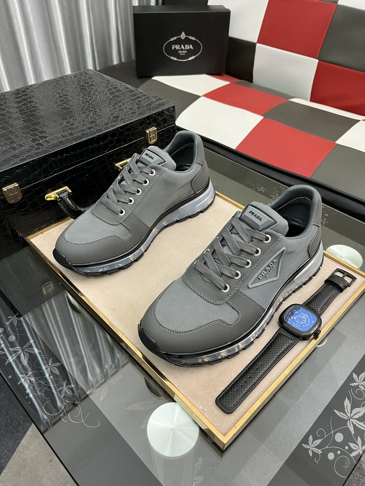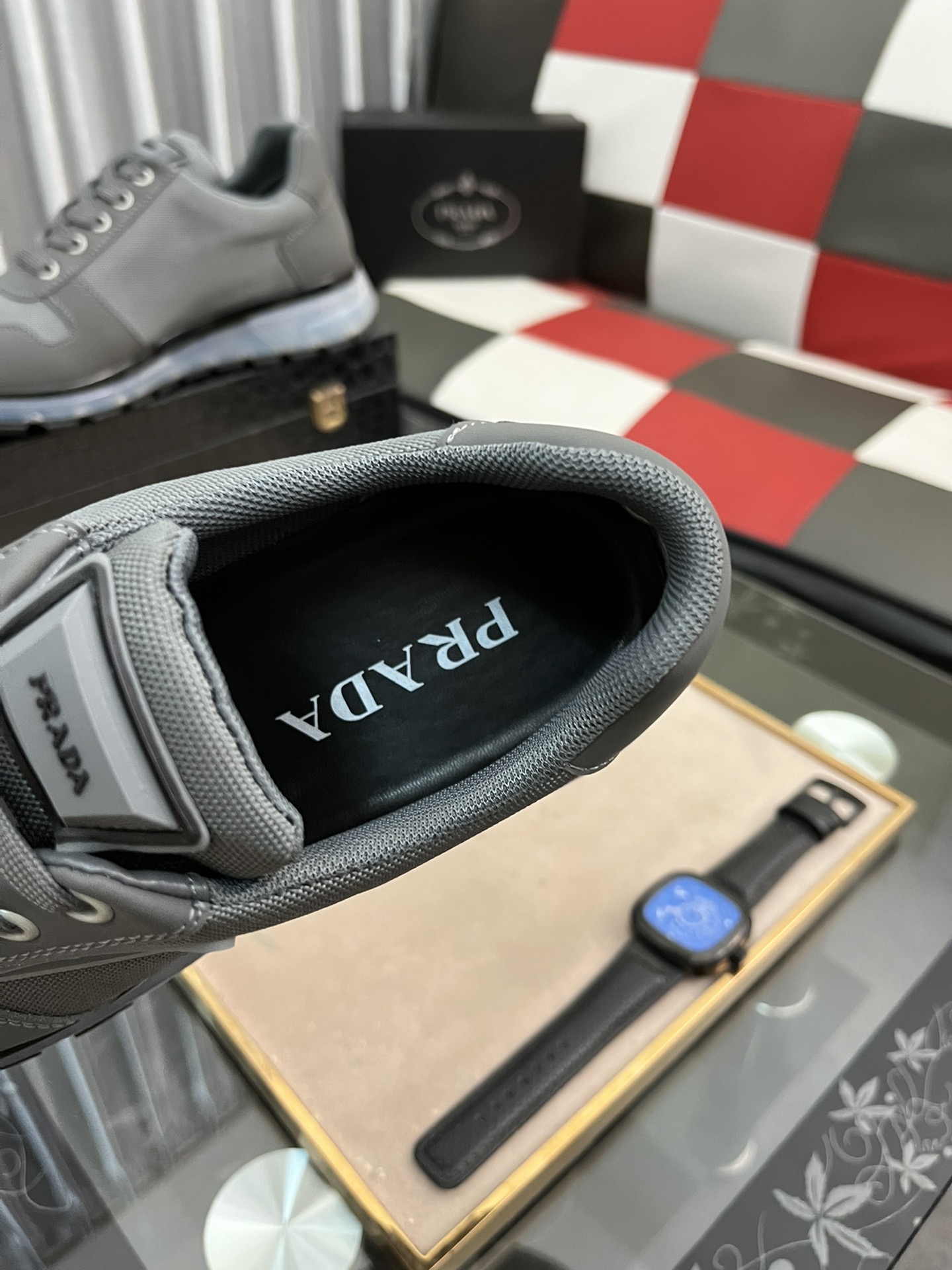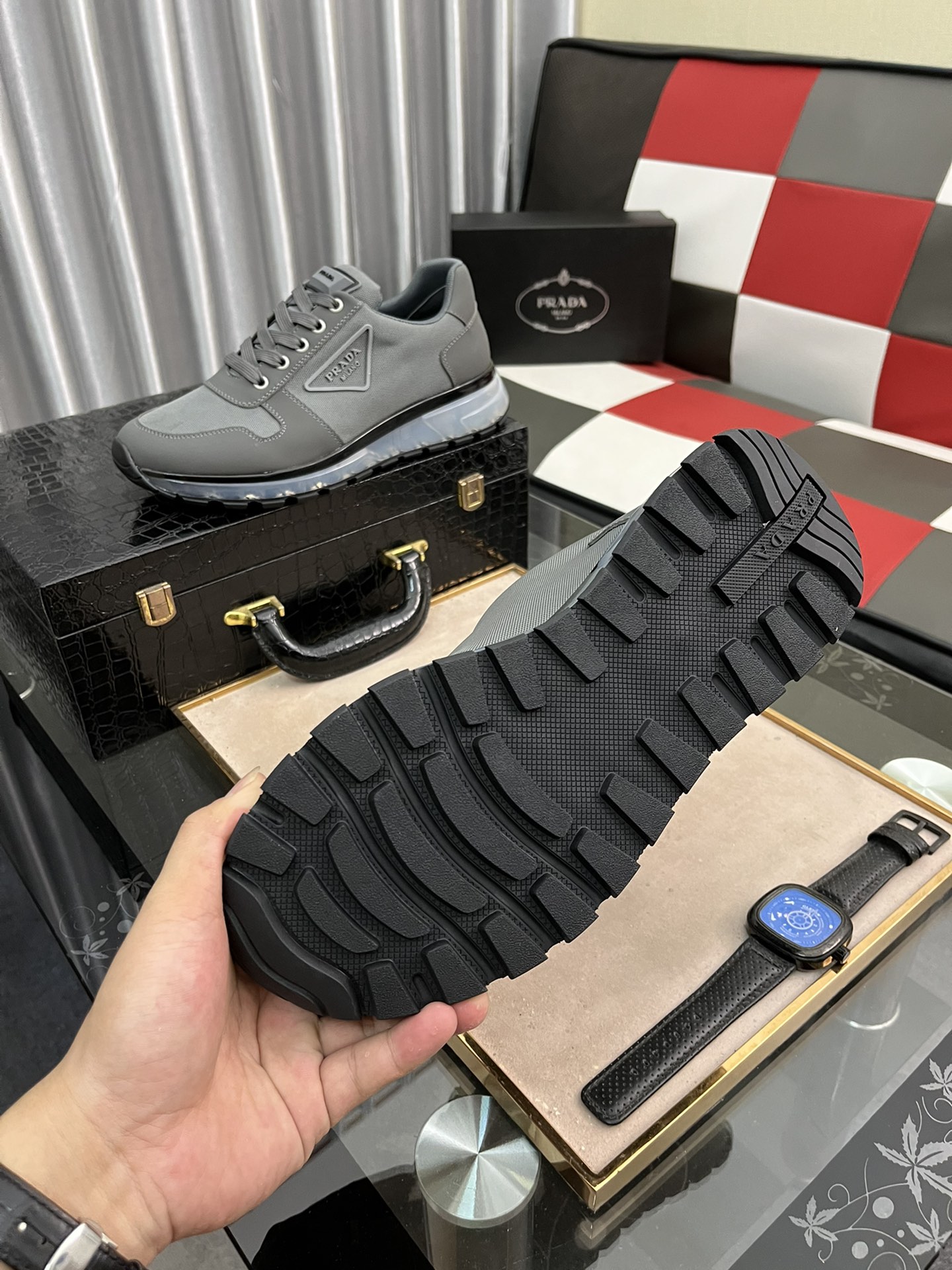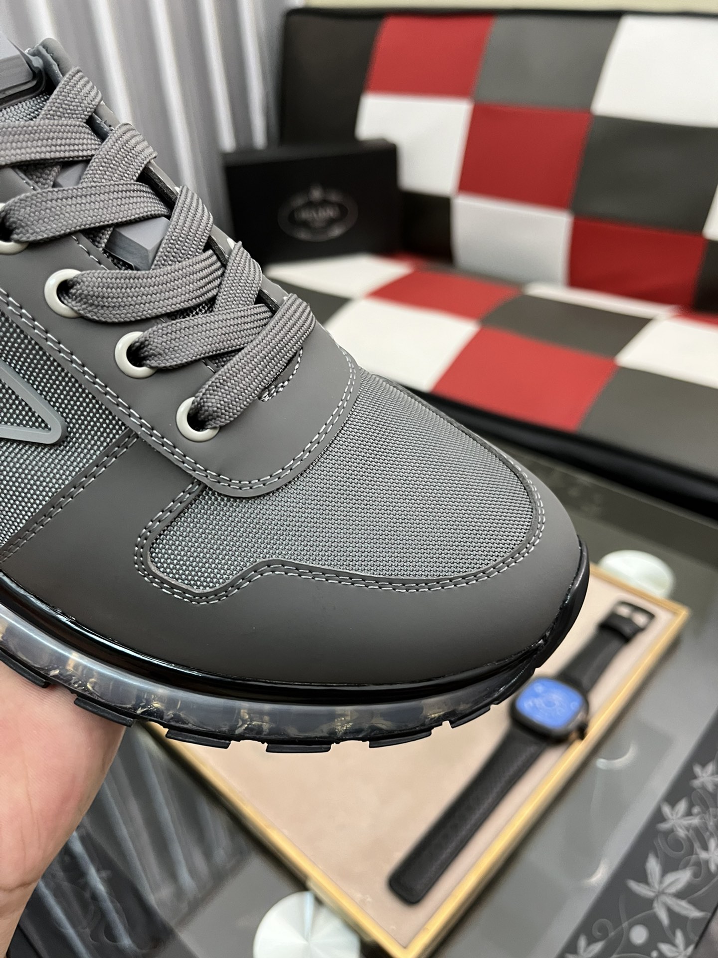 J0 Prada 普拉达 男士系带气垫运动鞋 莞产顶级猛货 进口纳帕牛皮鞋面 侧面带品牌字母标识 轻盈透气 柔软舒适 小牛皮真皮包边装饰 颇具与众不同的运动风范 真皮鞋舌配经典PRADA字母徽章 尽显品牌格调 透明气垫中底配轻质胎纹橡胶大底 轻盈且增高约4CM 真皮垫脚 客供网布内里脚感极佳 配原包装尺码:38-39-40-41-42-43-444色可选