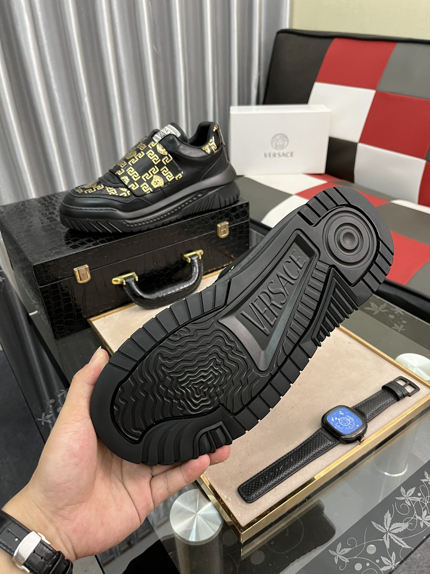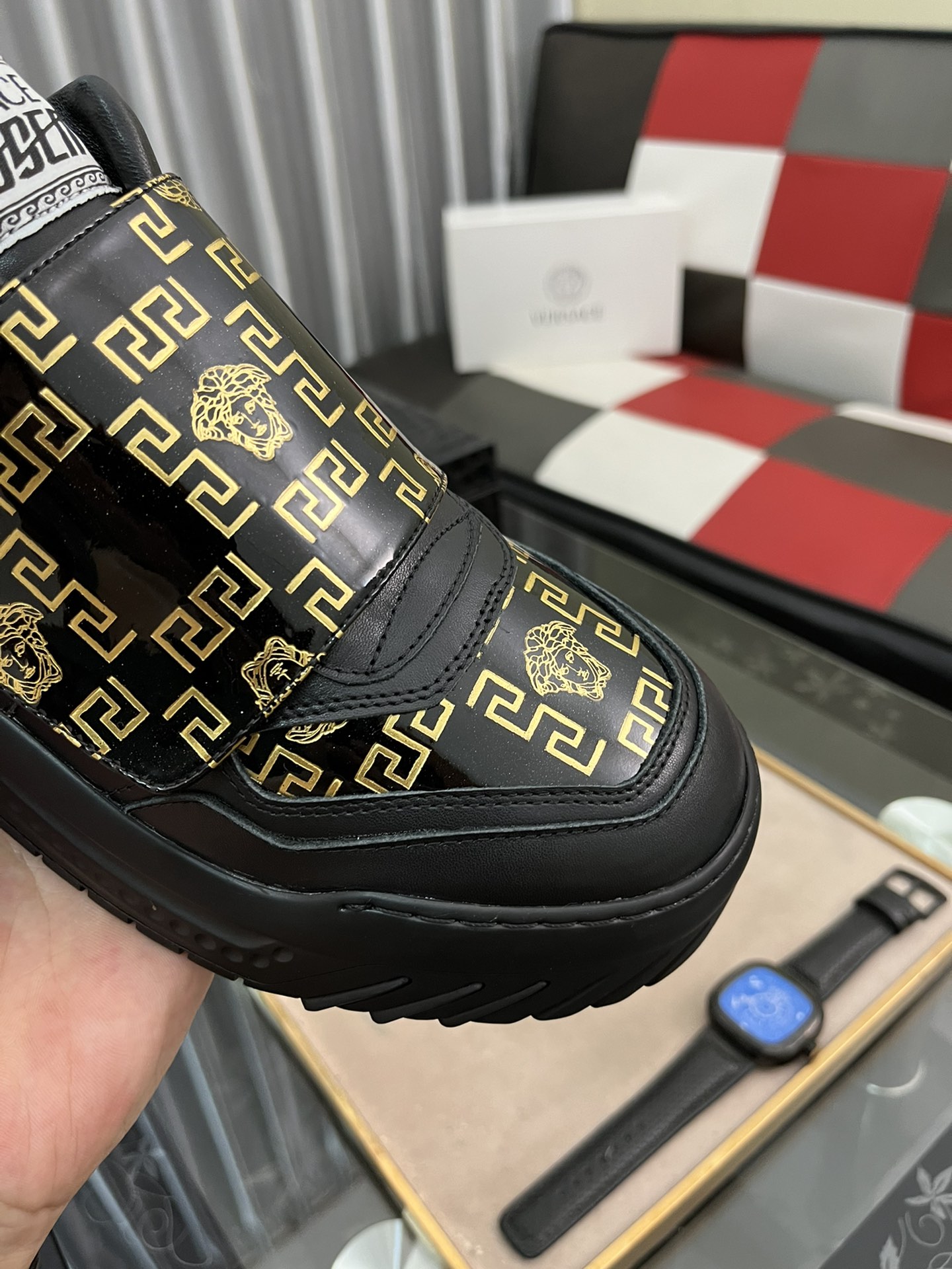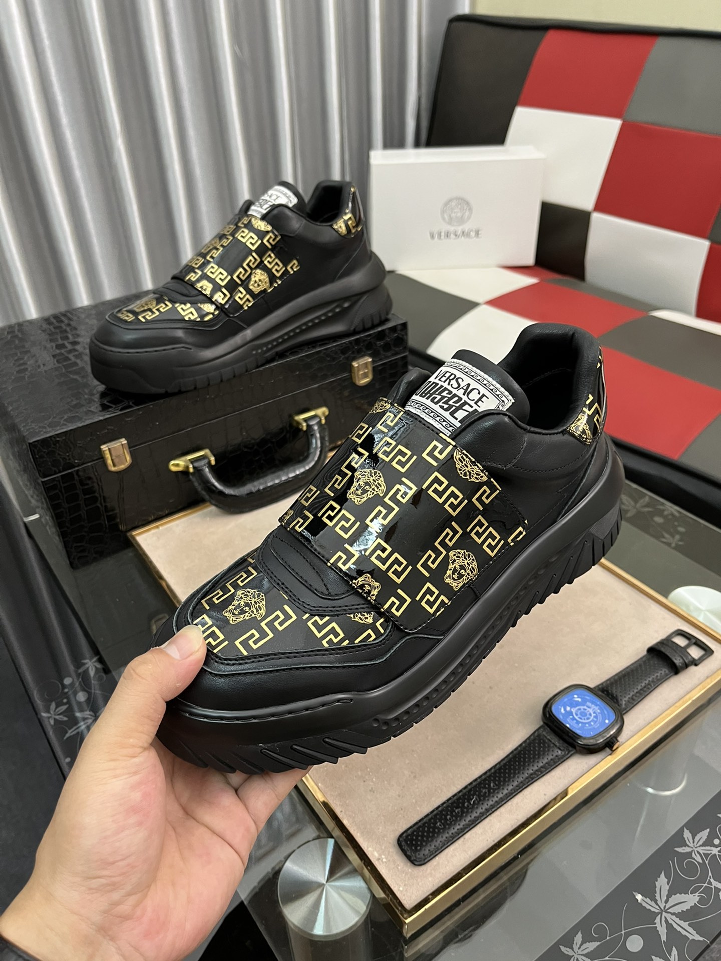 J0 Versace 范思哲 男士高帮最新爆款休闲鞋,顶端品牌奢侈鞋面選用进口牛皮+品牌印花面料,透气真皮内里精细做工.个性时尚耐磨防滑大底,上脚轻巧舒适,實物更好看,38-442色可选