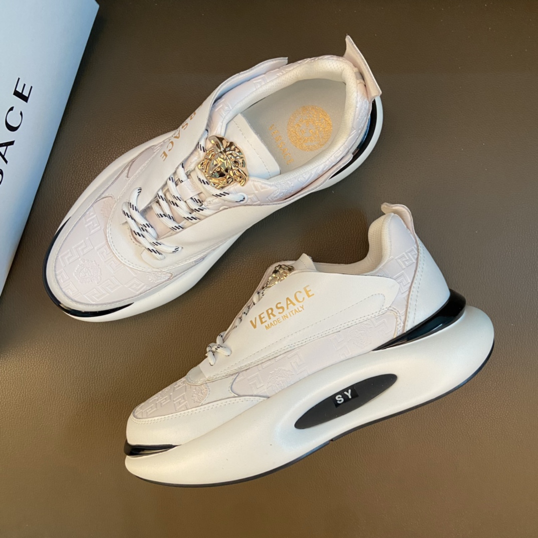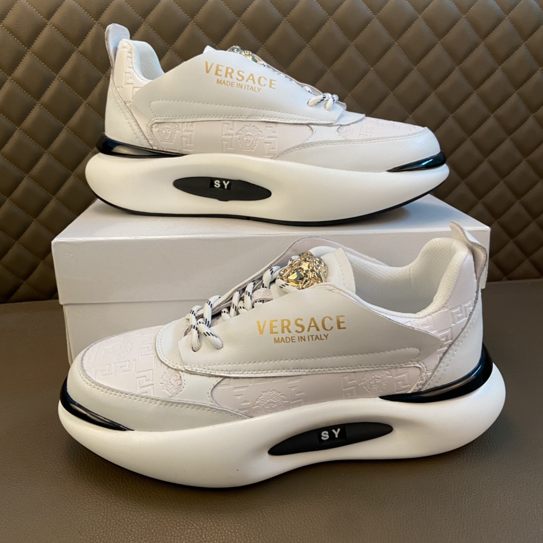 J0 Versace 范思哲 ~独领风骚2022经典低帮懒人款,原版牛皮鞋 霸气LOGO更是重金精心打造 材料:进口头层小牛皮,羊皮内里 欧美大师独特版面设计 完美打造专柜品质,懒人套脚设计 耐磨仿滑原版大底 运动跑步风设计 上脚独特的美,青年乐福款 休闲运动板鞋超级舒服. Versace 范思哲 原版鞋面复刻 英伦范儿 适合司机驾车外出 绝对的焦点 高端 优雅.男鞋码数38-44 45 多色选