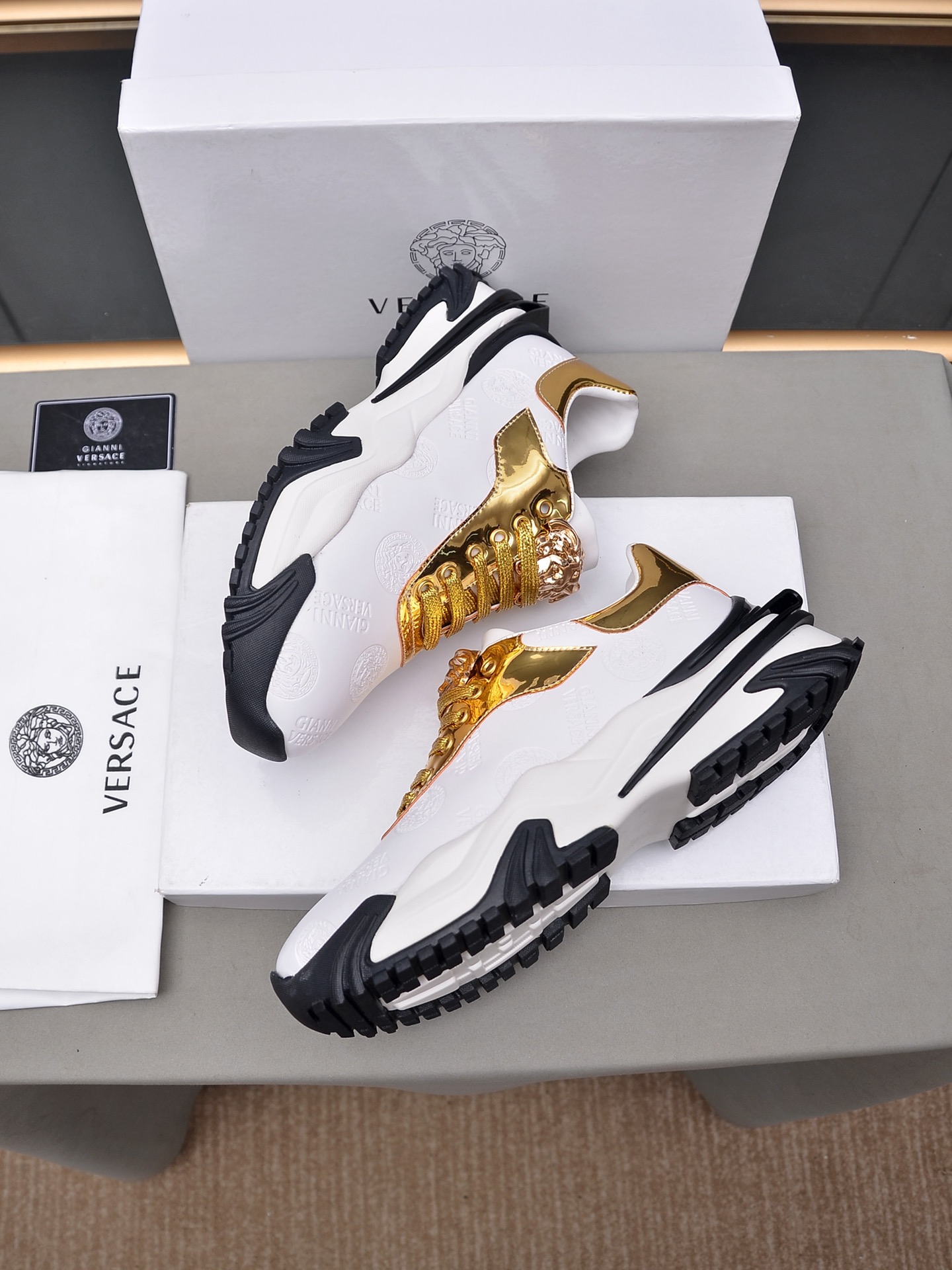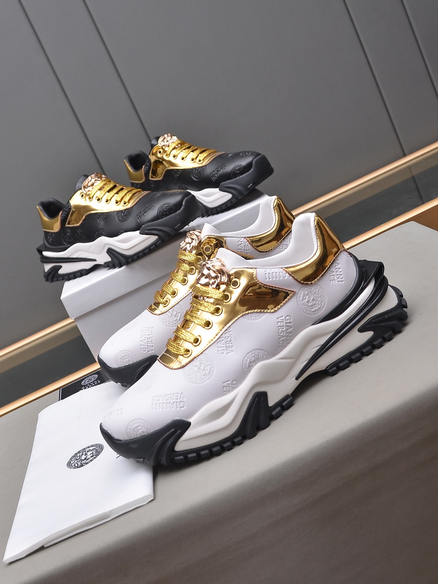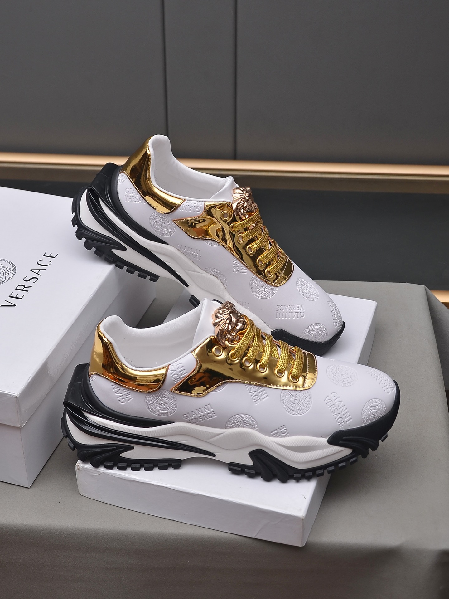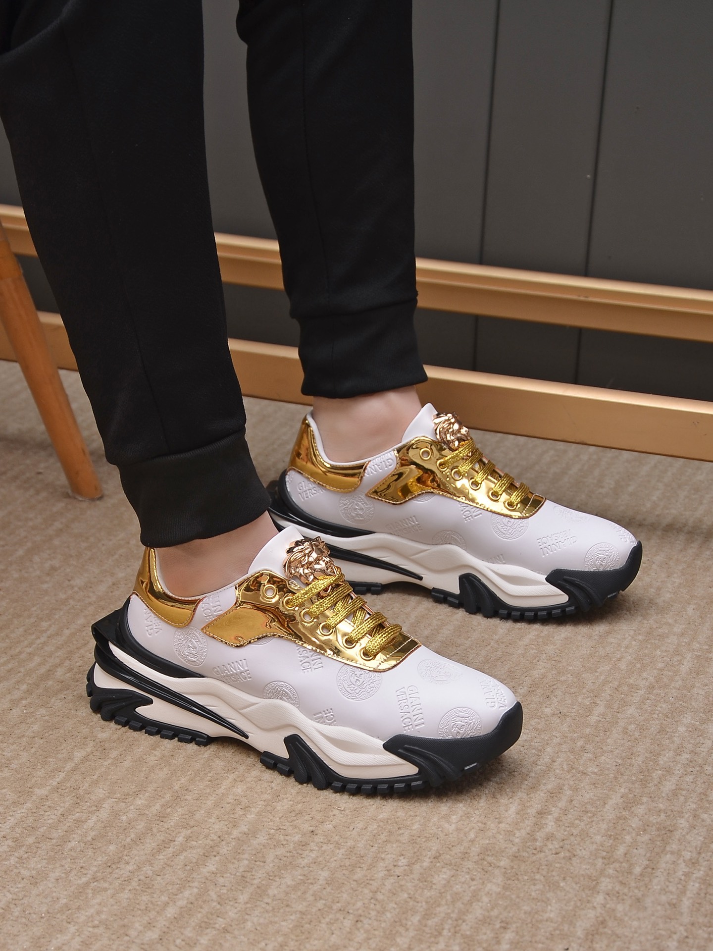 J0 Versace 范思哲 2022 知名运动品牌隆重上市 以奢华高端设计出货 鞋面采用原版弹力布布羊皮垫脚 皮质柔软上,脚绝对舒适橡胶耐磨大底 时尚 高端品质原厂工艺必备款 选码数:38—44码45可定做