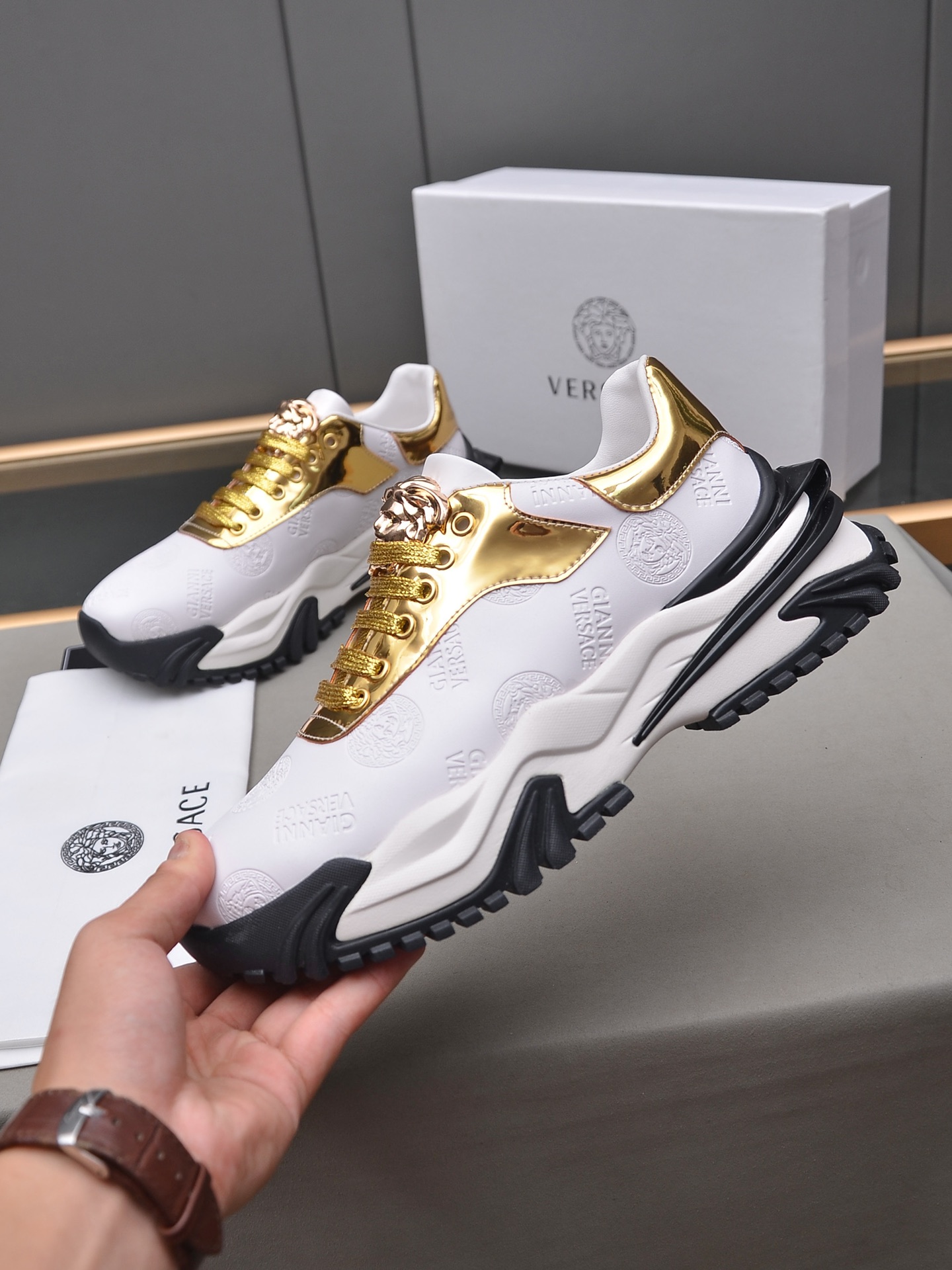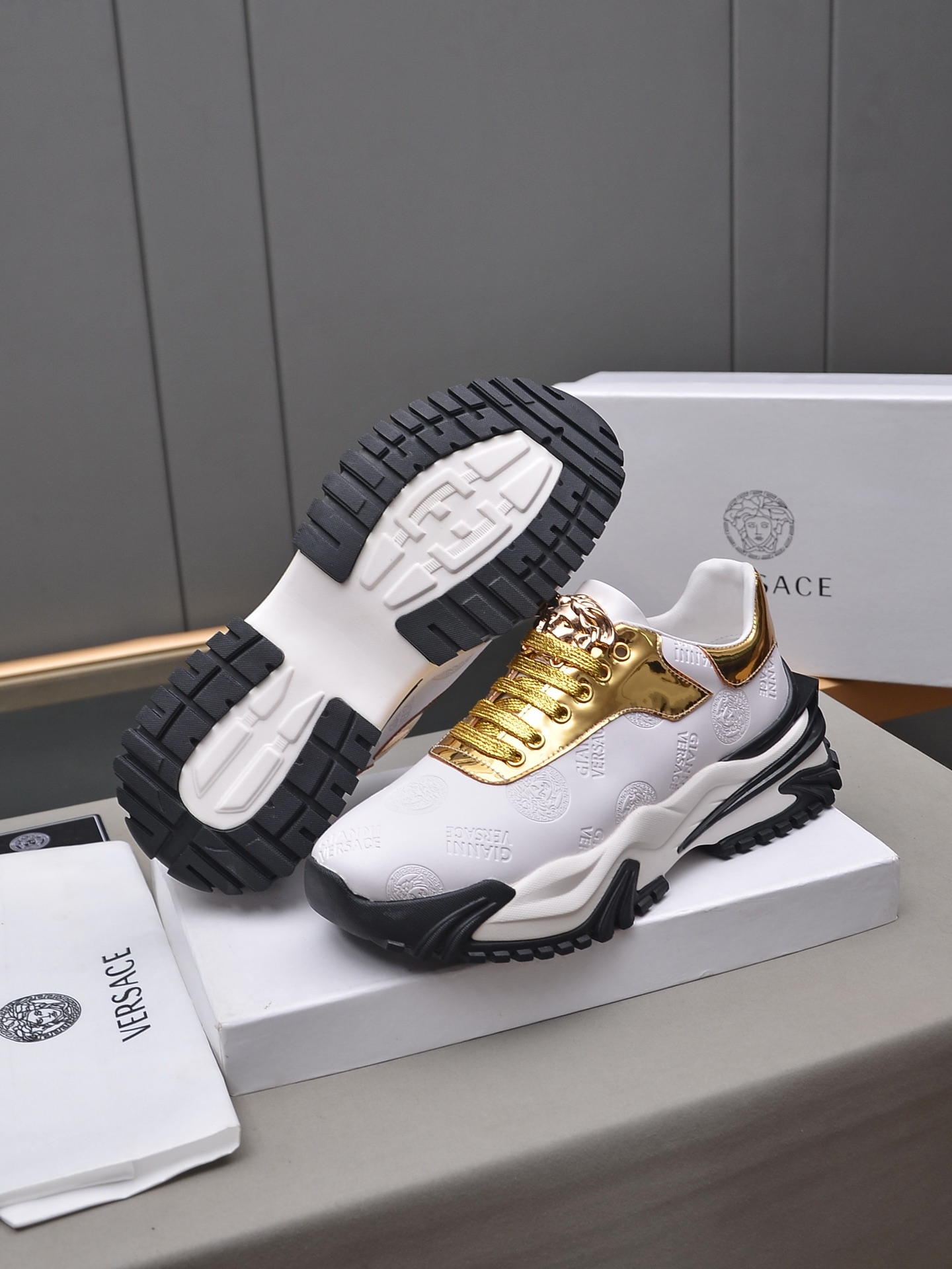 J0 Versace 范思哲 2022 知名运动品牌隆重上市 以奢华高端设计出货 鞋面采用原版弹力布布羊皮垫脚 皮质柔软上,脚绝对舒适橡胶耐磨大底 时尚 高端品质原厂工艺必备款 选码数:38—44码45可定做Whatsapp:+86 13024730673