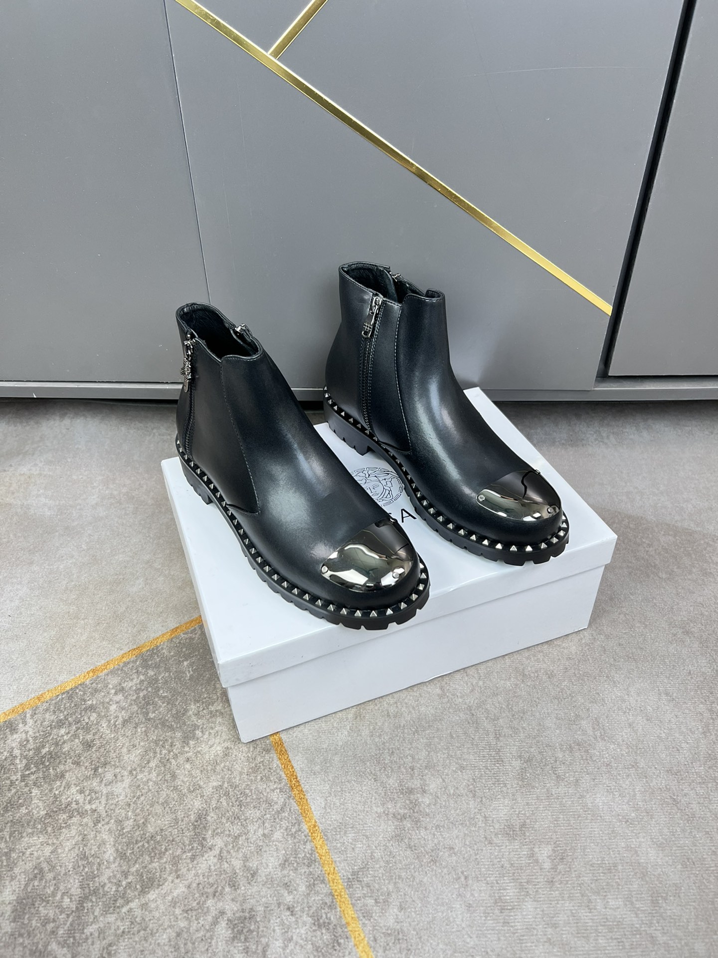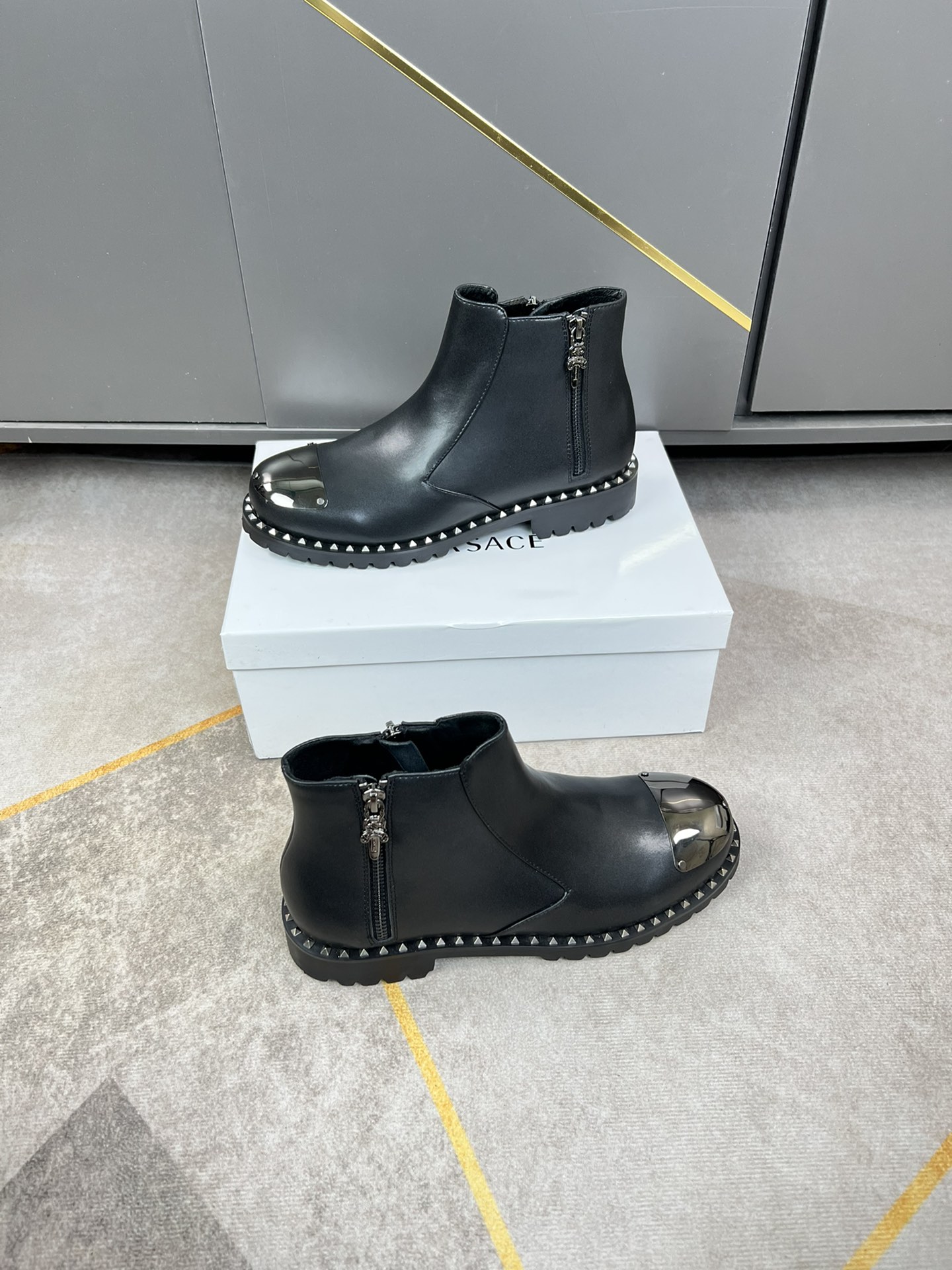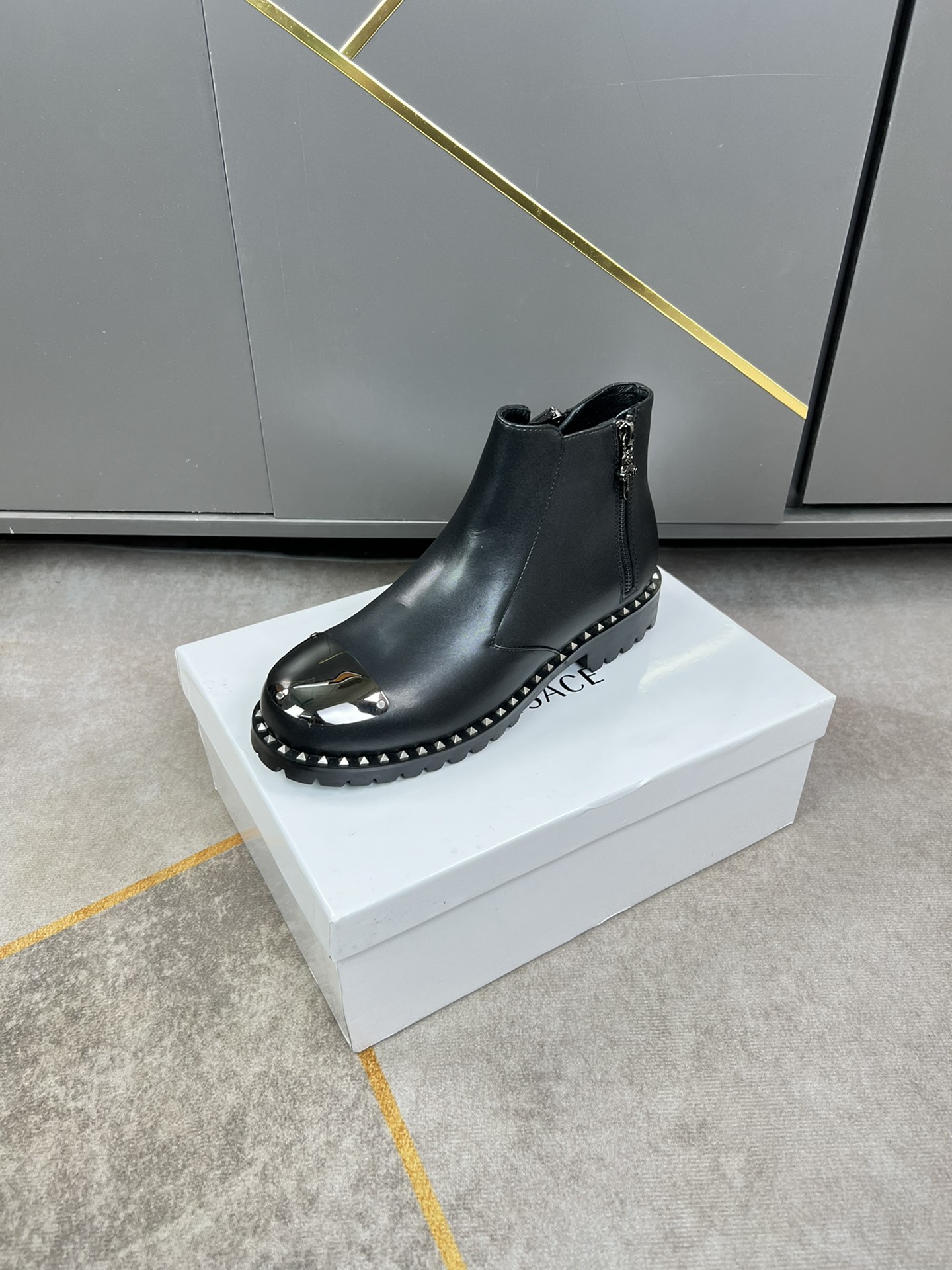 J5 :皮里 毛里可选VERSACE 范思哲 最高帮靴子精心打造,引爆全场不断创新的国际品牌 此款男士高帮靴子,头层牛皮配进口小牛皮,配搭羊皮内里+橡胶防滑大底,透气舒适以质量说话 码数:38-44 黑色可选