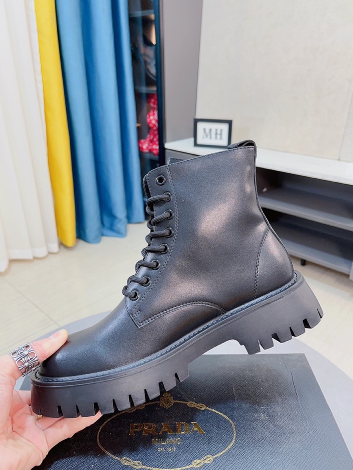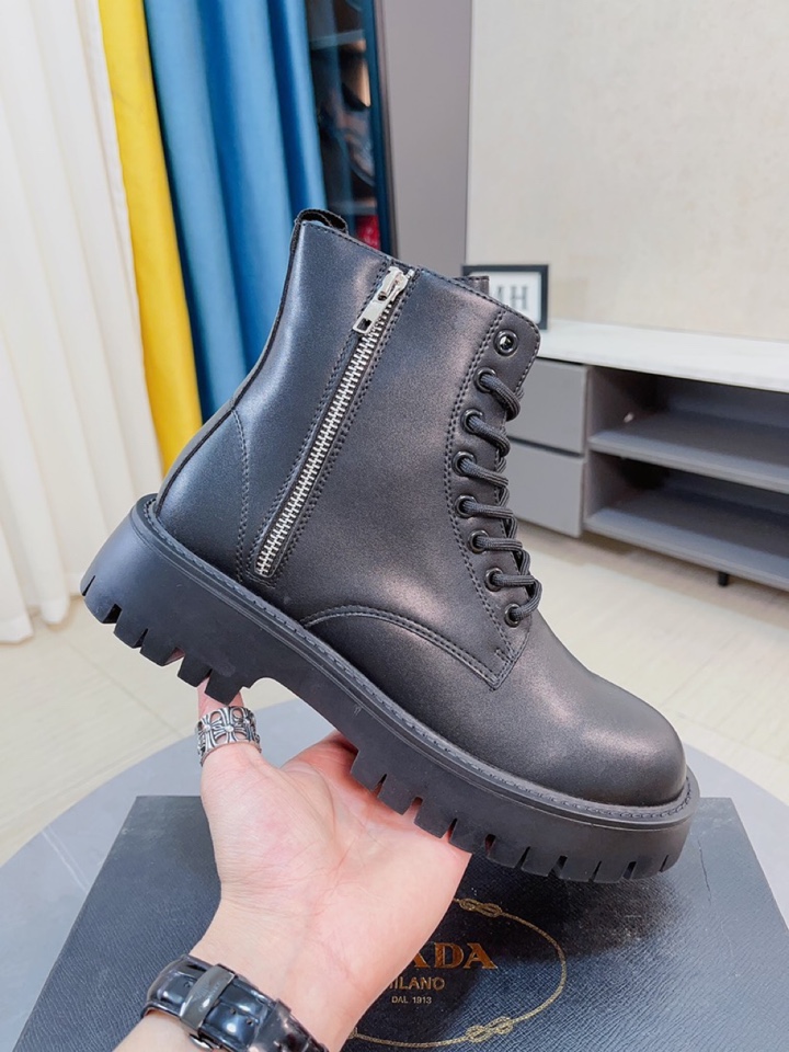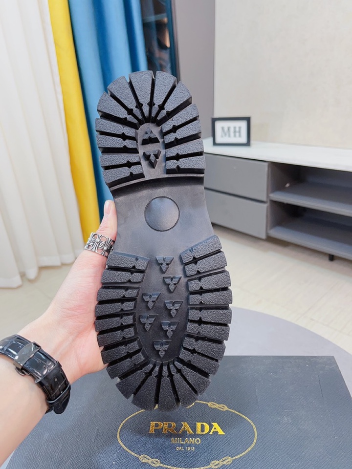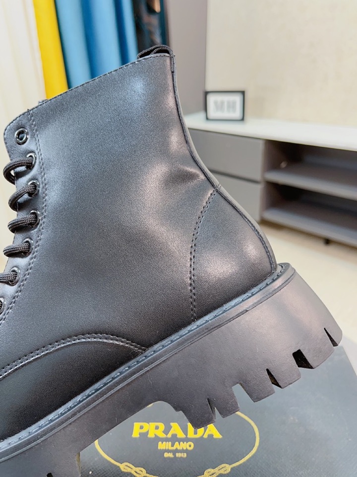 J5 PRADA可上淘宝 Prada 普拉达 潮男必备高帮靴 浓郁的欧洲时尚气息 大气的鞋楦 屌爆了 高端品质 全进口牛皮擦色 皮质柔软 全真皮内里脚感舒适 轻量化橡胶大底厚而舒适 38-44