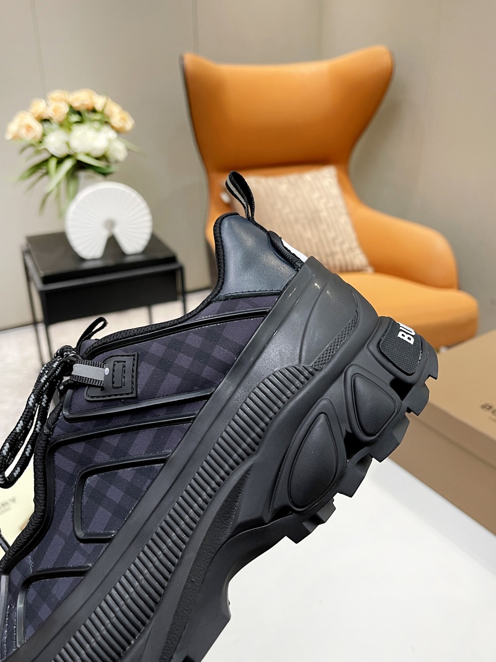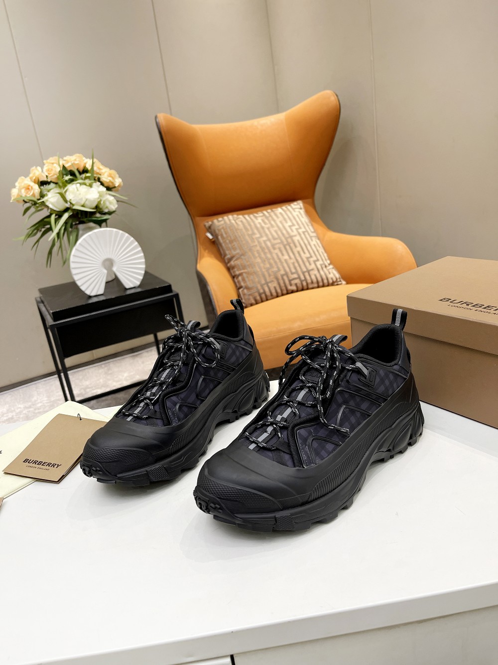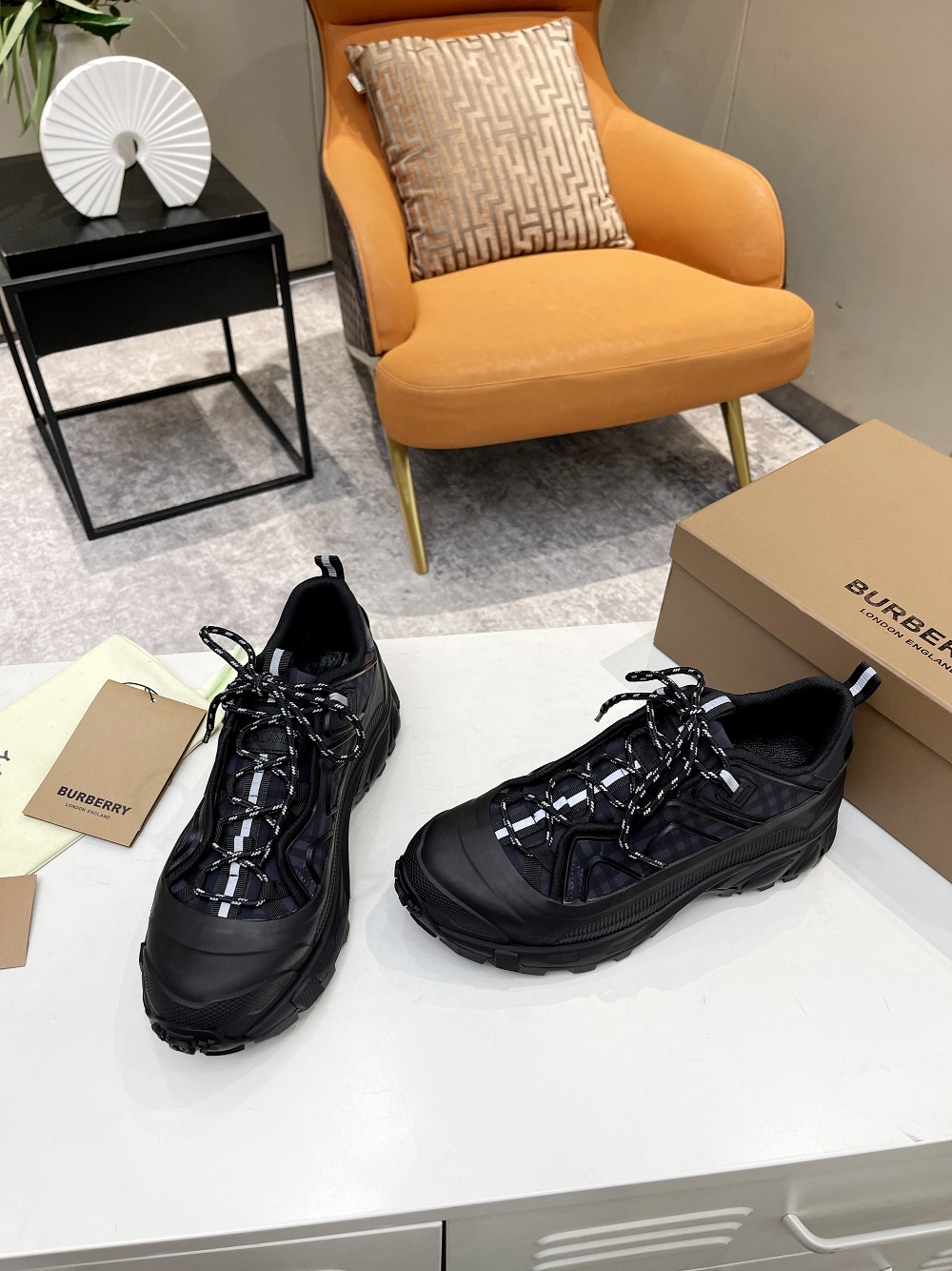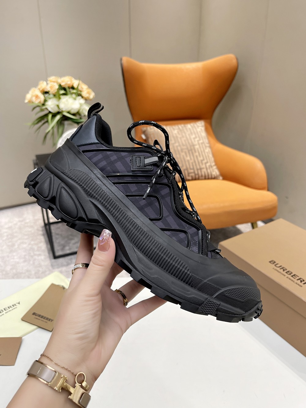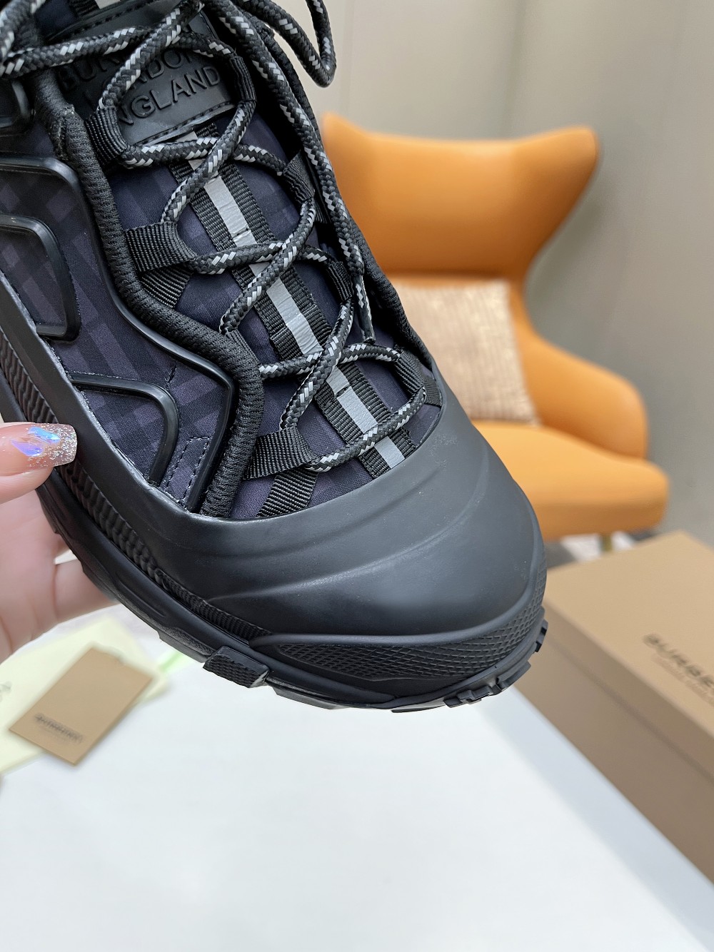 K5 Burberry 巴宝莉高版本经典运动鞋爆款,由 Vintage 复古格纹棉质面料打造 ,搭配滚边及品牌徽标贴花.围覆以雨靴灵感的亮泽外缘设计,鞋底的交叉细节汲取品牌标志性格纹的设计灵感 面料:丝绸牛皮 内里:原板网里+绵羊皮 大底:3层组合TPU哑光 颜色:深灰色 码数:男款39-4539,45定制 包装:原板包装