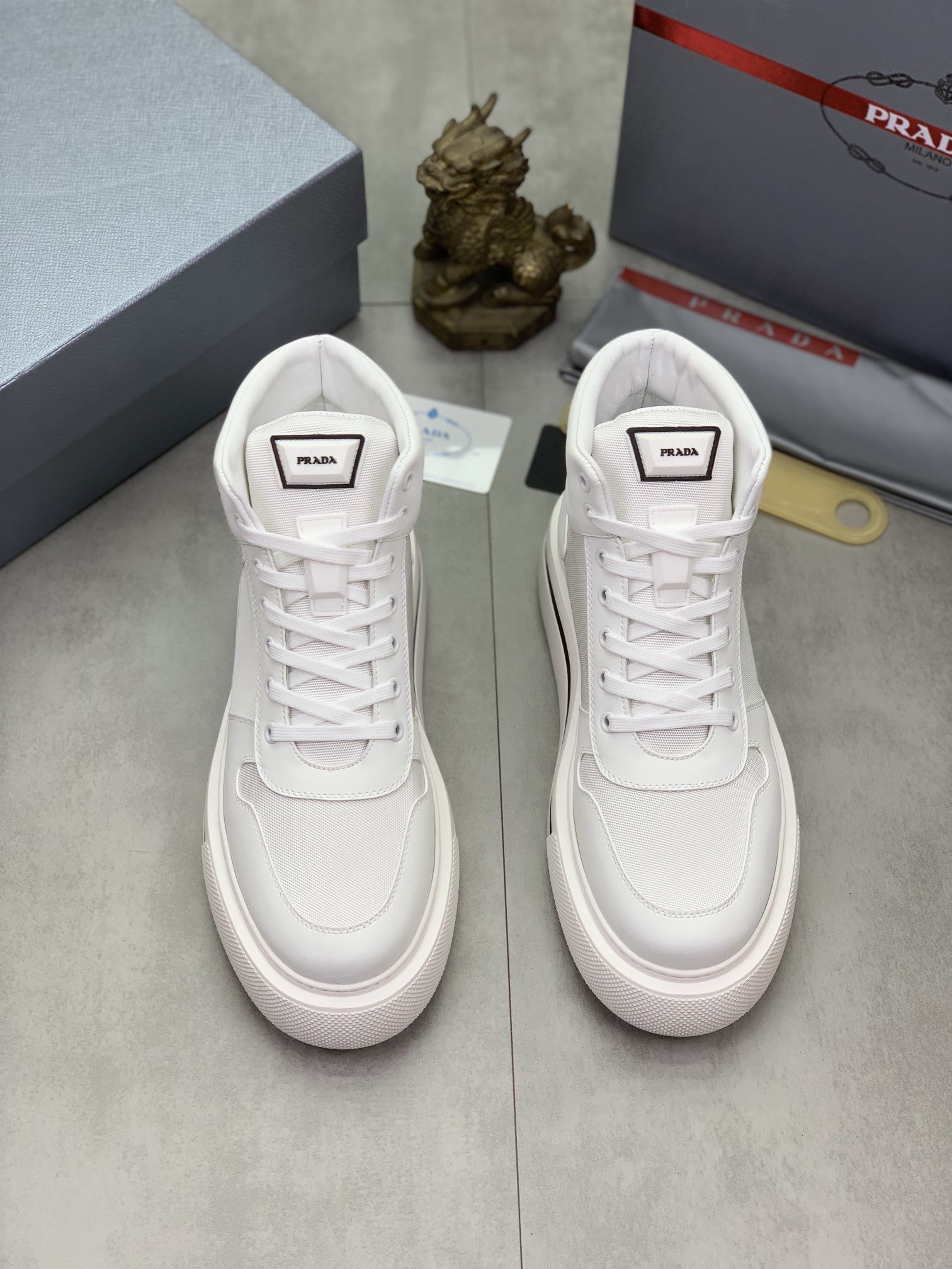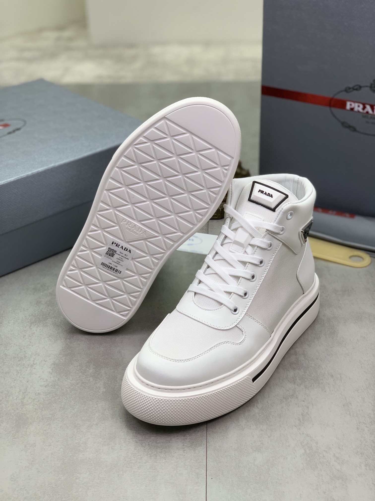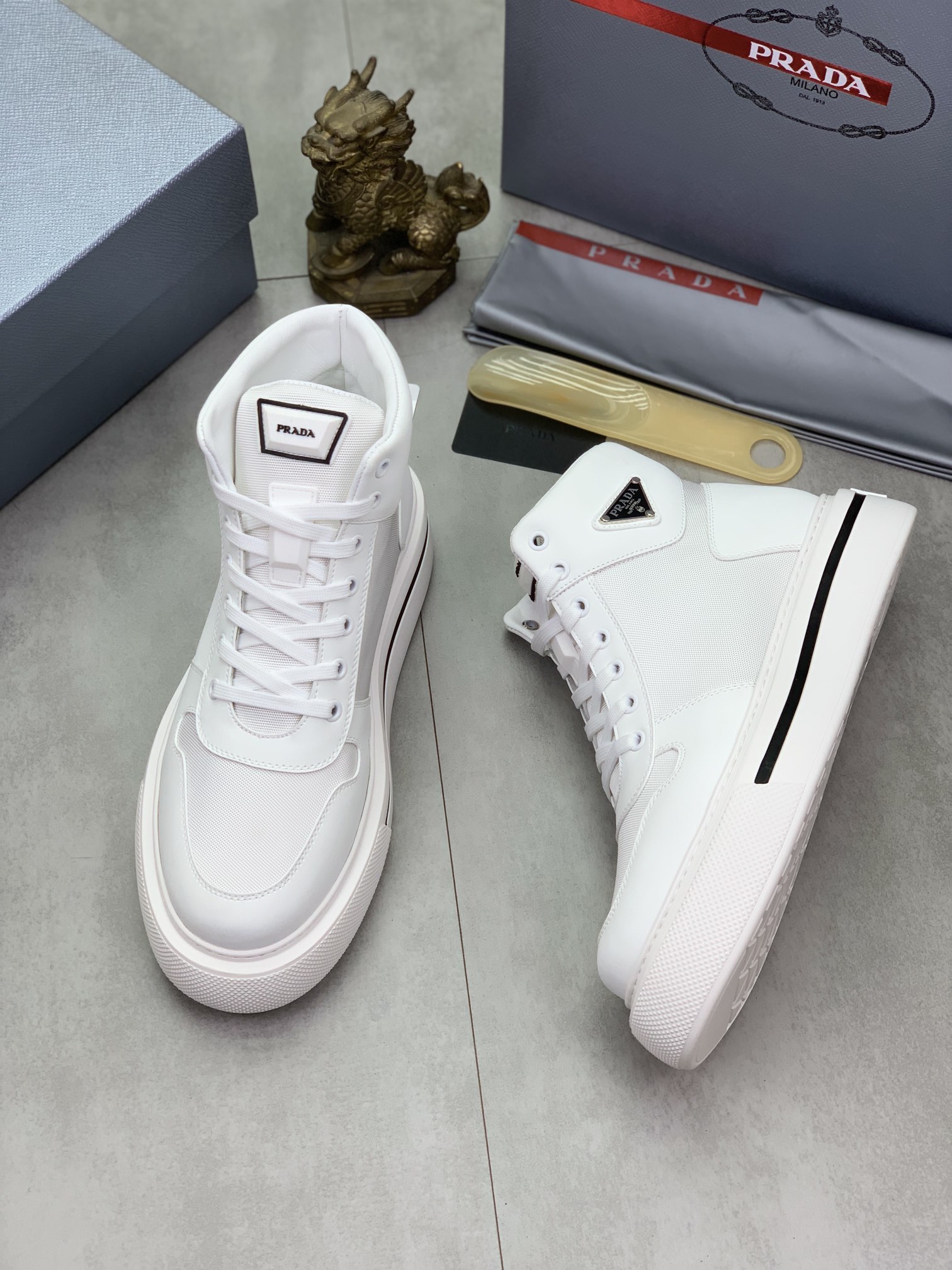 L5 高品质牛里Prada 普拉达 高帮男鞋官网最上市了1:1复制,香港专柜同步,走秀同台;全部采用进口牛皮配原版材质进口透气面牛皮内里、橡胶大底原版1:1防滑耐磨;着脚舒适、款式耐看,做工精细,配以简洁利落的鞋楦,彰显男人的果敢和硬朗,码数38一44;3色选