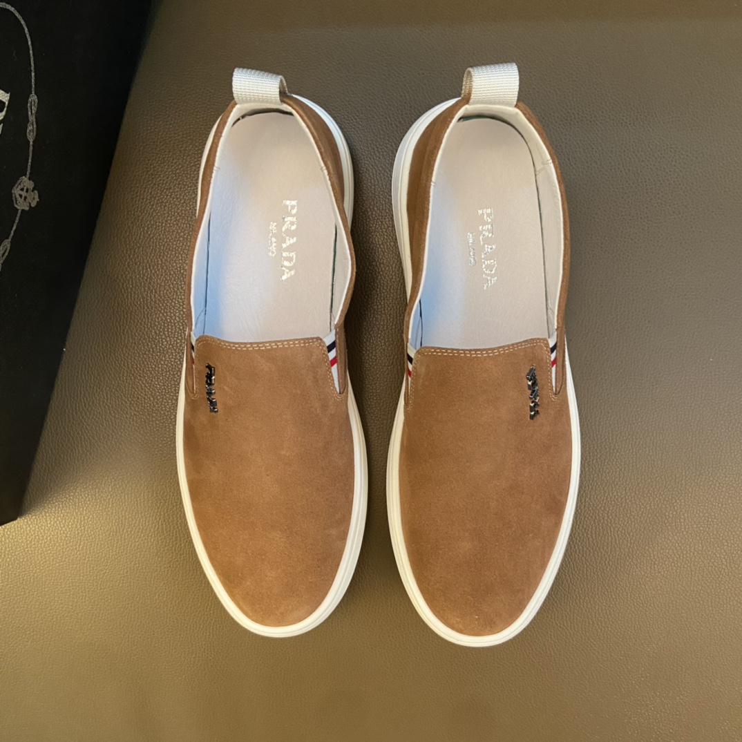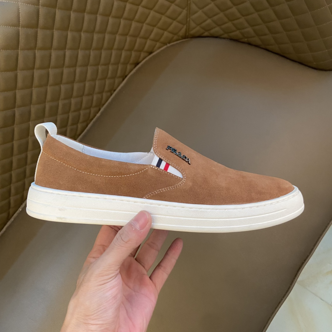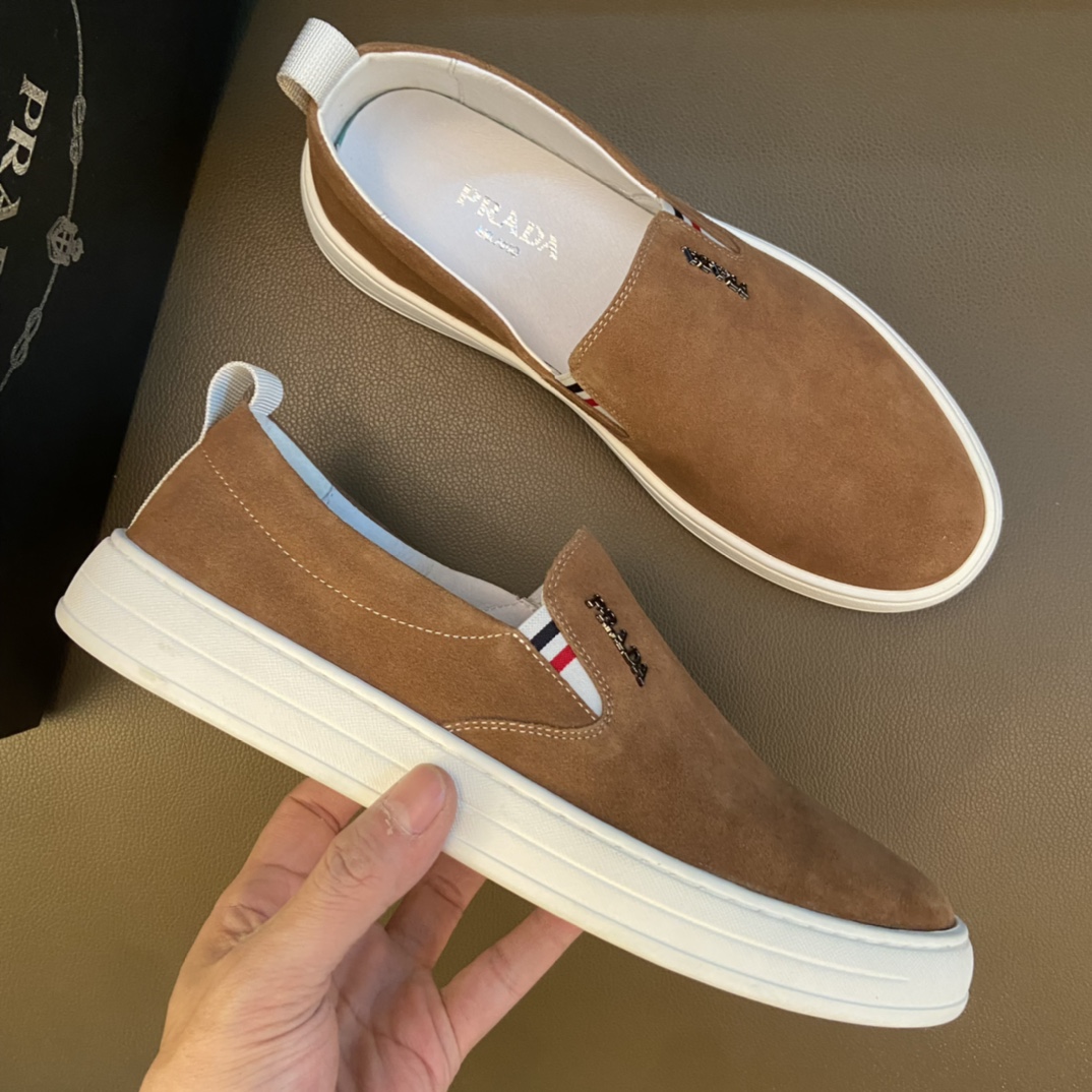 Prada 普拉达 ~独特现代风运动鞋.专柜代购休闲鞋 男士2022专柜同步发售,意大利进口原版品牌精选头柔软磨砂牛皮 拒绝脱色磨脚鞋底:原厂特供原版底, 超酷 法国懒人风格设计 懒人套脚套脚 原单品质 超舒服原版底 . 适合户外司机驾车完美 ,男鞋码数:38-44 45码可定做 黑色 蓝色 棕色 选长期供实体店补货
