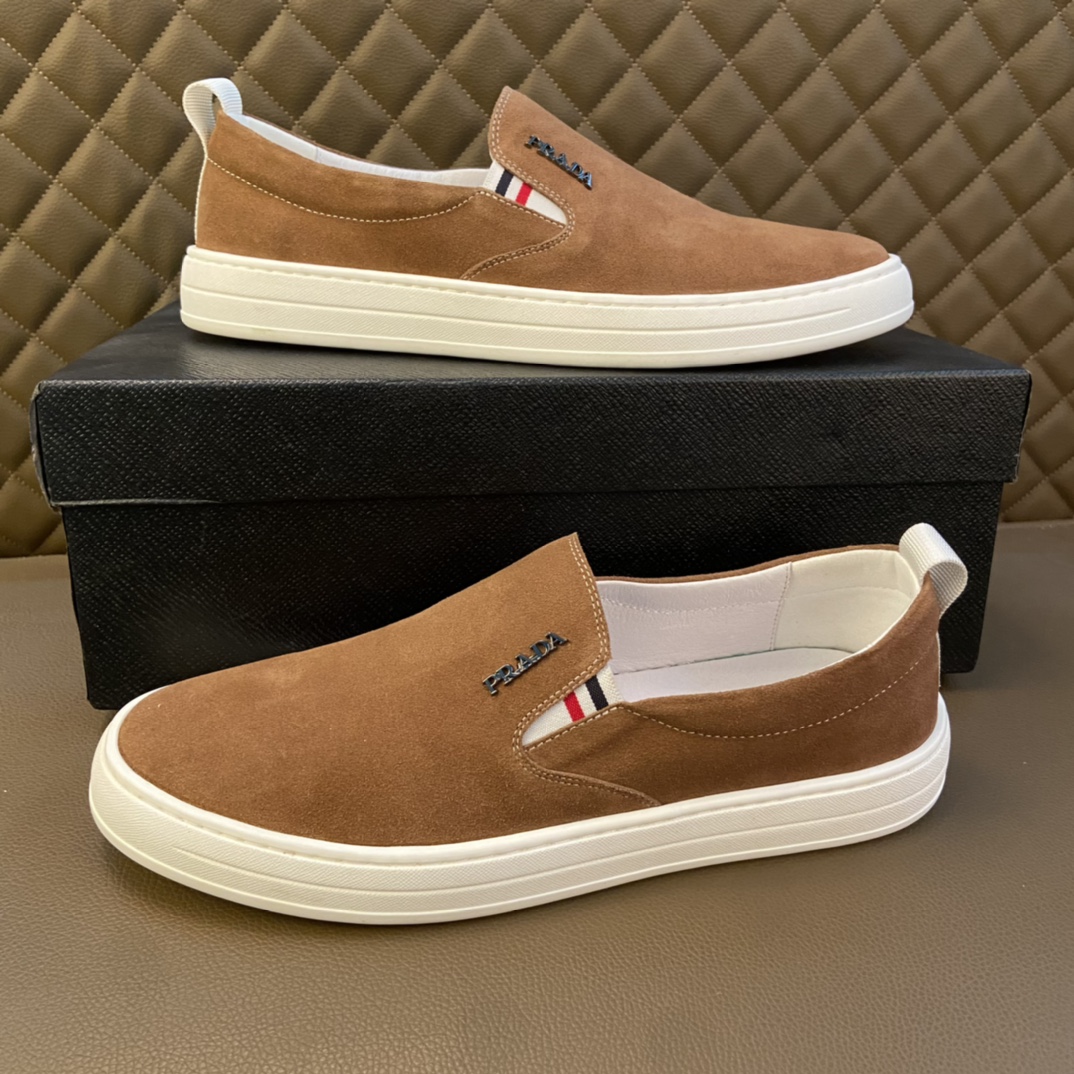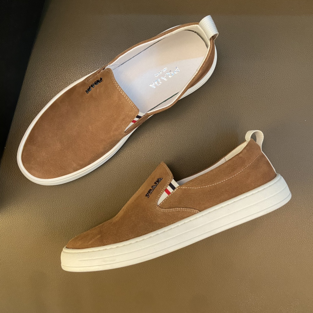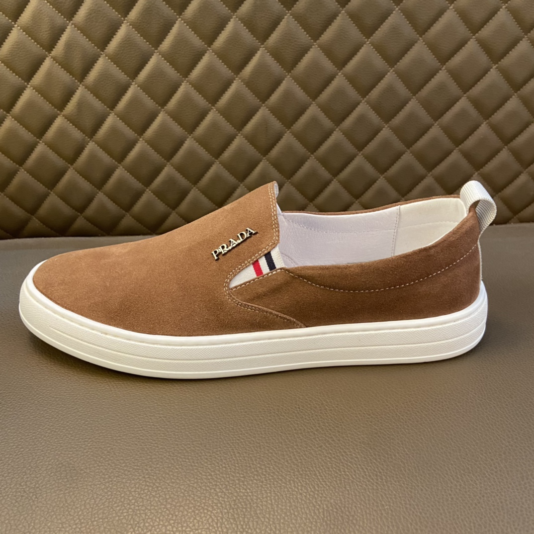 Prada 普拉达 ~独特现代风运动鞋.专柜代购休闲鞋 男士2022专柜同步发售,意大利进口原版品牌精选头柔软磨砂牛皮 拒绝脱色磨脚鞋底:原厂特供原版底, 超酷 法国懒人风格设计 懒人套脚套脚 原单品质 超舒服原版底 . 适合户外司机驾车完美 ,男鞋码数:38-44 45码可定做 黑色 蓝色 棕色 选长期供实体店补货