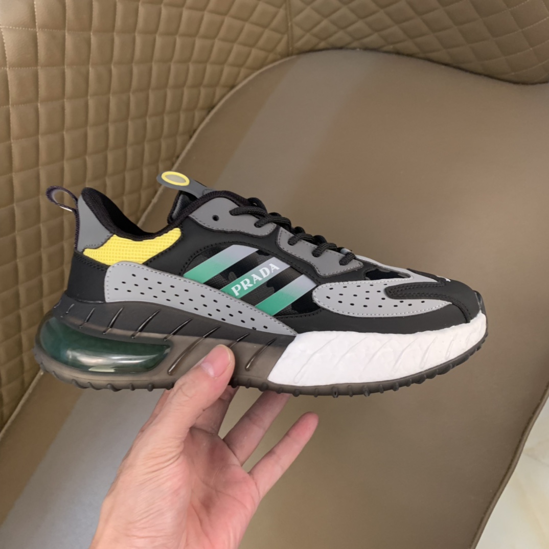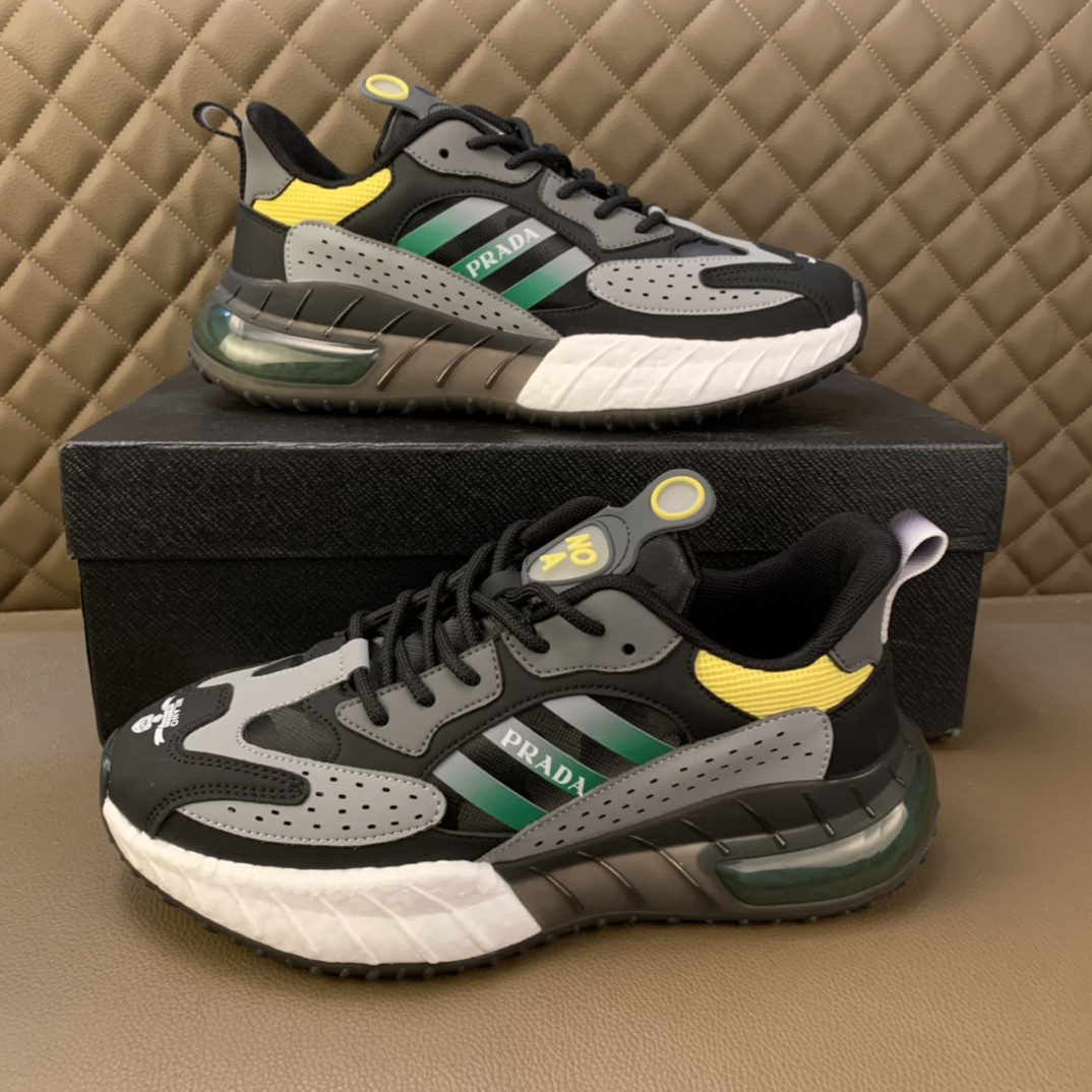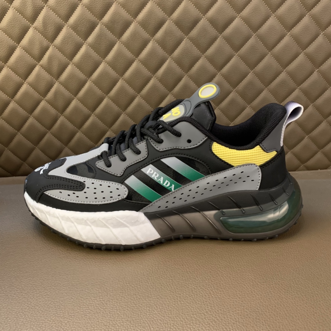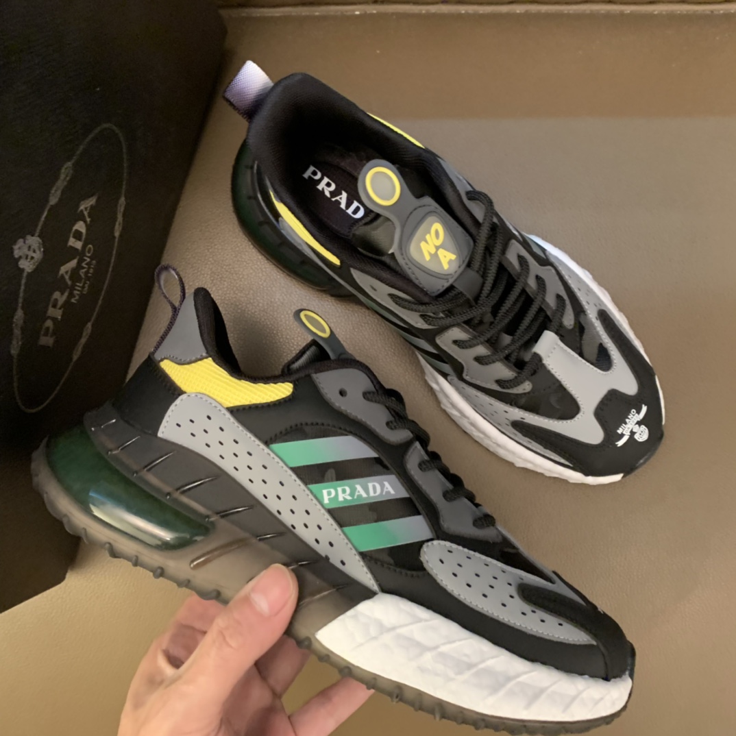 Prada 普拉达 ~独特现代风运动鞋.专柜代购休闲鞋 男士2022专柜同步发售,意大利进口原版品牌精选原版材料 原版内里拒绝脱色磨脚鞋底:原厂特供原版底, 超酷 法国懒人风格设计 懒人套脚套脚 原单品质 超舒服原版底 . 适合户外司机驾车完美男鞋码数:38-44 45码可定做黑色 颜色选 长期供实体店