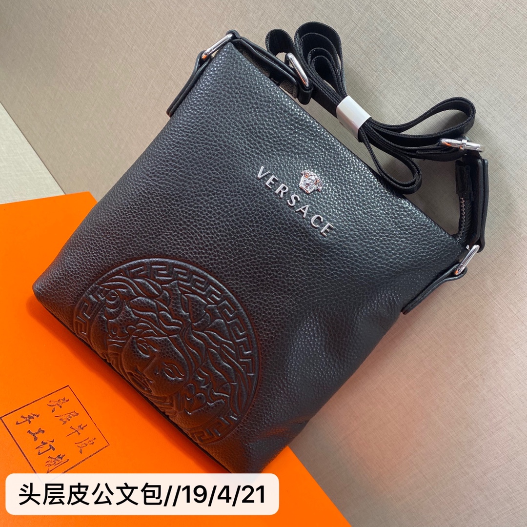 头层皮质组合礼盒包装Versace 范思哲 腰带+俩款包包超级组合 实用公文包包是很合适的选择.强烈推荐这款手提包日常是非常. 双扣皮带:头层皮质带身搭配3.8cm仿铜扣头 尺寸范思哲公文包:长19宽4高21\r 范思哲手提包:长25宽2高16