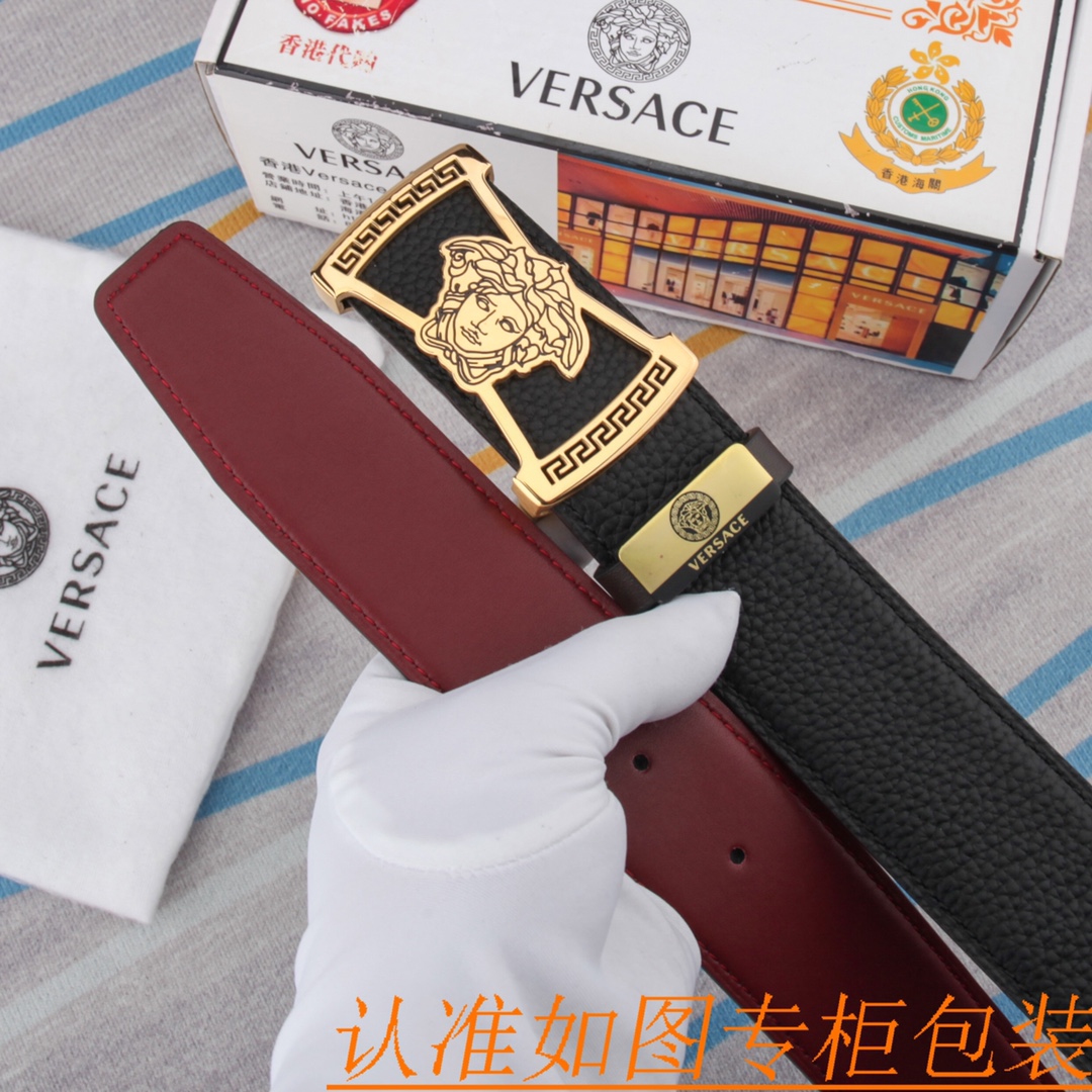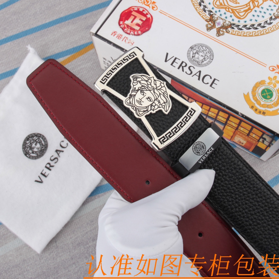 腰带皮带:范思哲原单牛皮腰带· 男款皮带:材质百分百头层牛皮腰带保证真皮皮带,专柜原单品质、做工精细,时尚大牌,送人自用首选包装请认准如图专柜包装赠送打孔器手提袋专柜礼盒宽度3.8CMWhatsapp:+86 13024730673