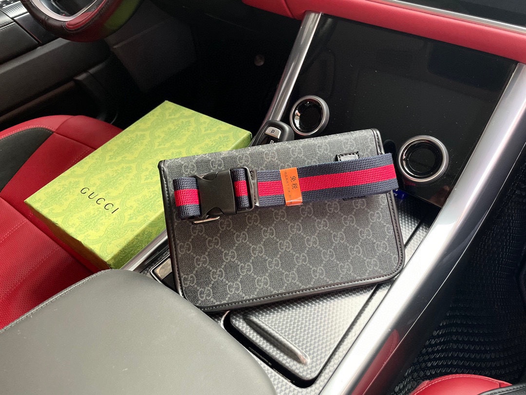 G5 高端货 “GUCCI古奇”胸包款号598113 K5RLN 10这款线条简洁的腰包饰有正面拉链口袋细节黑灰配色的GG图案彰显现代时尚气息可调节红蓝尼龙腰带为整款设计注入更多丰富内涵GG Supreme高级人造帆布,环保材料,配黑色皮革滚边红蓝织带绑带,配搭扣Gucci商标皮革标牌细节磁力翻盖扣尺寸:24/16/3.5.配:礼盒