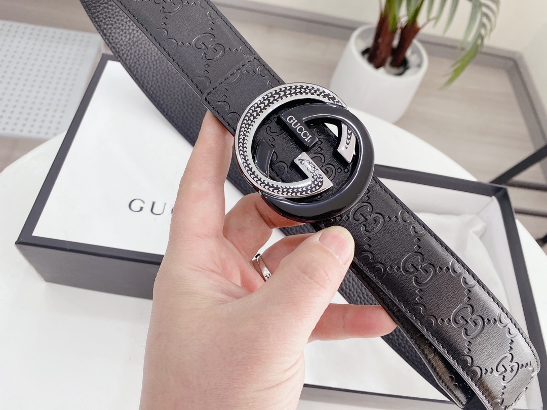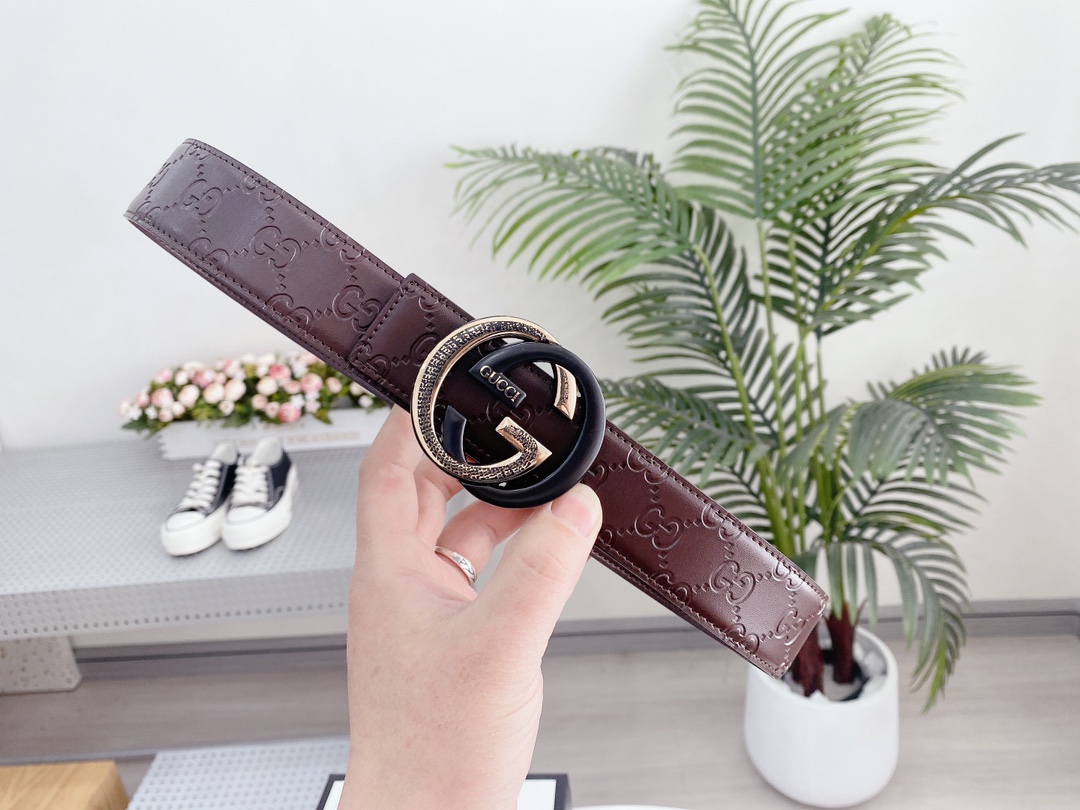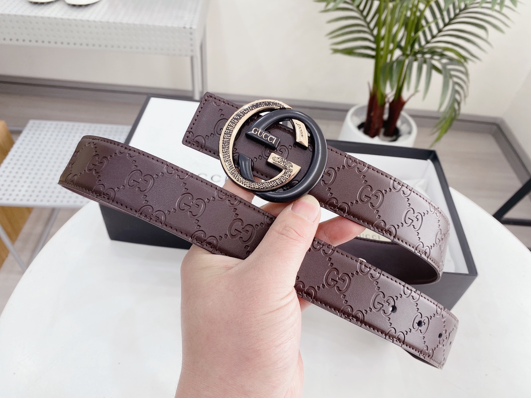 G5 Gucci 男女通用款 古奇互扣式G带扣深受品牌辉煌的70年代经典设计所影响,得以重新诠释.安放于织纹纯皮腰带之上.正品一致的吊牌全套包装 配纸袋 礼品盒 亲们下单一定备注腰围 尺码宽度3.8cm 纯牛皮制作
