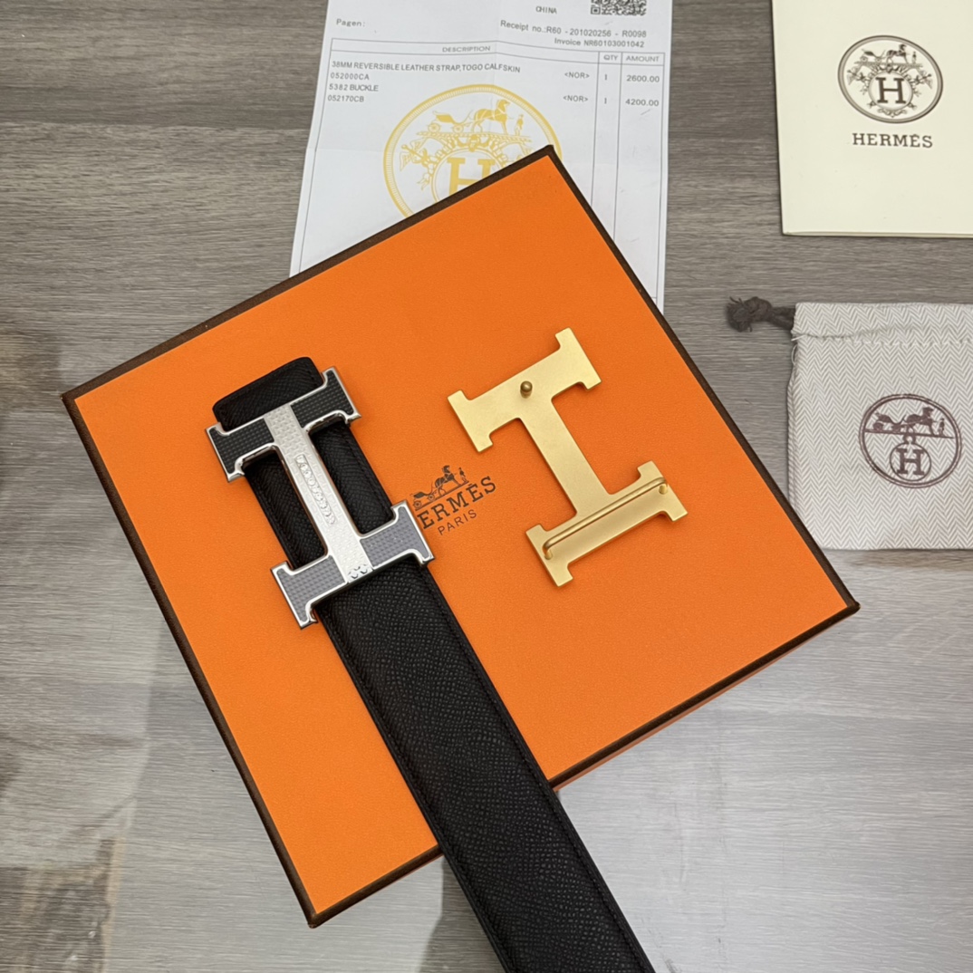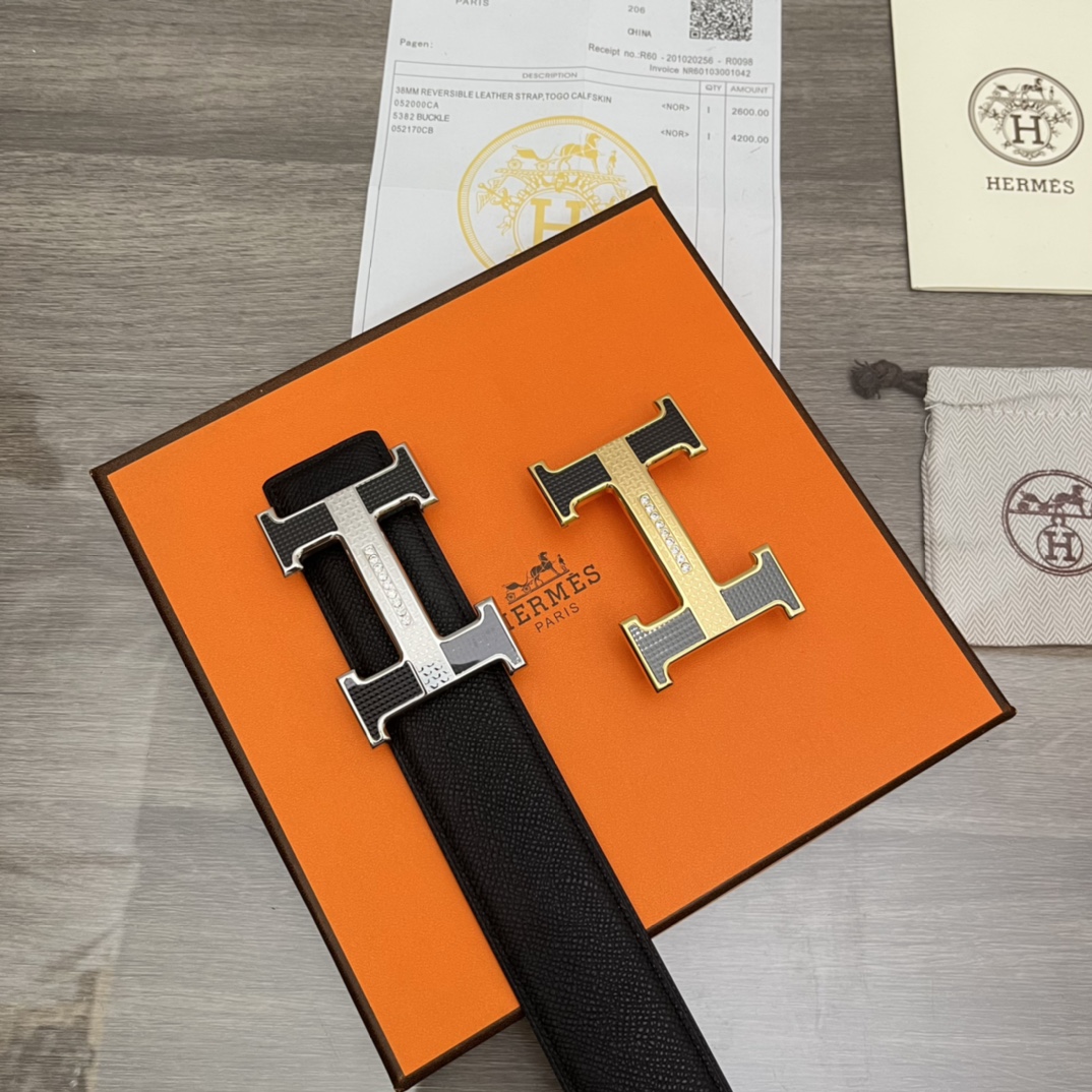 Hermes 爱玛仕 原单皮带腰带:专柜质量、百分百头层牛皮、24k纯钢扣、送人自用首选、保证真皮 包装:请认准图片专柜包装、送打孔器 全套包装 宽度:3.8cm 长度:国标cm-cm 不可以自行裁剪长度