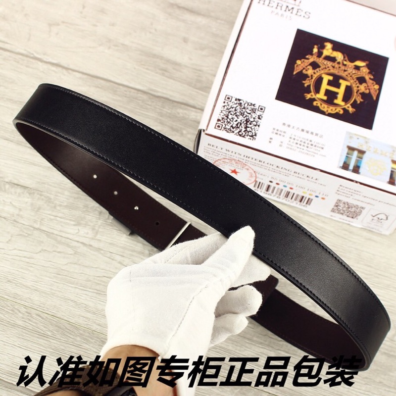 Hermes 爱玛仕 双面用 赠送打孔器 材料:百分百头层牛皮皮带,一面黑色,一面咖啡色,随意搭配,双面可用保证真皮.专柜同等质量, 送人自用首选 包装请认准如图专柜包装,发票齐全,宽度3.8mm