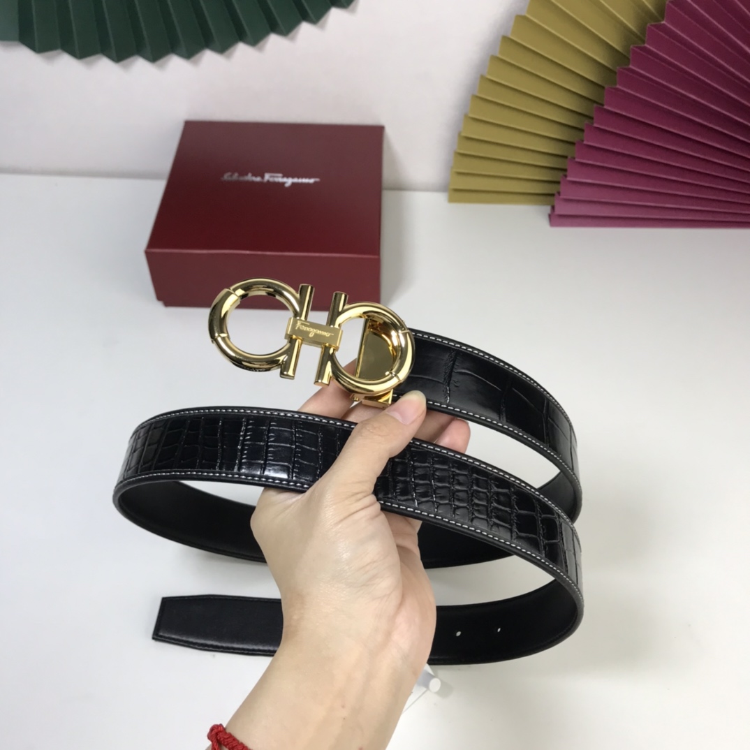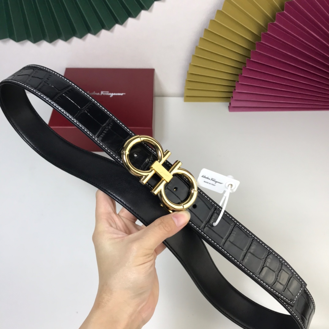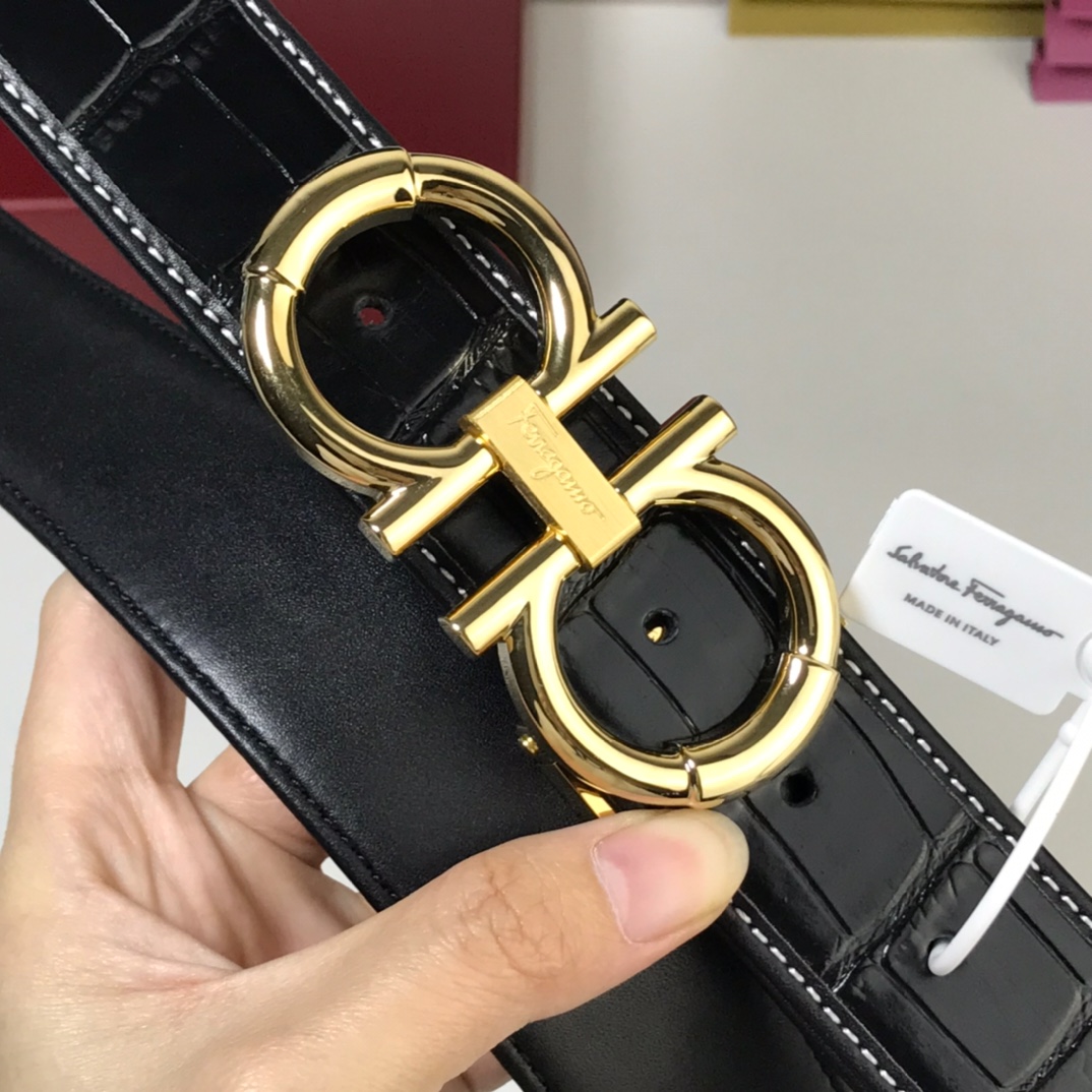 I0 菲拉格慕 男士腰带 配全套包装礼盒 20203.5厘米宽 意大利进口牛皮 鳄鱼纹 带身包边设计 顶级制作工艺 高端大气 五金真空电镀 超靓配色 可裁剪Whatsapp:+86 13024730673
