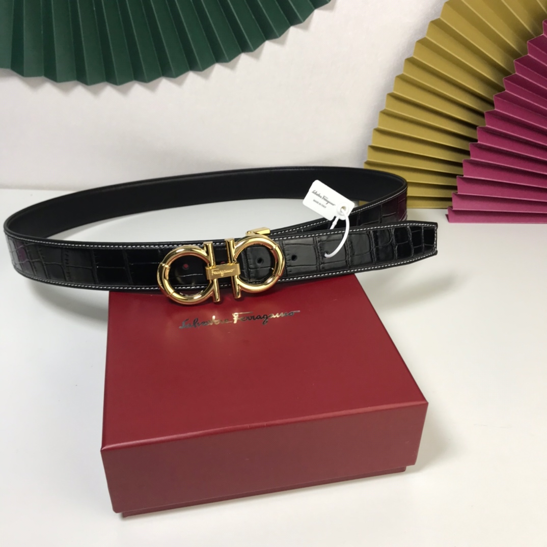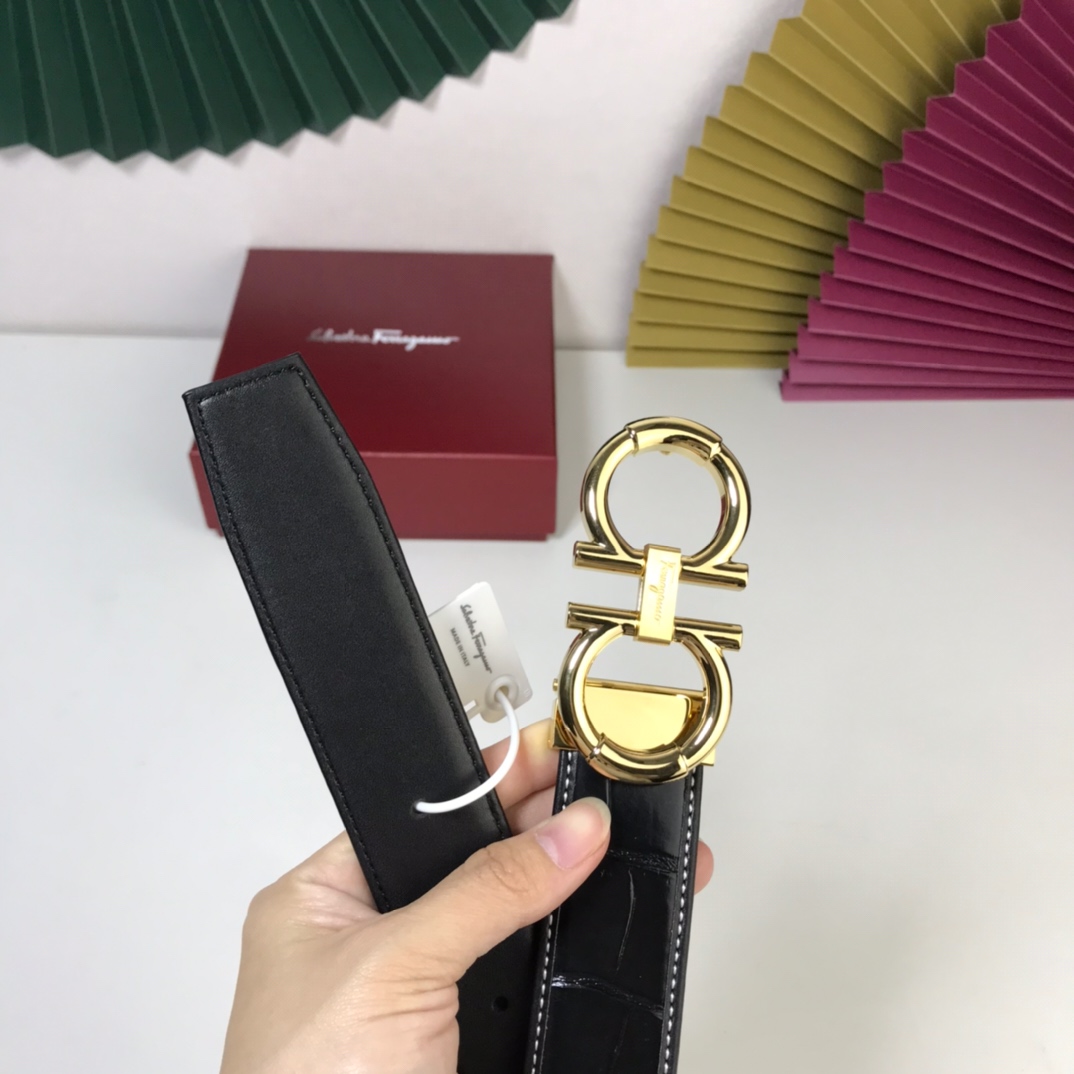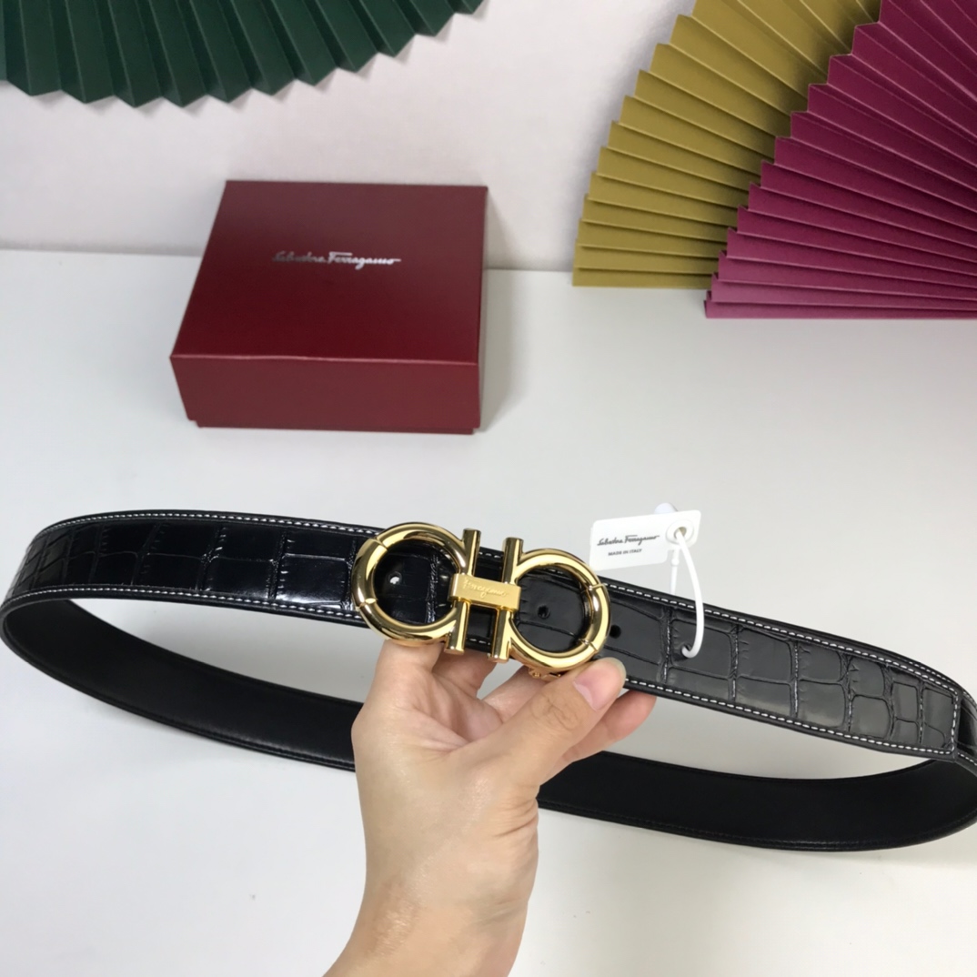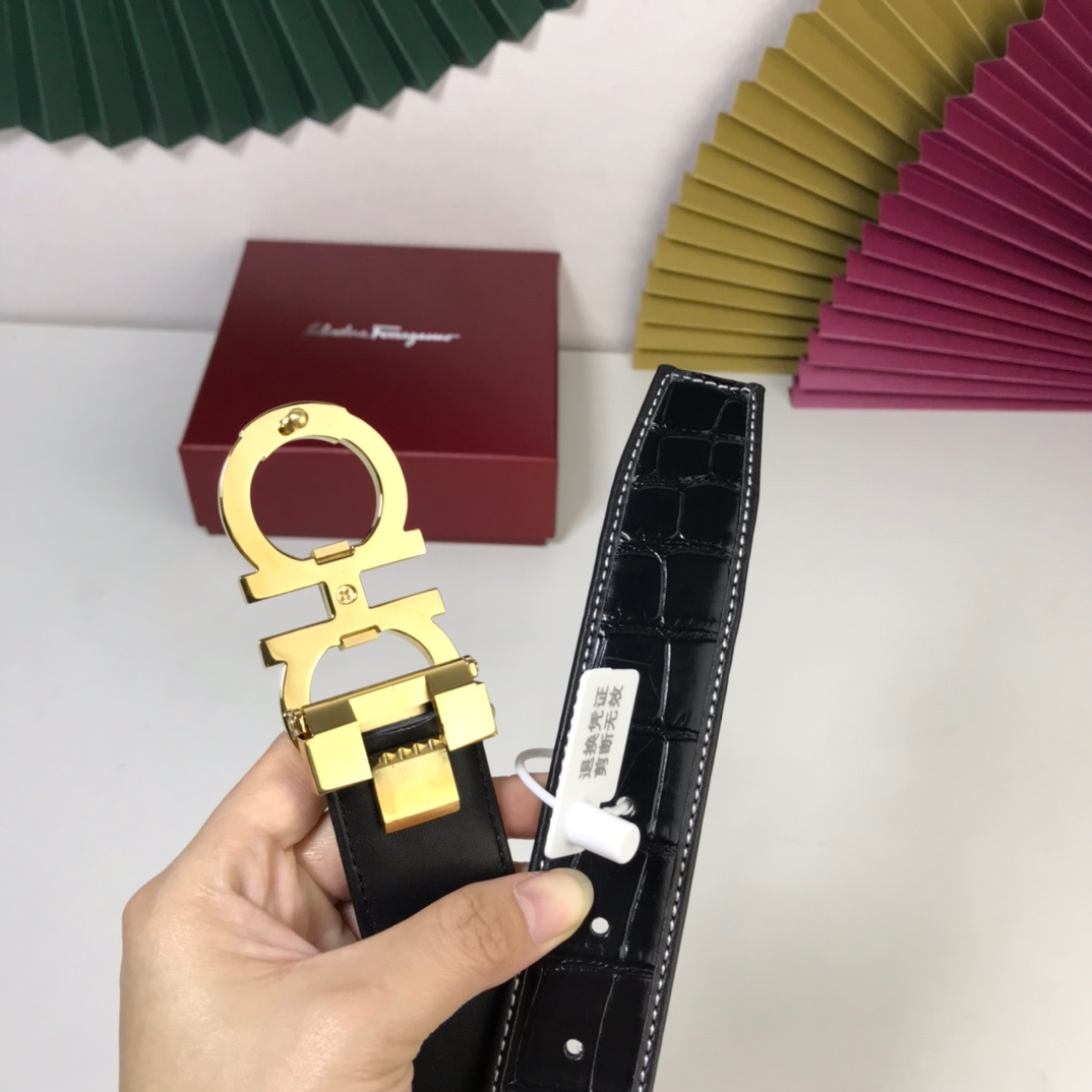 I0 菲拉格慕 男士腰带 配全套包装礼盒 20203.5厘米宽 意大利进口牛皮 鳄鱼纹 带身包边设计 顶级制作工艺 高端大气 五金真空电镀 超靓配色 可裁剪Whatsapp:+86 13024730673