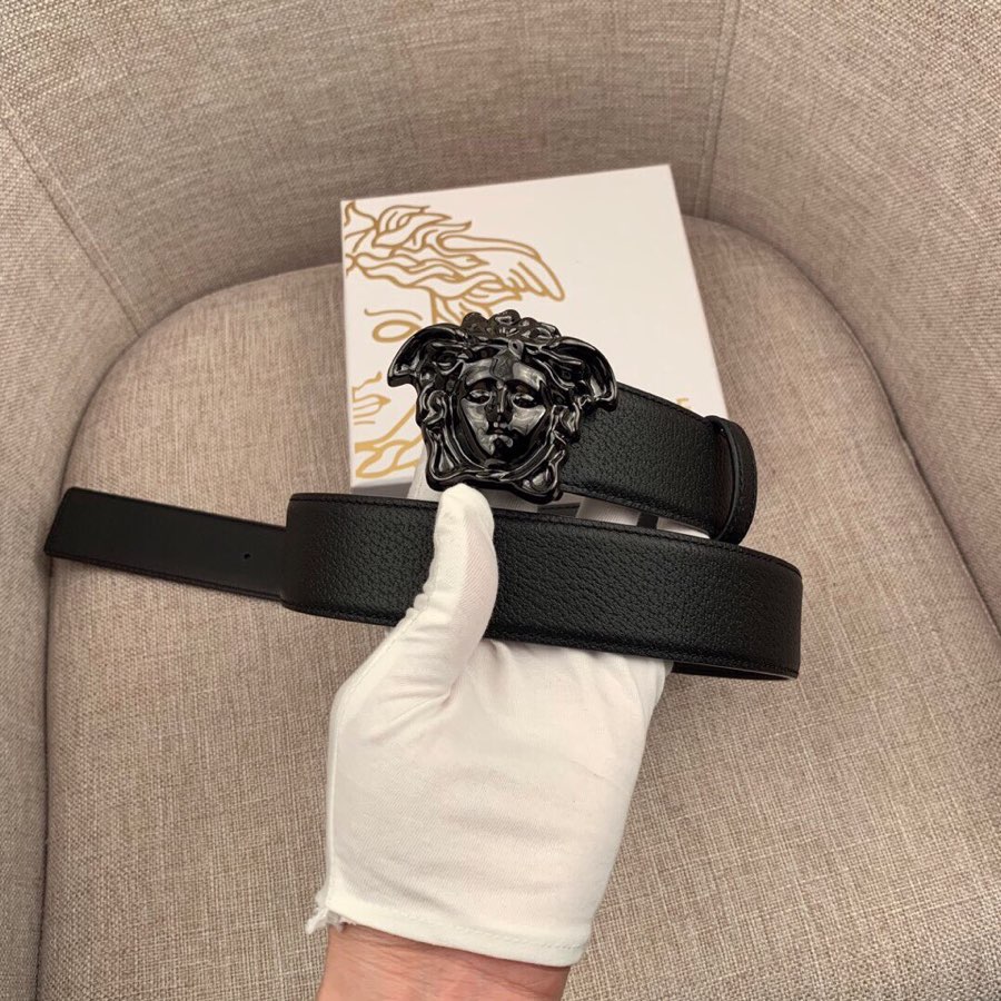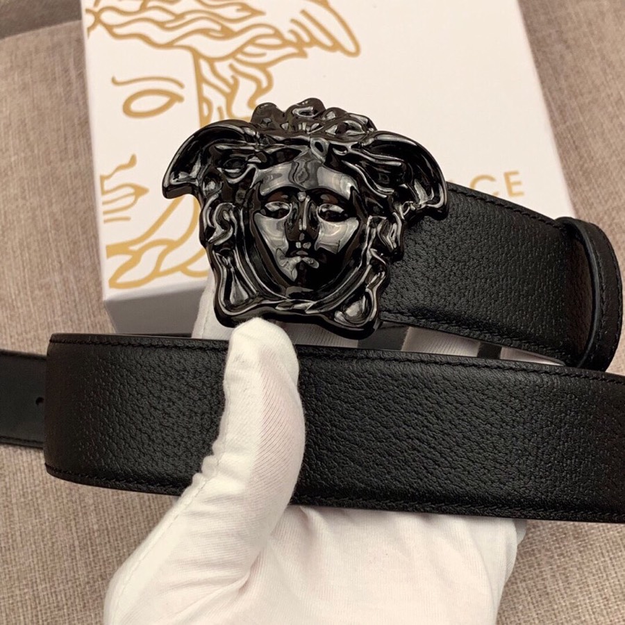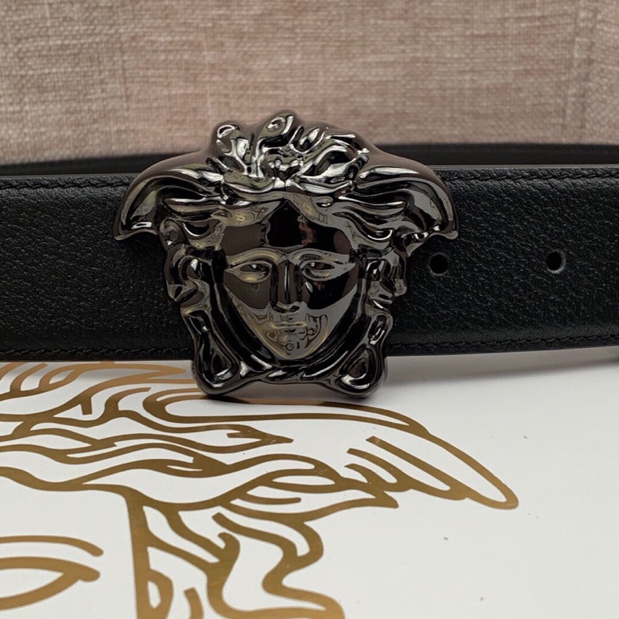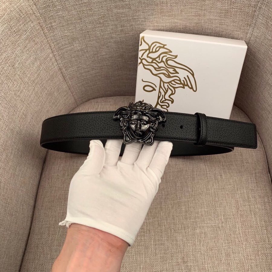 I0 :配全套包装盒 VERSACE范思哲经典猪皮纹/双面头层、采用精挑细选进口牛皮,此款腰带配有醒目的美杜莎头像搭扣,可为任何造型增添几分立体雅致效果.商务既有时尚的男士男士腰带:宽度4.0mm