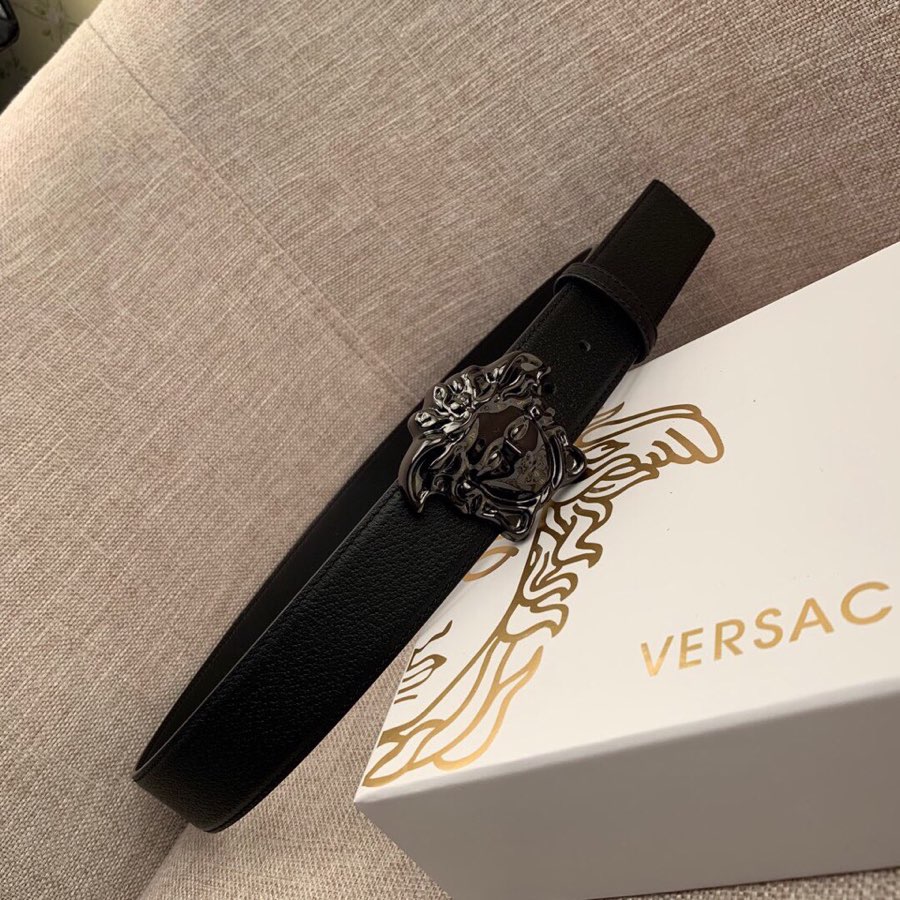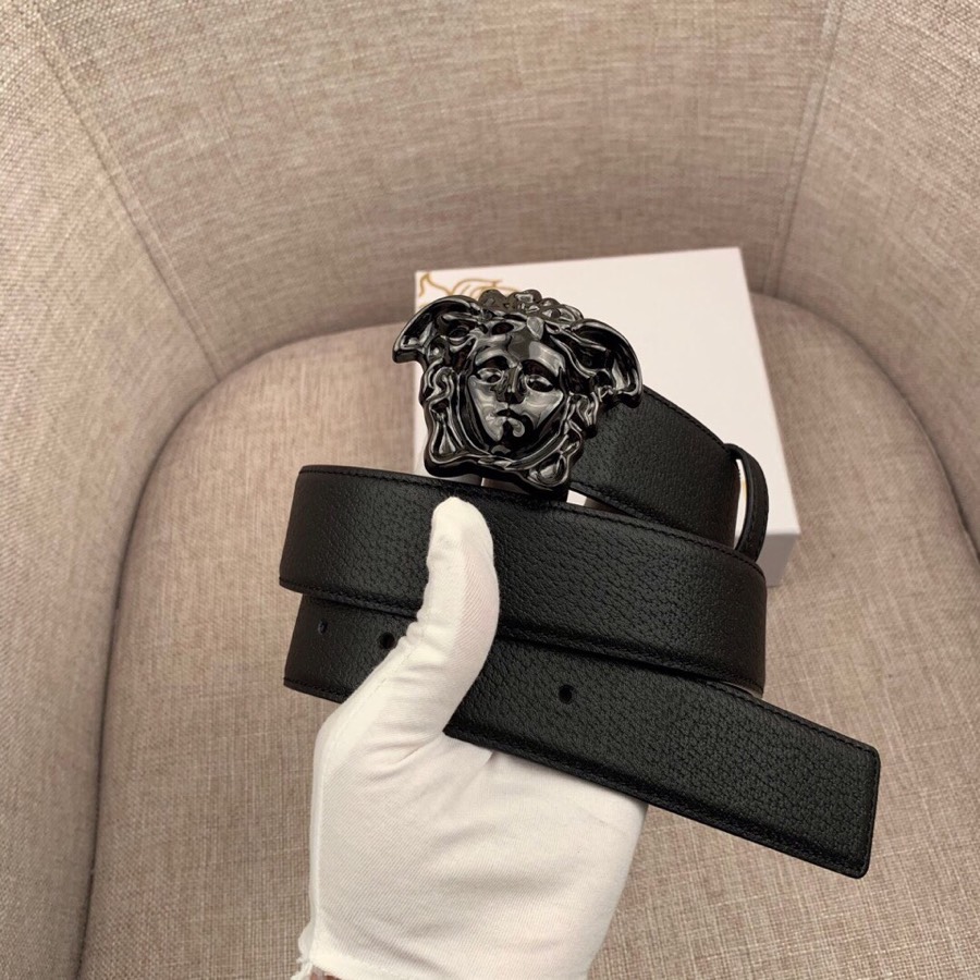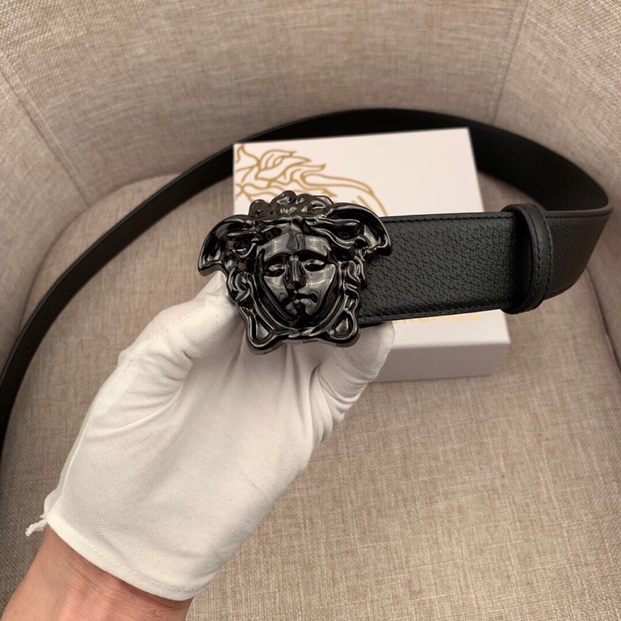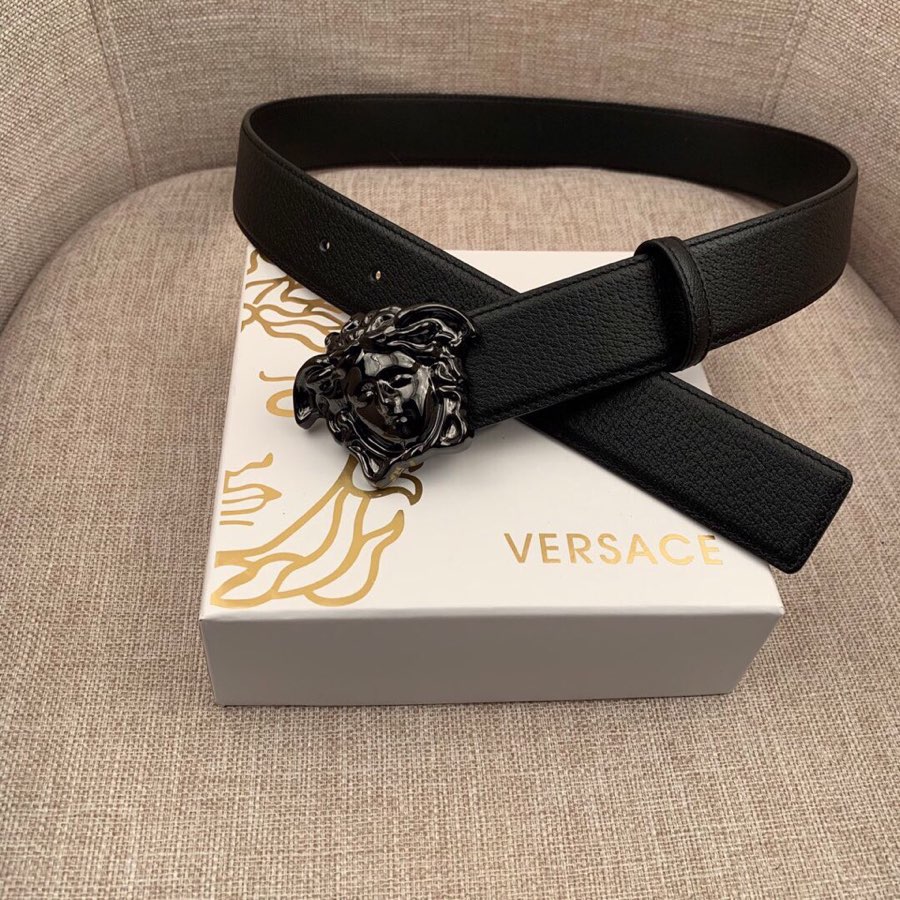 I0 :配全套包装盒 VERSACE范思哲经典猪皮纹/双面头层、采用精挑细选进口牛皮,此款腰带配有醒目的美杜莎头像搭扣,可为任何造型增添几分立体雅致效果.商务既有时尚的男士男士腰带:宽度4.0mm