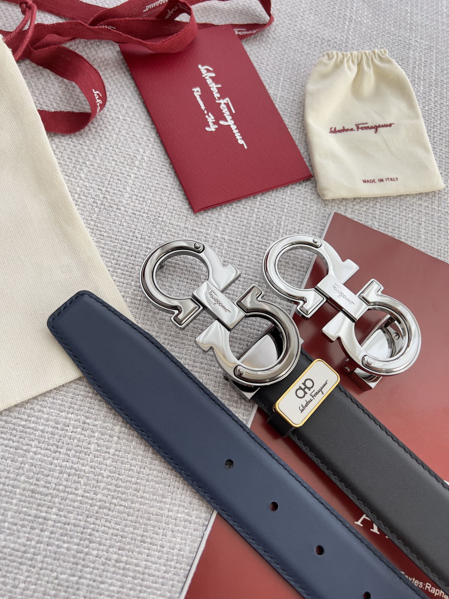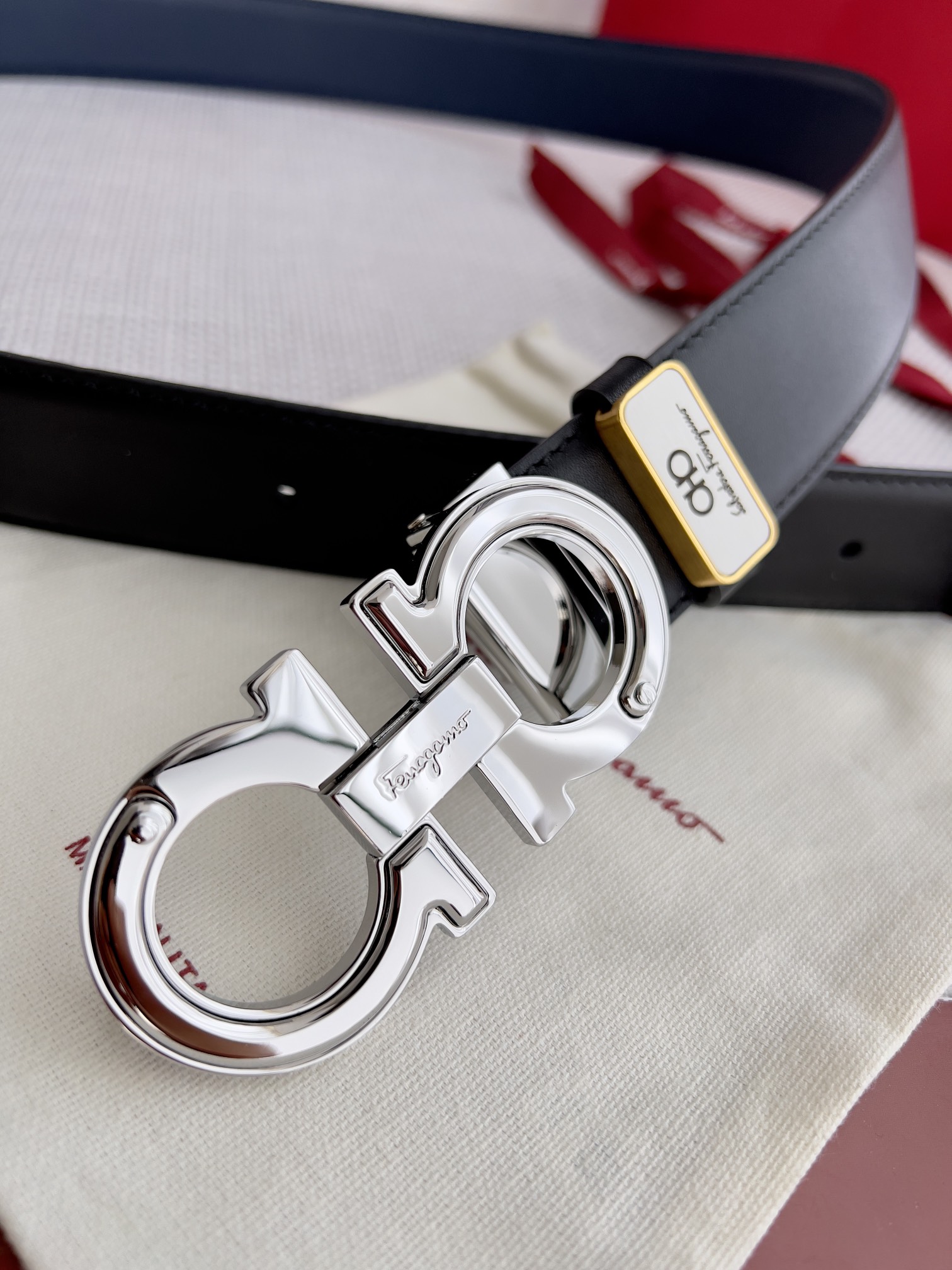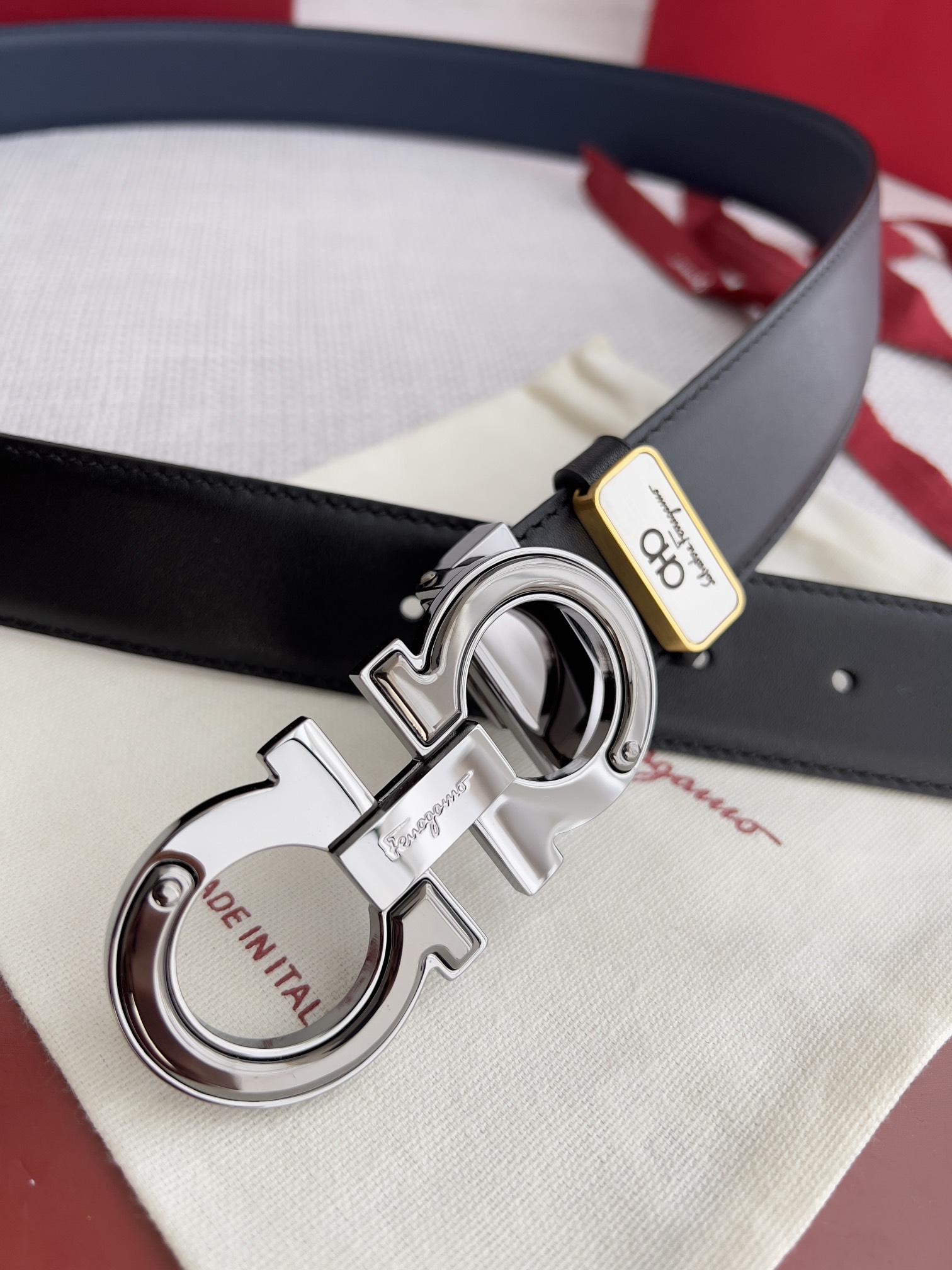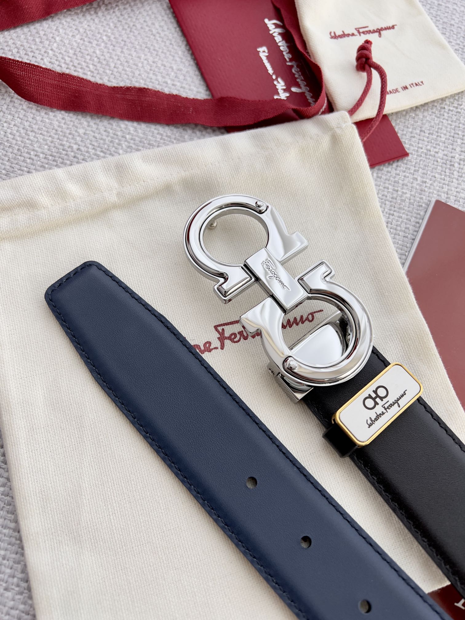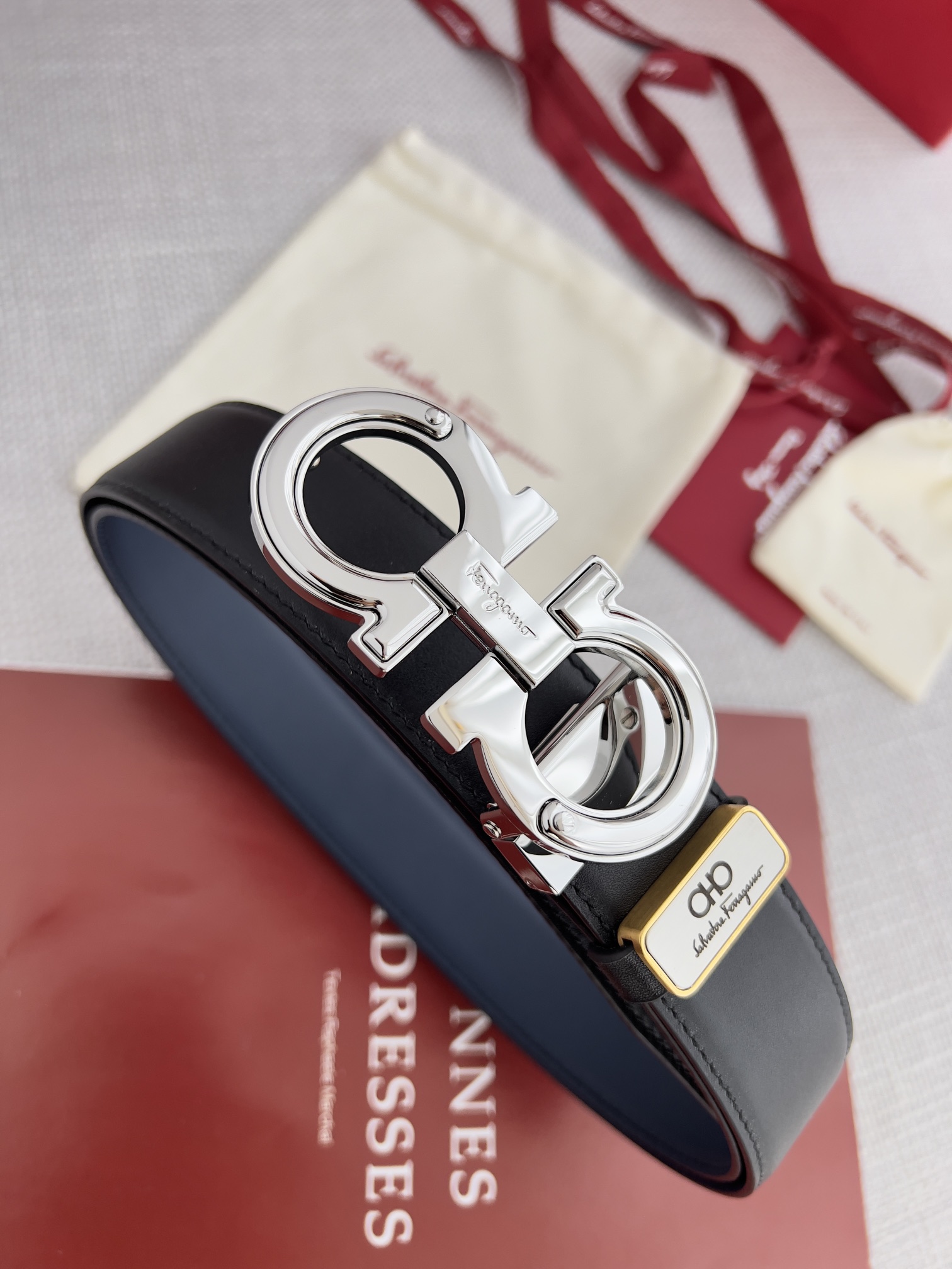 I0 Ferragamo 菲拉格慕 腰带·皮带·原单 型号:挂扣,原版配色挂扣,实物拍摄,头层牛皮 材料:百分百头层牛皮,保证真皮.双面可用专柜同等质量,经典头层牛皮双面平纹,黑深蓝,纯铜配色挂扣,带身可自由裁剪,可双面使用,送人自用首选 包装:请认准如图专柜包装,赠送打孔器,原版电子票,宽度3.5mm
