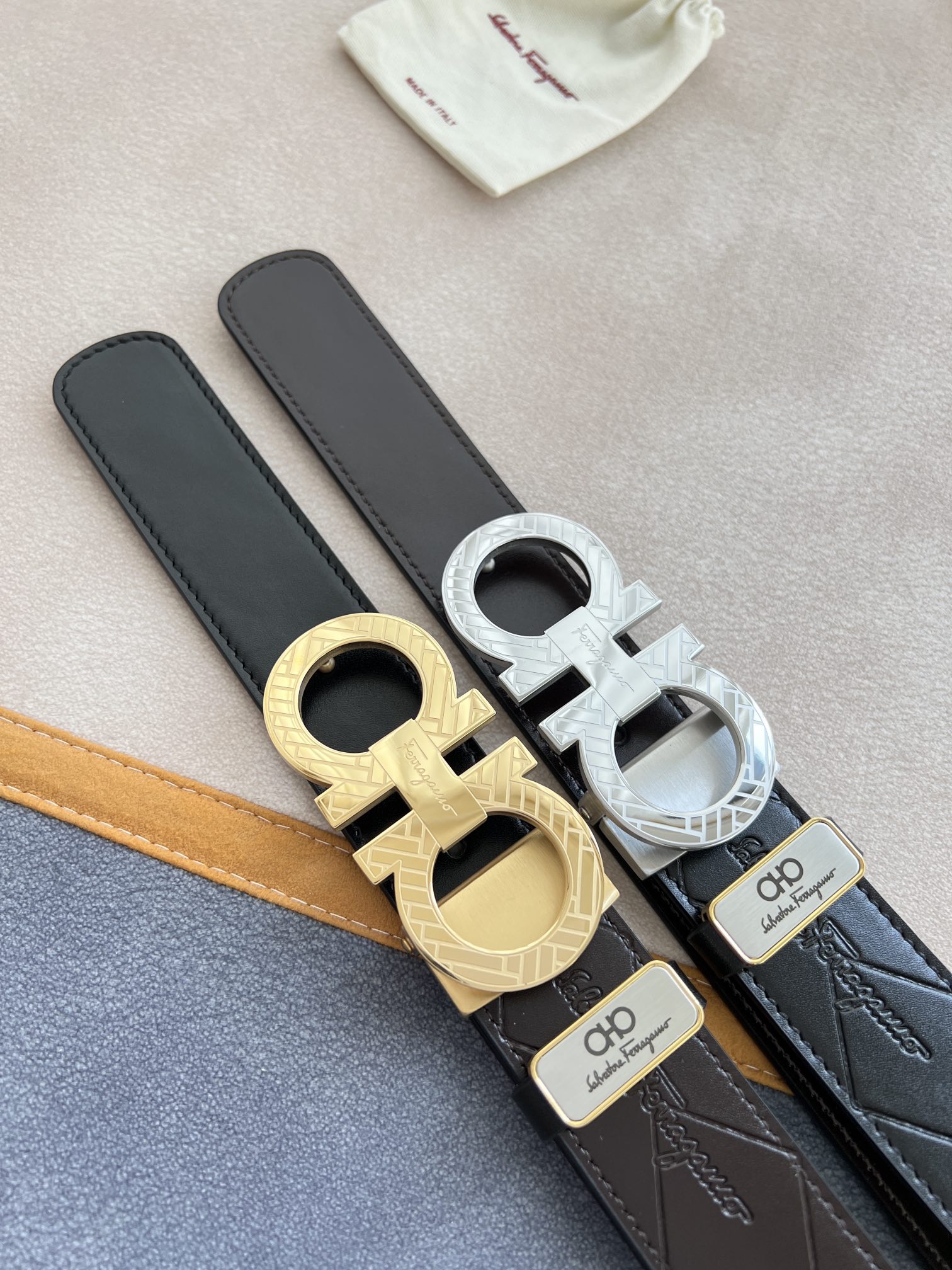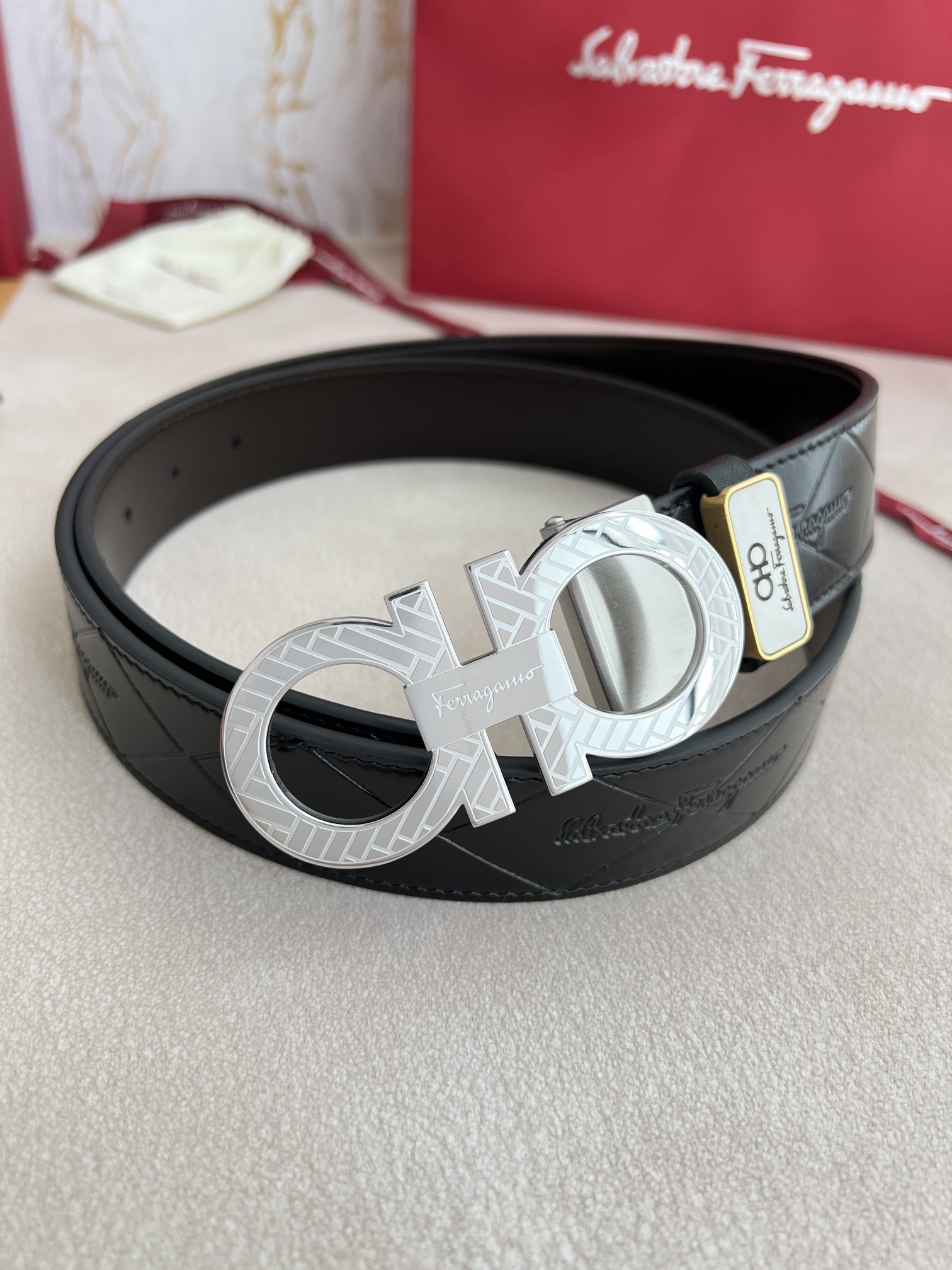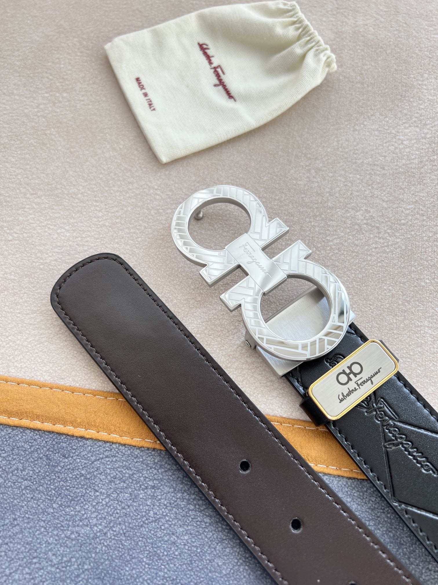 I0 Ferragamo 菲拉格慕 腰带·皮带·原单 型号:挂扣,纯钢材质挂扣,实物拍摄,头层牛皮 材料:百分百头层牛皮,保证真皮.纯钢材质,永不掉色,双面可用专柜同等质量,经典头层牛皮双面光滑平面印花,黑咖,纯钢材质花纹挂扣,带身可自由裁剪,可双面使用,送人自用首选 包装:请认准如图专柜包装,赠送打孔器,原版电子票,宽度3.5mm